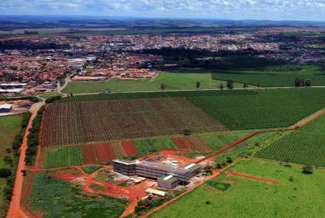 Vista aérea do campus e cidade de Monte Carmelo
