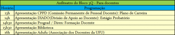 A Diretoria de Capacitação (Dicap), da Pró-reitoria de Gestão de Pessoas (Progep) da UFU, divulgou a programação do Seminário de Integração dos Servidores Recém-Investidos na UFU. Confira: