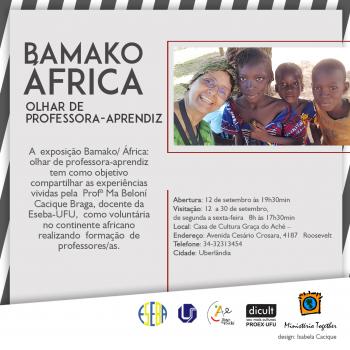 A exposição “Bamako/África: olhar de professora-aprendiz”, de autoria da docente da Escola de Educação Básica (Eseba) da UFU, Beloní Cacique Braga, está aberta para visitação de 12 a 30 de setembro, na Casa de Cultura Graça do Aché.