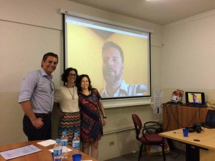 Mariana Segala (de branco) apresentou à banca o produto final de seu projeto de mestrado no último mês de março. (Foto: Arquivo pessoal)