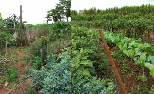 Na imagem à esquerda, horta sem aplicação do BioFAO. À direita, a mesma horta 24 dias após aplicação do medicamento (Foto: Arquivo dos pesquisadores).
