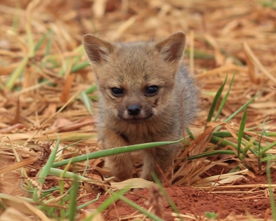 Filhote de raposa-do-campo (Lycalopex vetulus) em Ituiutaba (MG) (Foto: Kátia Gomes Facure Giaretta)