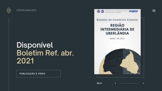 Os dados apresentados no Boletim de Comércio Exterior da Região Intermediária de Uberlândia (RIU), realizado pelo Centro de Estudos, Pesquisas e Projetos Econômico-Sociais da Universidade Federal de Uberlândia (Cepes/UFU), referente ao primeiro quadrimestre de 2021, apresentaram um novo recorde em relação aos mesmos períodos nos anos anteriores. Entre janeiro e abril de 2021, o valor total das exportações na região foi de US$ 530,02 milhões (ou R$ 2,94 bilhões) e 790,37 mil toneladas.