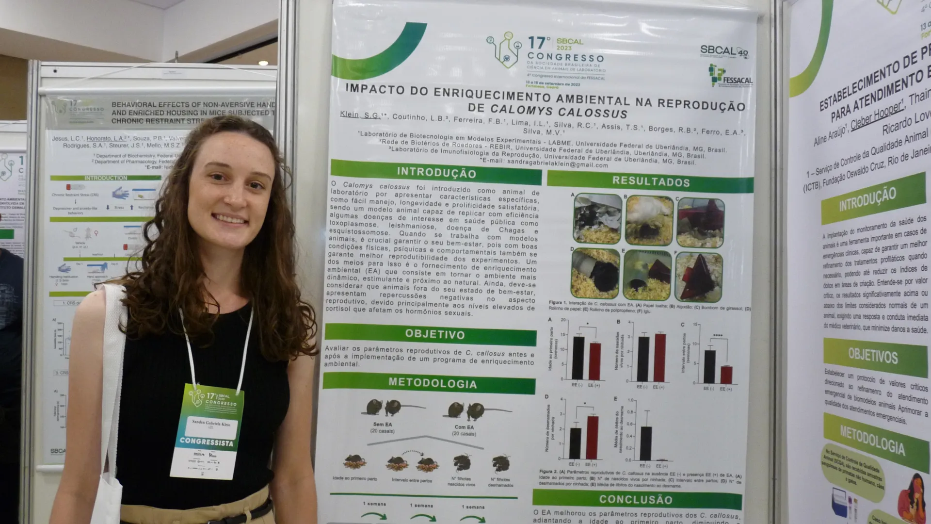 Klein, que além do prêmio também foi selecionada para a apresentação oral, destaca a importância do reconhecimento: “Ter recebido esse prêmio no maior congresso sul-americano da área significou muito para mim, pois mostra que estou no caminho certo e que os estudos que estamos realizando na UFU realmente são importantes e relevantes para sociedade e para a comunidade científica. Além disso, a oportunidade de apresentar meu trabalho de forma oral, permitiu maior alcance e destaque para mostrar como práticas que melhorem o bem-estar dos animais são fundamentais para gerar resultados positivos e maior reprodutibilidade nas pesquisas científicas”.