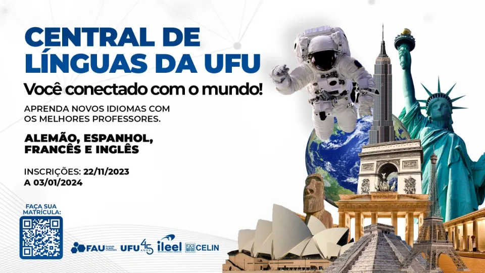 A Central de Línguas da Universidade Federal de Uberlândia (Celin/UFU) está com inscrições abertas para novas turmas de iniciantes no primeiro semestre de 2024. As vagas são destinadas a quem deseja começar o aprendizado em Alemão, Espanhol, Francês ou Inglês. Importante ressaltar que é necessário ter, no mínimo, 15 anos completos para se matricular nos cursos regulares. O prazo de inscrições termina em 3 de janeiro ou enquanto houver vagas disponíveis.