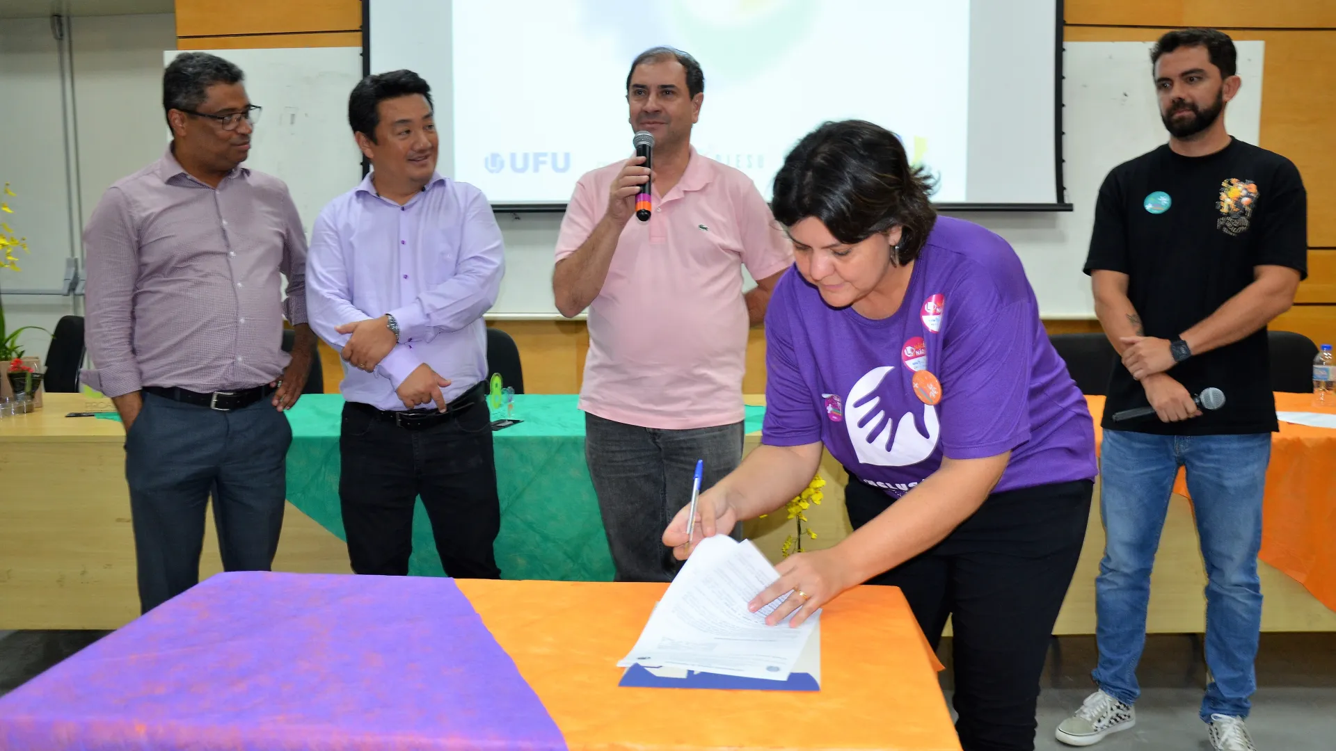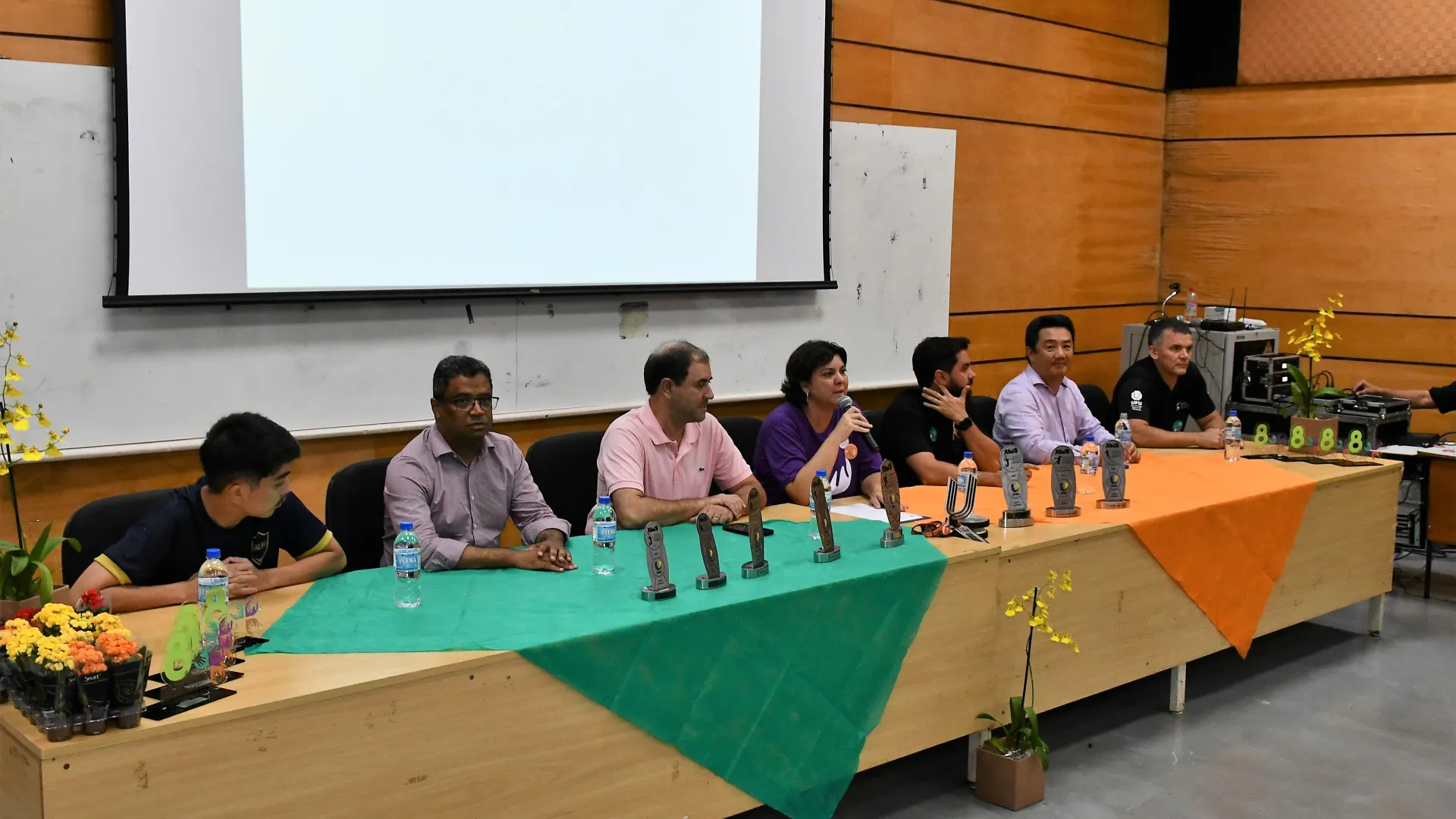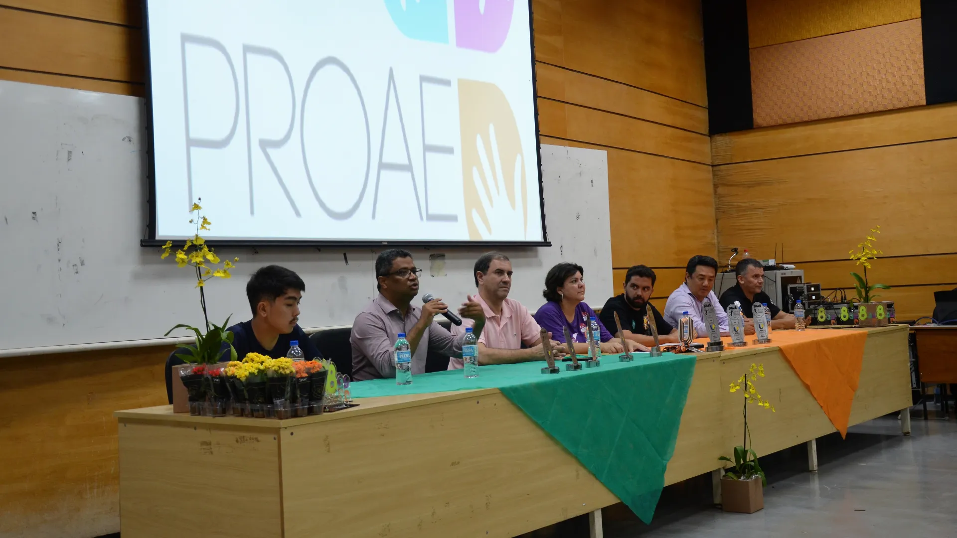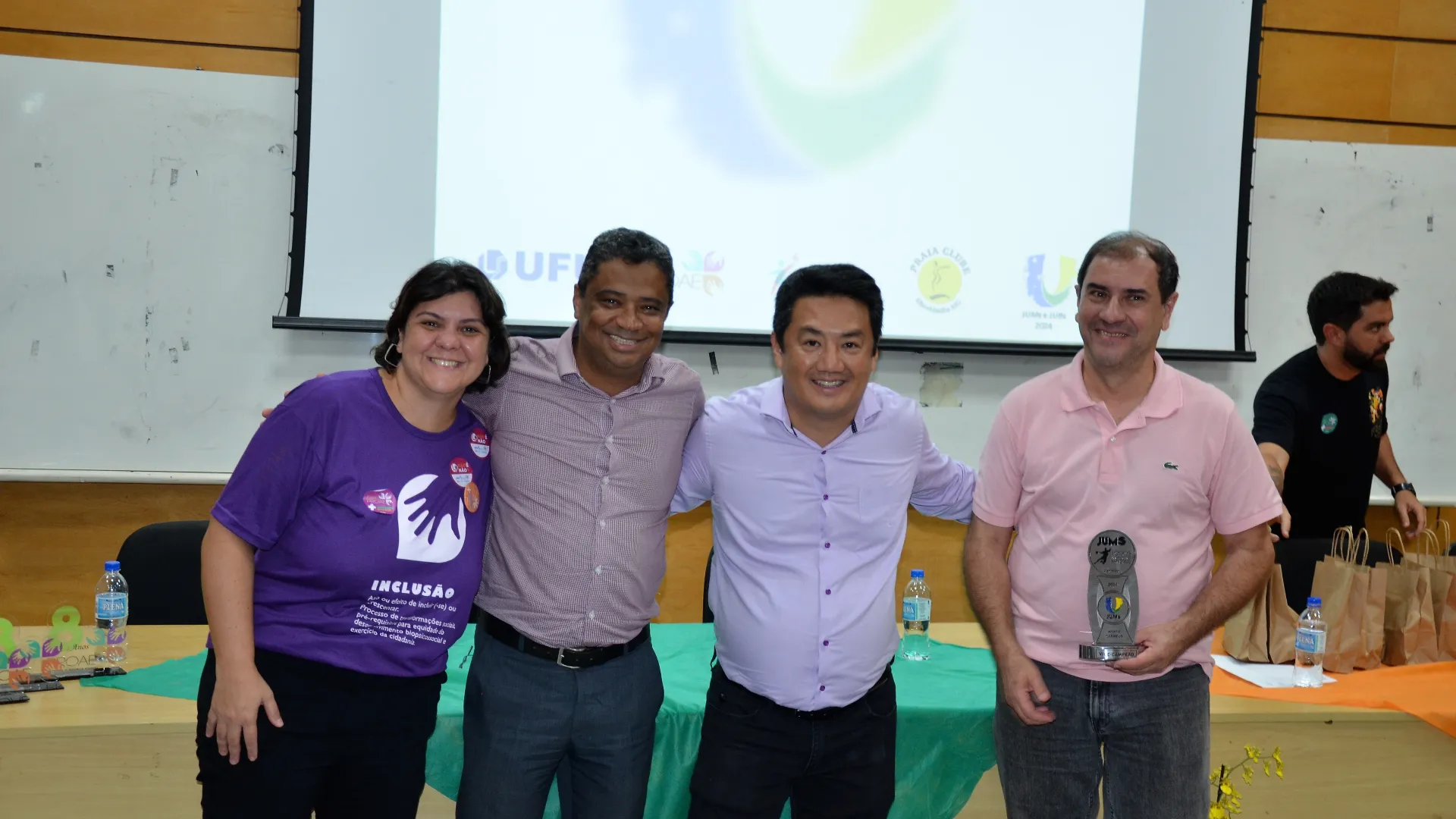 Participaram da cerimônia, além dos estudantes-atletas homenageados, a pró-reitora de Assistência Estudantil, Elaine Saraiva Calderari; o presidente do Praia Clube, Carlos Augusto Ferreira; o pró-reitor de Extensão e Cultura, Hélder Eterno da Silveira; o diretor da Diretoria de Qualidade de Vida do Estudante (Dirve), Claudio Gomes Barbosa; o coordenador da Divisão de Esporte e Lazer (Diesu), Adilson Henrique de Souza; o diretor da Faculdade de Educação Física e Fisioterapia (Faefi), Marcos Seizo Kishi; e o presidente da Liga das Atléticas da UFU (Laufu), Leonardo Yamaguti.