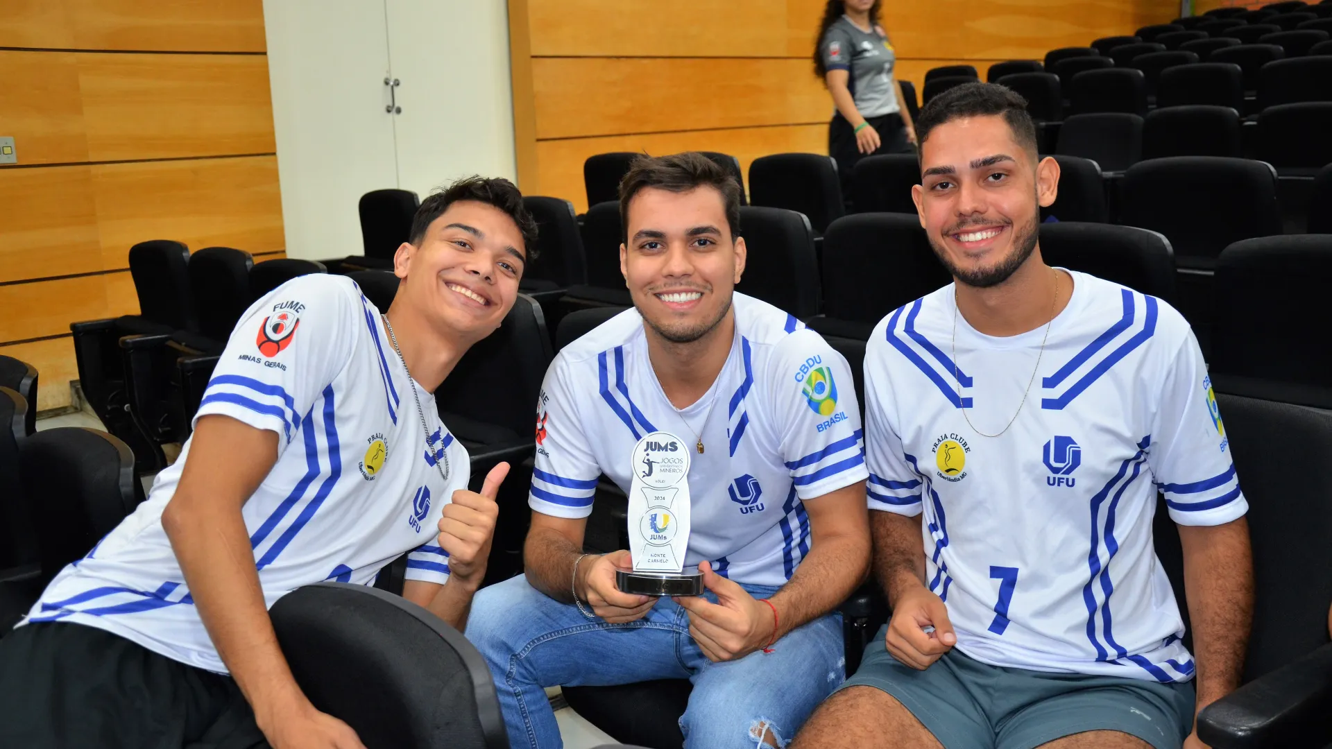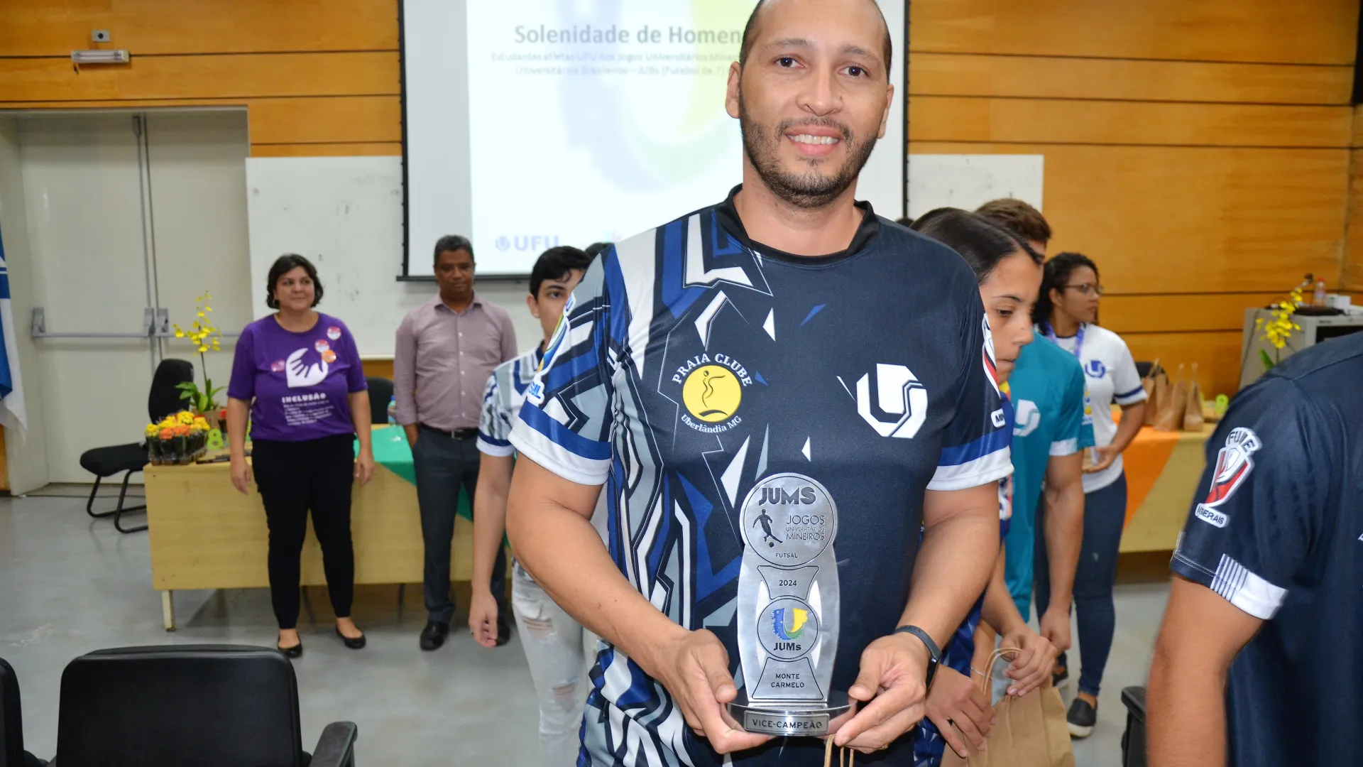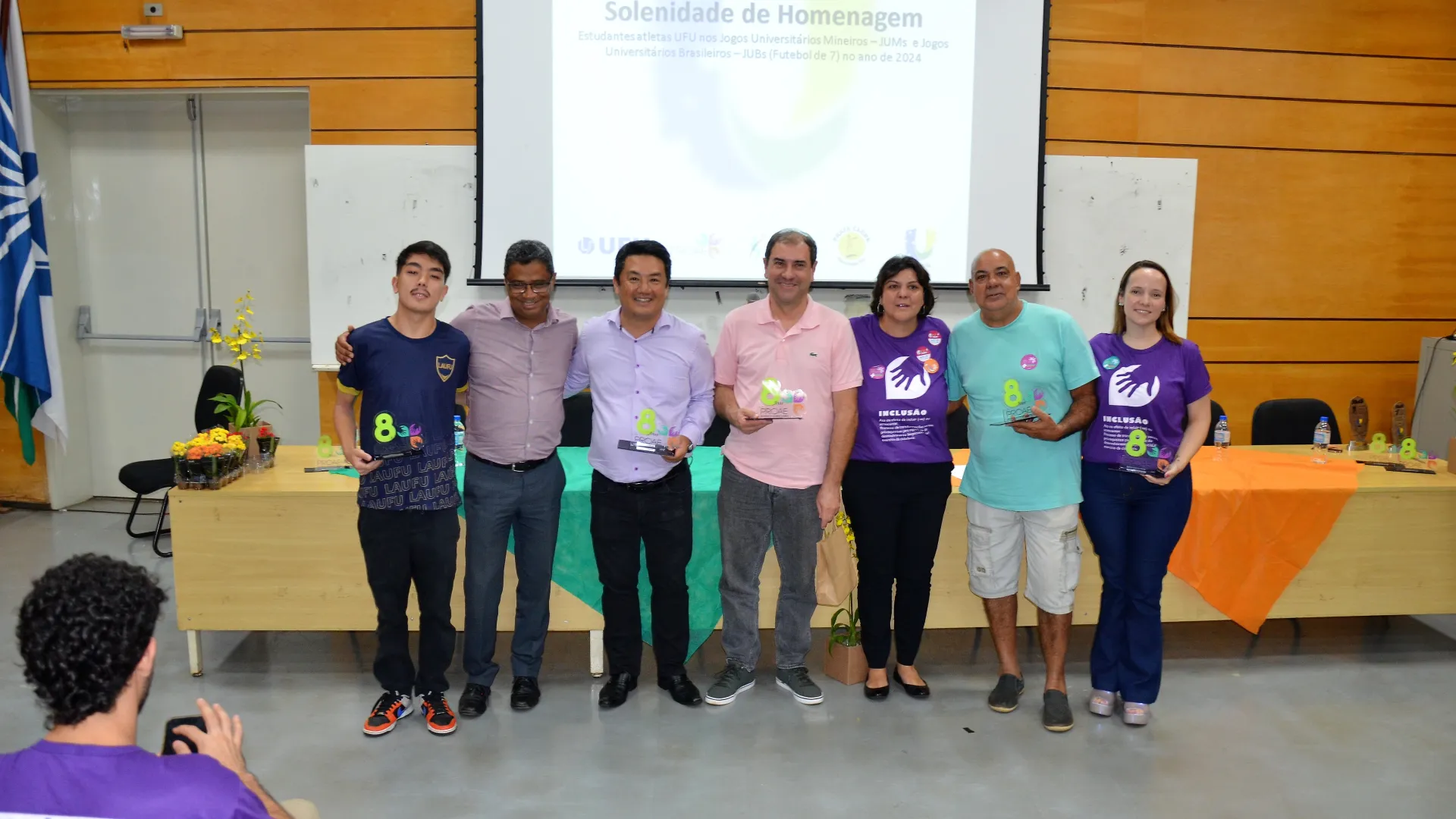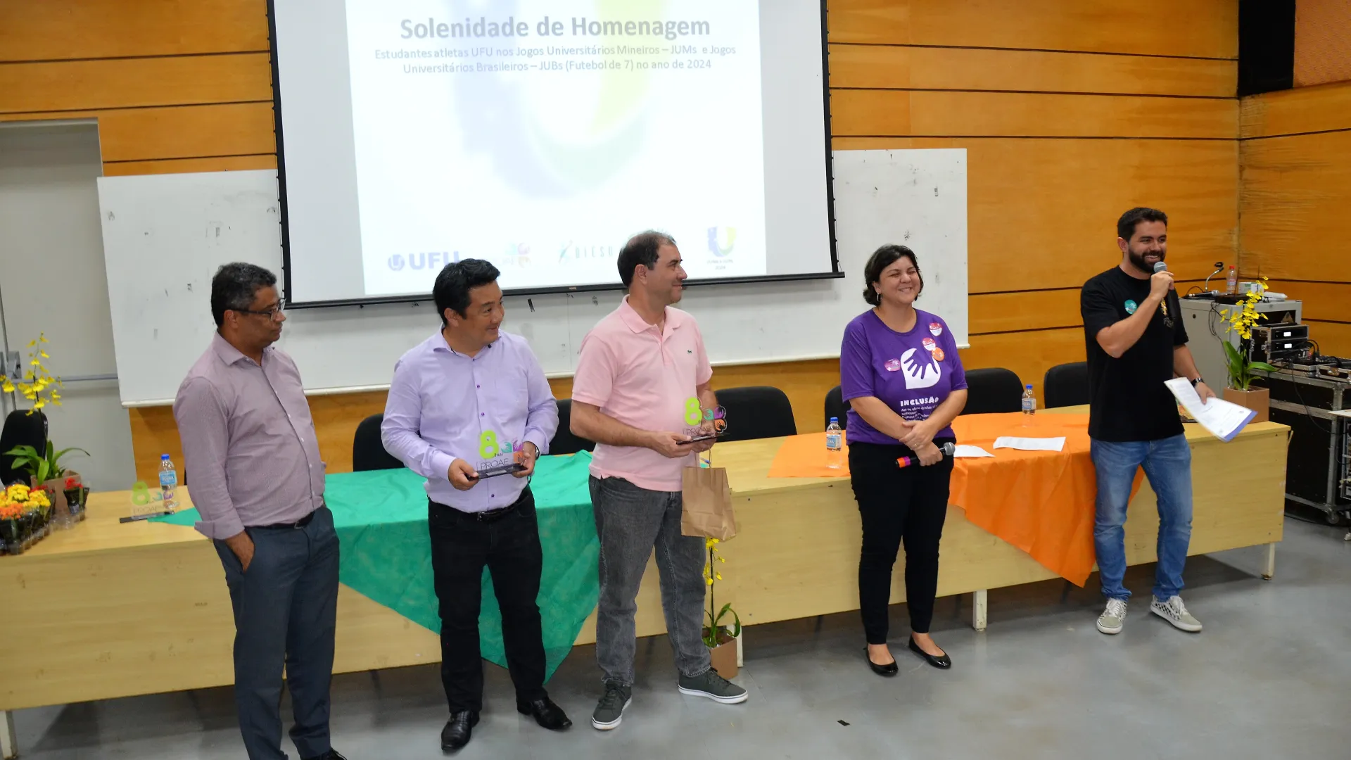 39 medalhas de ouro, 29 de prata e 15 bronzes nos Jogos Universitários Mineiros (JUMs) e um bronze inédito nos Jogos Universitários Brasileiros (JUBs) de Futebol, Fut7. X2 e Rugby. Estes são os resultados que foram celebrados na cerimônia de homenagem aos estudantes-atletas de Uberlândia que participaram das duas competições. O evento foi organizado pela Pró-Reitoria de Assistência Estudantil (Proae/UFU) e aconteceu no auditório do Bloco 3Q, na última quarta-feira, 17.