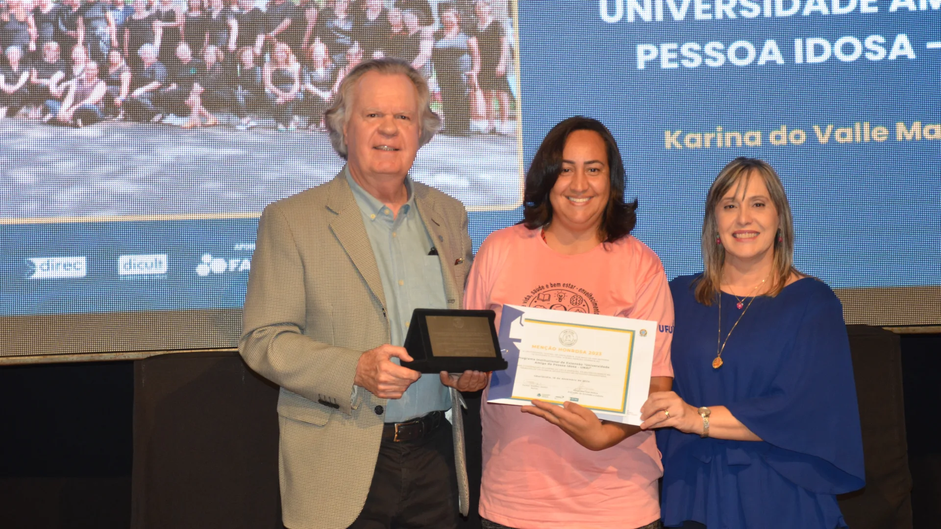 Os prêmios da Proexc também entregam menções honrosas a atividades e pessoas que se destacaram no campo da extensão e cultura. Essas homenagens são propostas e aprovadas no âmbito do Conselho de Extensão, Cultura e Assuntos Estudantis (Consex/UFU). O prêmio “Paulo Freire” conferiu a honraria ao Programa Institucional de Extensão Universidade Amiga da Pessoa Idosa (Unai), representado pela professora Karina Marques, no ano de 2023, e ao Centro de Incubação de Empreendimentos Sociais Solidários (Cieps), representado pela professora Cristiane Betanho, no ano de 2024.