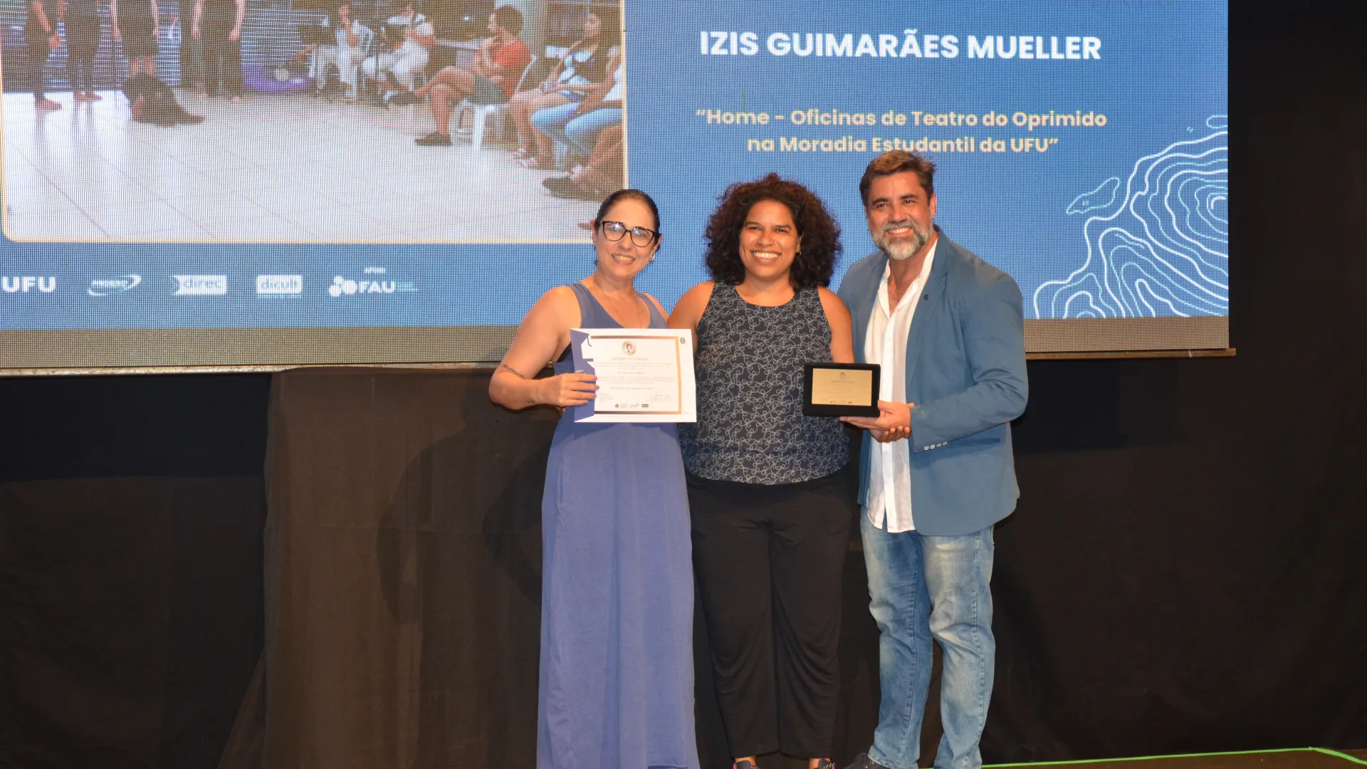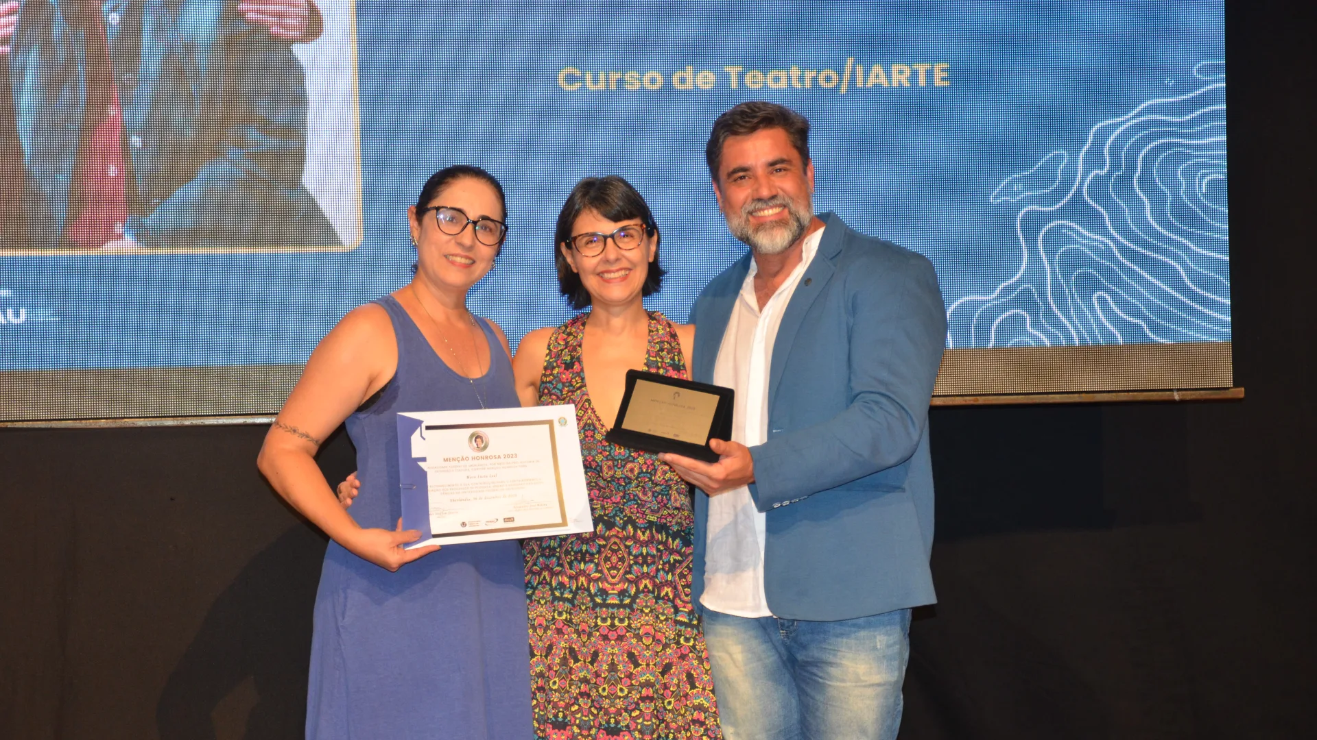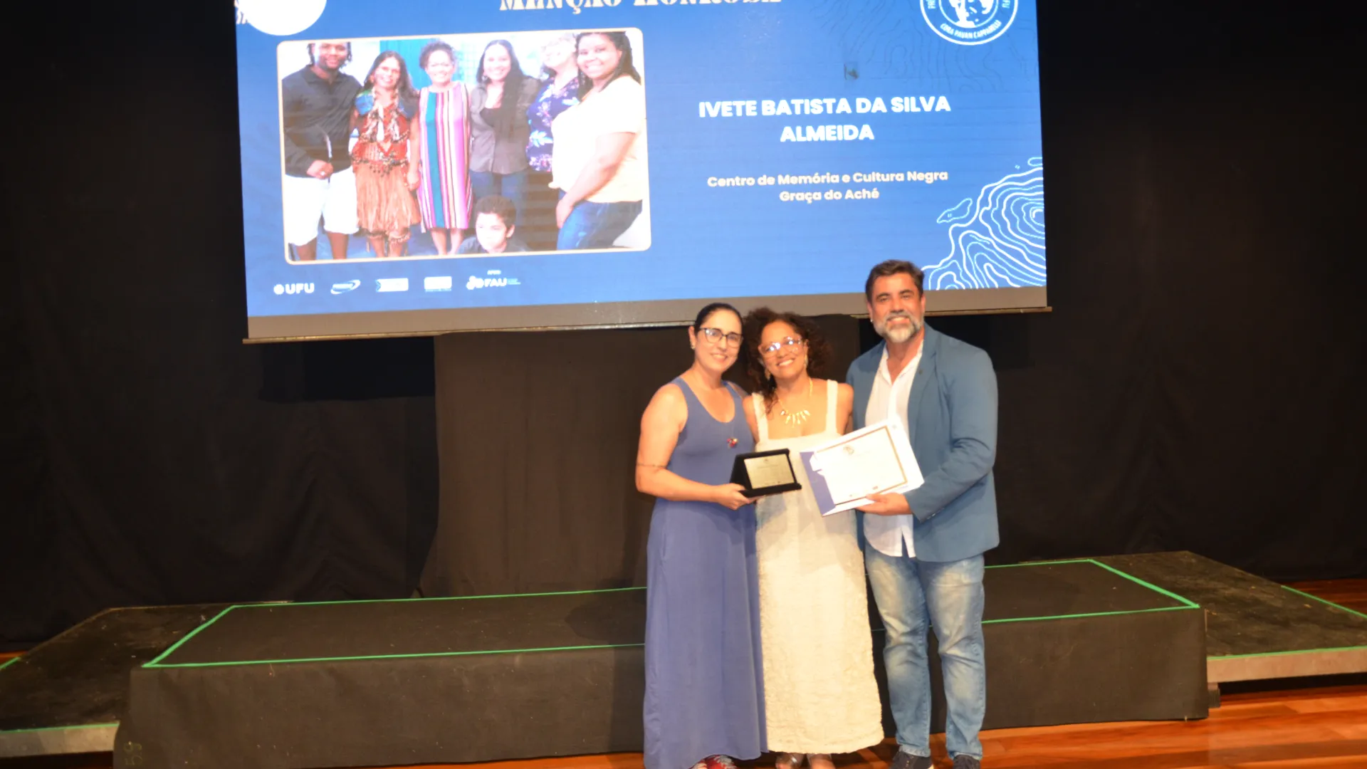 Enquanto o prêmio “Cora Capparelli” homenageou a professora Ivete Almeida, do Centro de Memória da Cultura Negra Graça do Aché; a professora Maria Célia Vieira, do curso de Música; e a professora Mara Lúcia Leal, do curso de Teatro. As menções honrosas são uma forma da Diretoria de Extensão, a de Cultura e o Instituto de Artes evidenciarem o papel que profissionais e projetos desempenham na universidade.