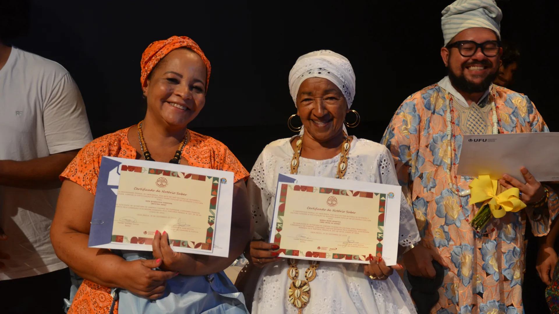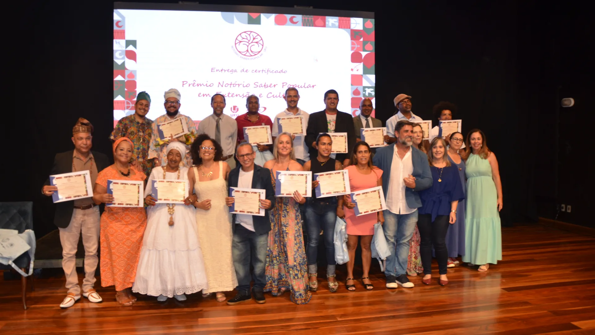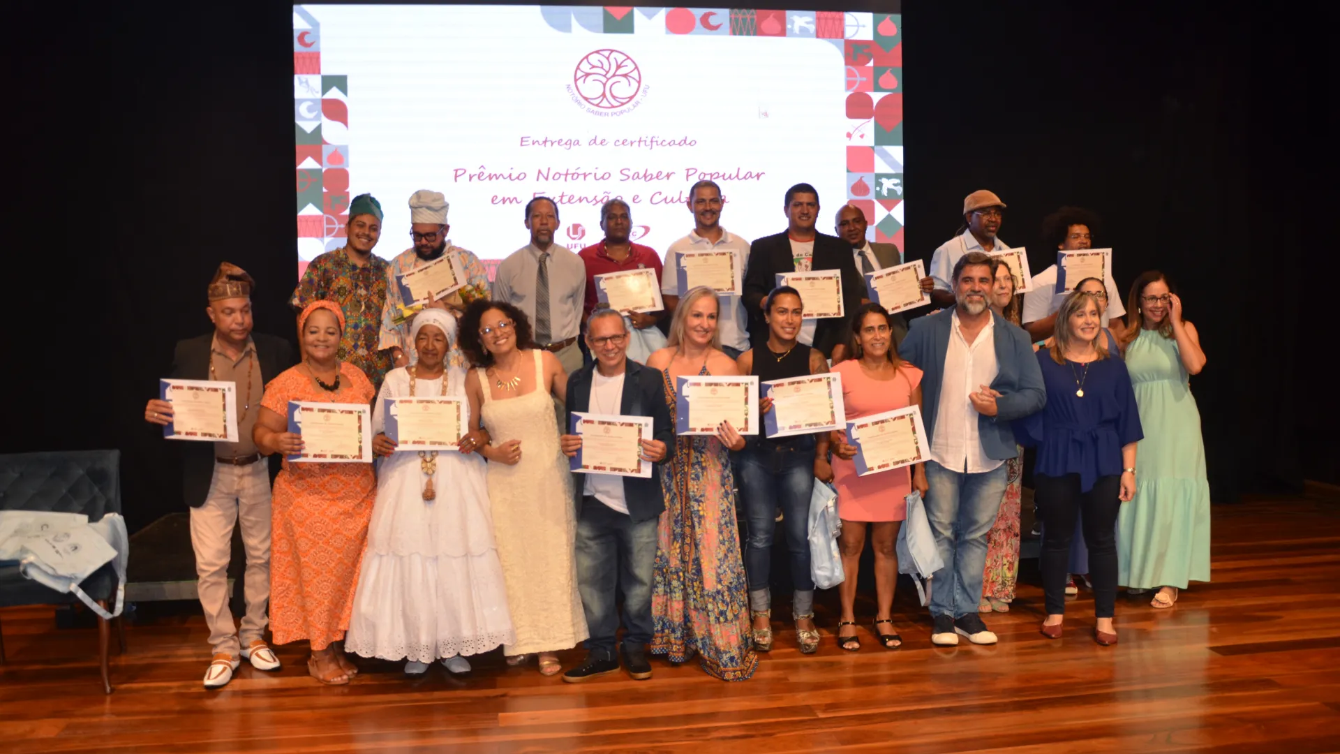 Para finalizar a cerimônia, foi realizado o reconhecimento de Notório Saber Popular em Extensão e Cultura pela UFU. Ao todo, 15 pessoas de áreas como religiosidades afro-brasileiras, capoeira e congado foram reconhecidas, de acordo com a Resolução nº 13 do Consex, que estabelece o reconhecimento institucional a pessoas com demonstrada e comprovada experiência e saberes-fazeres populares, tradicionais, artísticos ou culturais.