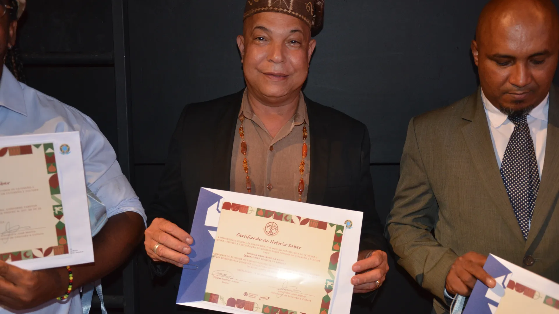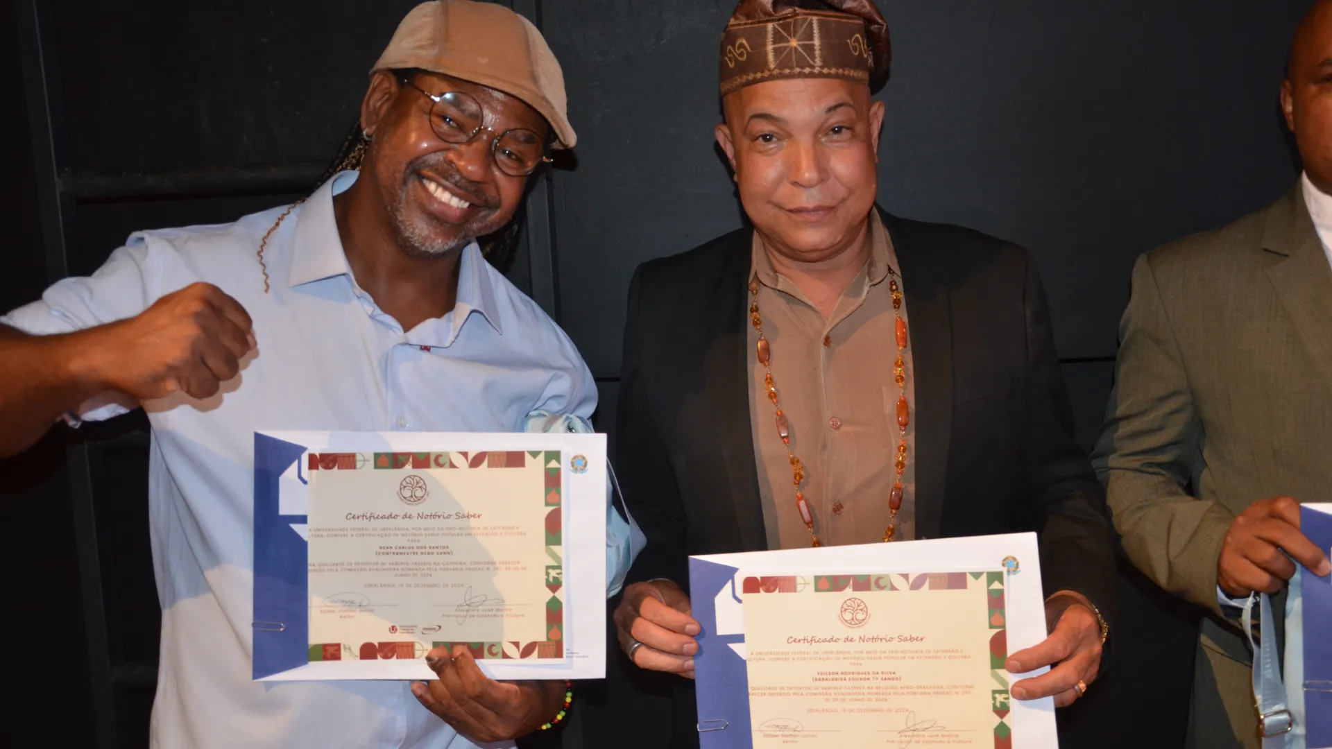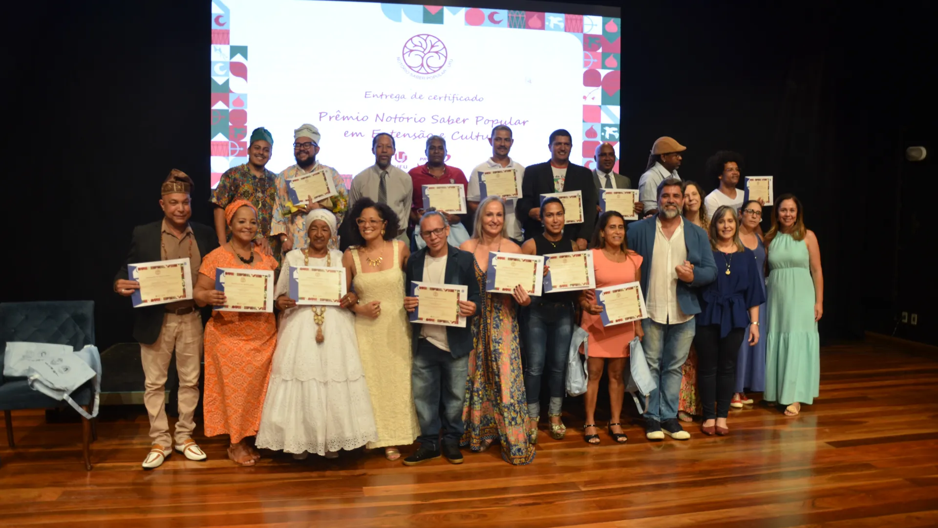Para finalizar a cerimônia, foi realizado o reconhecimento de Notório Saber Popular em Extensão e Cultura pela UFU. Ao todo, 15 pessoas de áreas como religiosidades afro-brasileiras, capoeira e congado foram reconhecidas, de acordo com a Resolução nº 13 do Consex, que estabelece o reconhecimento institucional a pessoas com demonstrada e comprovada experiência e saberes-fazeres populares, tradicionais, artísticos ou culturais.