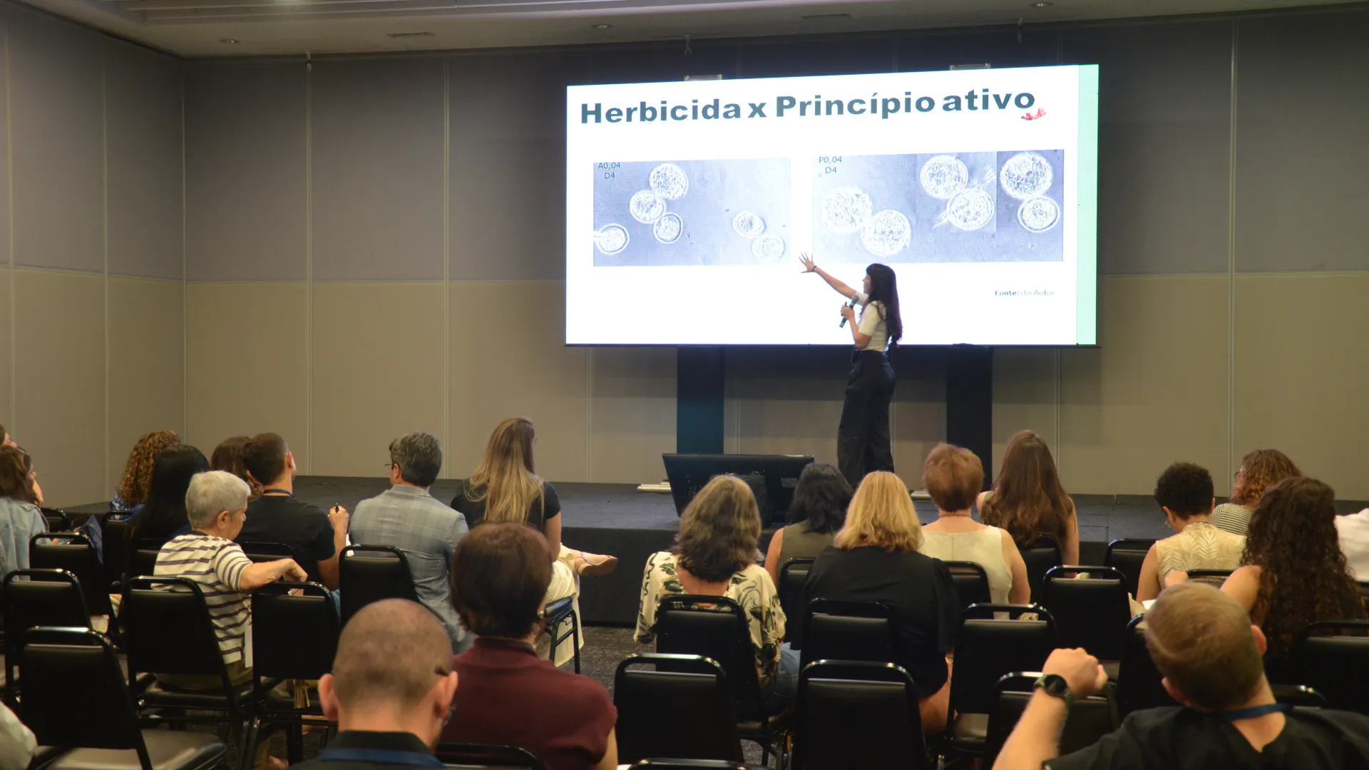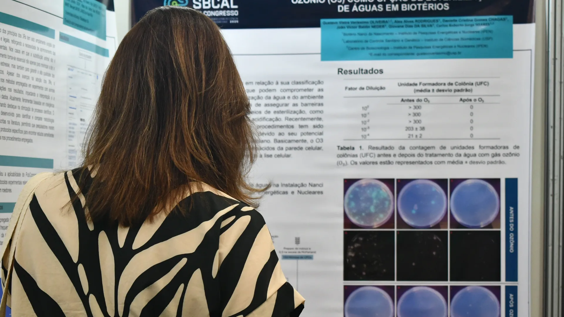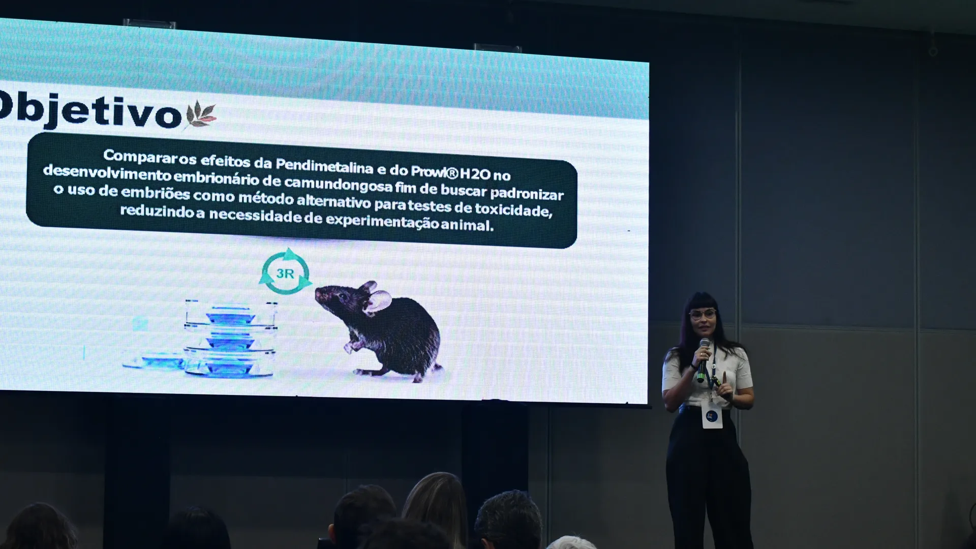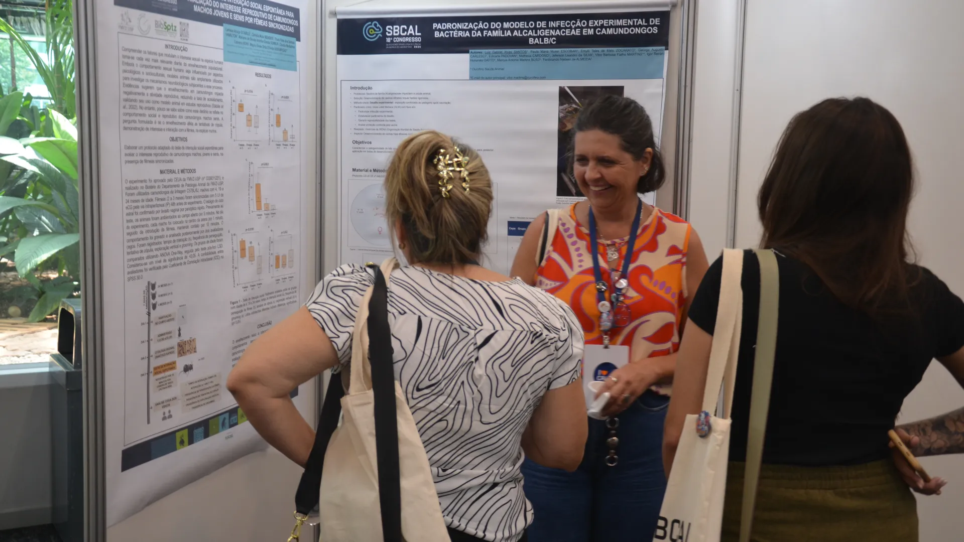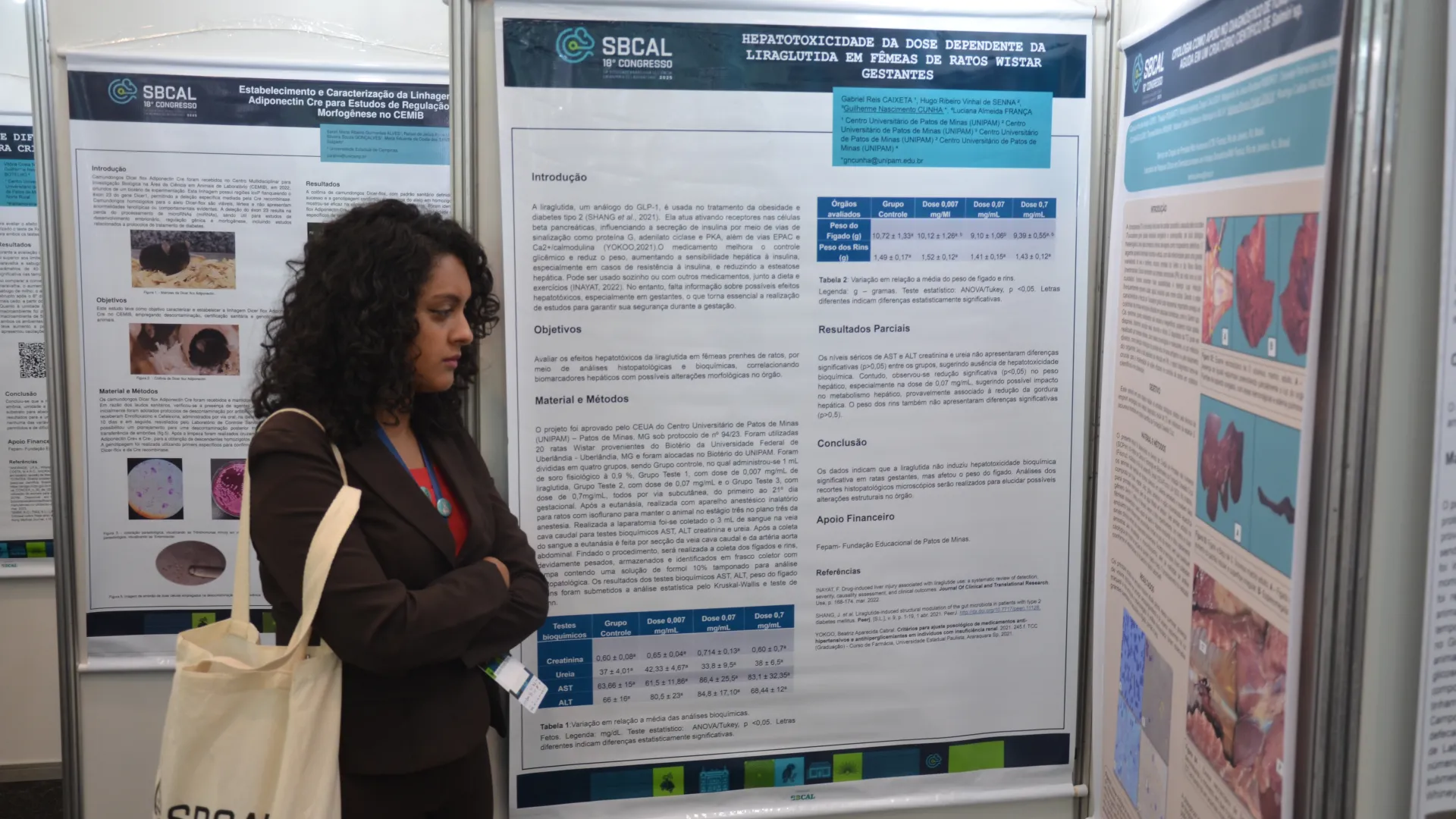 Um dos momentos do evento foi a apresentação de pôsteres de pesquisadores. Trabalhos em nível nacional foram selecionados para apresentação oral, dentre eles, dois da UFU. Sandra Klein, aluna de doutorado do Programa de Pós-Graduação em Ciências Veterinárias, apresentou sua pesquisa sobre ferramenta sustentável de refinamento no monitoramento de animais de laboratório, e Laura Maria Campitelli, aluna de mestrado do mesmo programa, apresentou sua pesquisa sobre substituição do uso de animais por embriões para avaliação de herbicidas.
