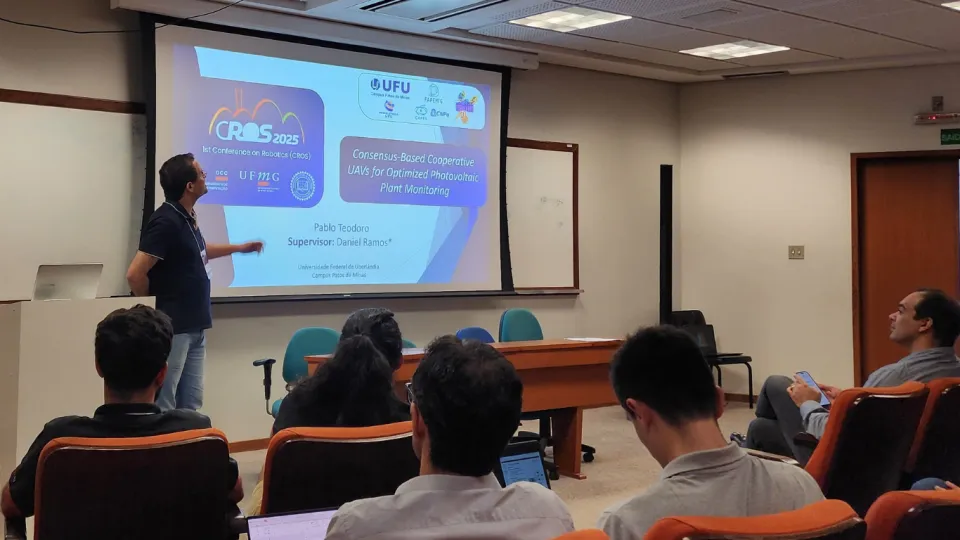 Duas pesquisas em andamento no Programa de Pós-Graduação em Engenharia Elétrica da Universidade Federal de Uberlândia (PPGEELT/UFU) sobre o uso de drones para atividades logísticas complexas foram apresentadas na primeira Conferência Brasileira de Robótica (CROS 2025), entre 28 e 30 de abril, na Universidade Federal de Minas Gerais (UFMG), em Belo Horizonte/MG.