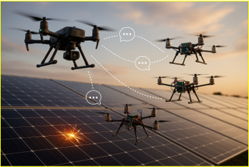 Em um dos estudos, o doutorando Pablo Neander desenvolveu uma abordagem cooperativa com drones para inspeção de usinas solares. A ideia é que aparelhos menores sejam utilizados para uma varredura inicial do local com sensores térmicos capazes de reconhecer falhas nos paineis e, em seguida, drones maiores, com sensores mais precisos, confirmem a leitura inicial. Ramos explica que a proposta pretende encontrar soluções mais acessíveis e eficientes para essa demanda, tendo em vista que “um painel solar precisa de manutenção, precisa que se faça uma inspeção e é caro e perigoso ficar mandando pessoas”.