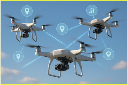 Outro trabalho, em desenvolvimento pelo mestrando Luis Vital, explora a capacidade da tecnologia UWB (ultra wide-band ou banda ultralarga, uma tecnologia de comunicação sem fio de curto alcance) para a localização precisa em procedimentos com drones em ambientes diversos. A proposta do estudo é adaptar o sistema já presente nos drones para fazer a comunicação necessária em redes cooperativas entre eles, permitindo uma redução de custos, uma vez que são aproveitados recursos já presentes nos equipamentos. Ramos relata que as pesquisas já permitiram desenvolver inspeções de vazamento de gases com o uso de UAVs, evidenciando as alternativas promissoras propostas pelo estudante.