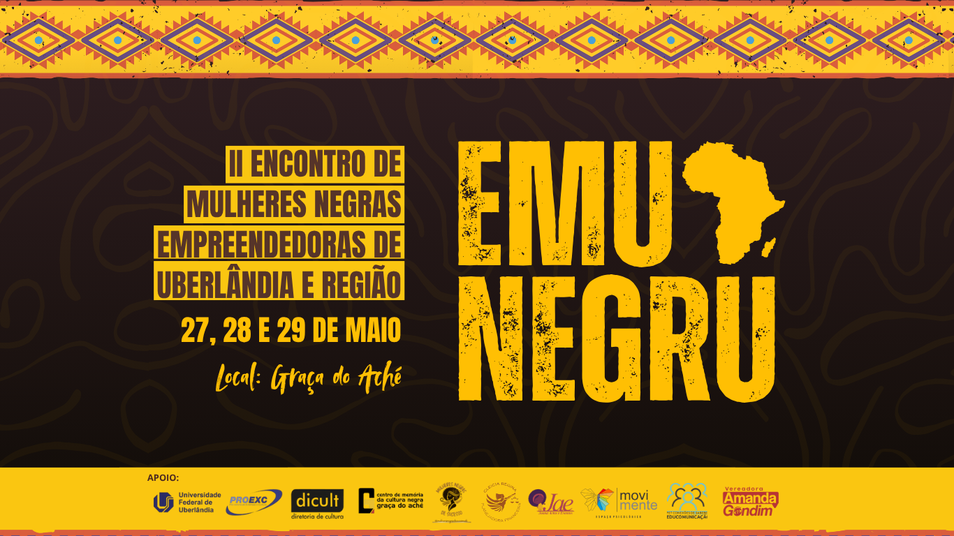 Nos dias 27, 28 e 29 de maio, acontece o 2° Encontro de Mulheres Negras Empreendedoras de Uberlândia (Emunegru), realizado pelo Centro de Memória da Cultura Negra Graça do Aché. O evento é aberto ao público e conta com discussões, workshops e oficinas, com o intuito de formar diferentes redes de apoio e colocar em diálogo as vivências das mulheres negras.