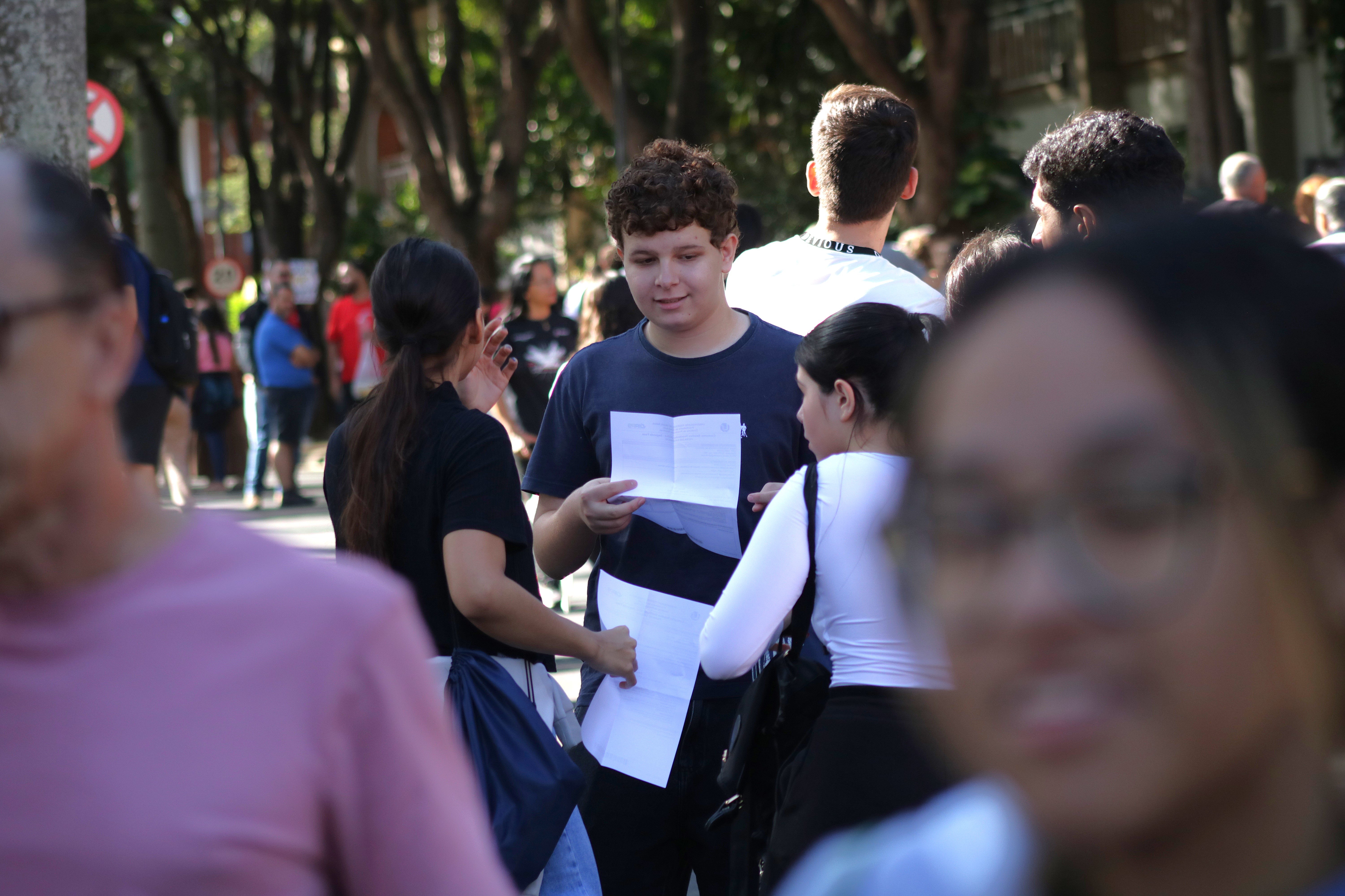 Os portões foram abertos às 9h15 e fechados, pontualmente, às 10h. Nos cadernos entregues pela equipe de fiscalização, estavam duas questões discursivas de cada uma das 11 disciplinas exigidas (Biologia, Filosofia, Física, Geografia, História, Língua Estrangeira — Espanhol, Francês ou Inglês —, Língua Portuguesa, Literatura, Matemática, Química e Sociologia). Além disso, também foi preciso fazer a prova de Redação, composta por duas opções: uma notícia acerca de um evento climático extremo, explorando suas causas e consequências; ou uma carta argumentativa de reclamação ao secretário de Saúde de sua cidade, questionando estratégias preventivas, mobilização e conscientização da população para o combate à epidemia de dengue.