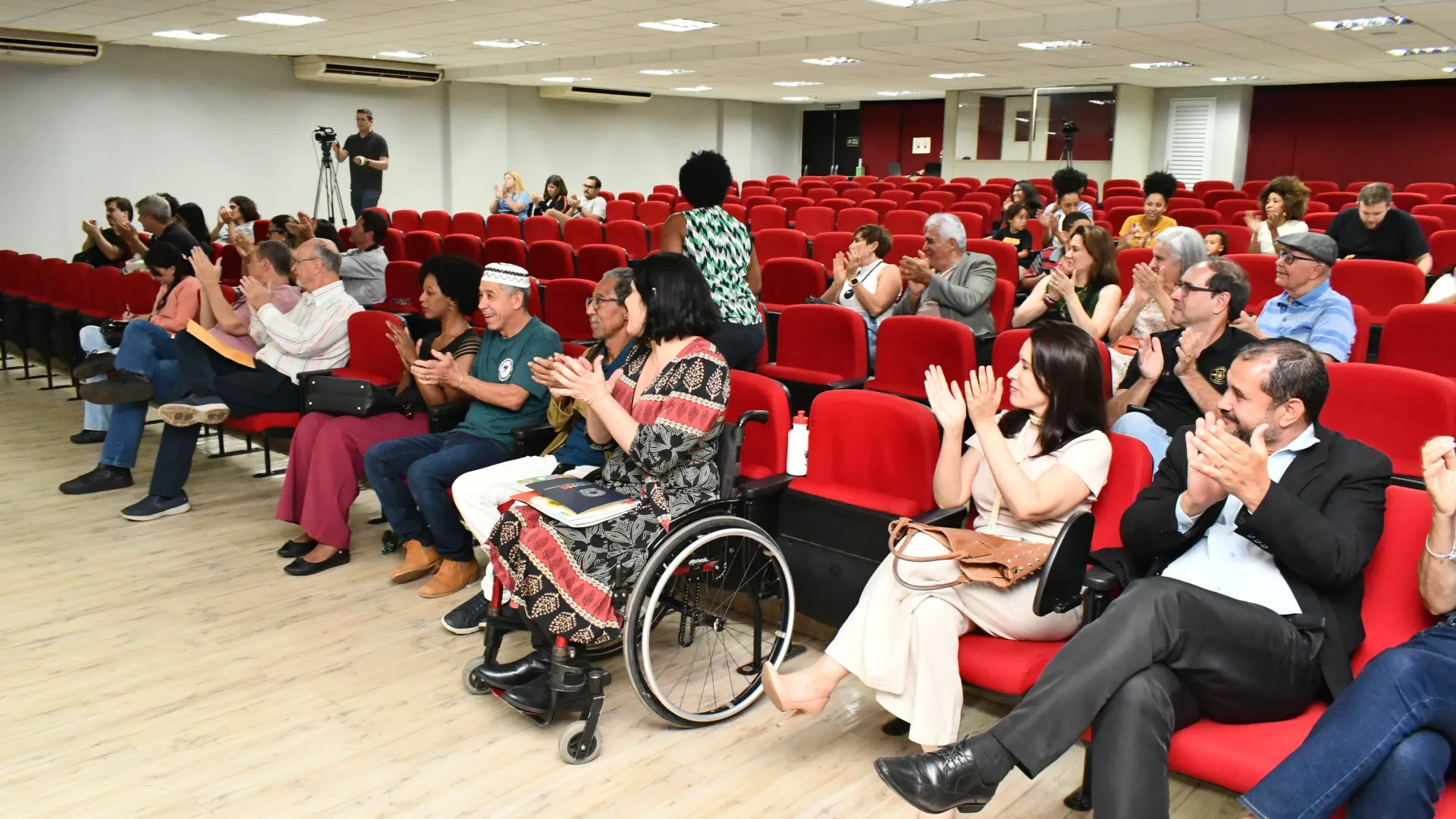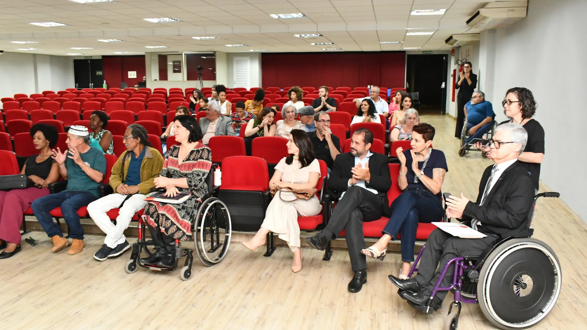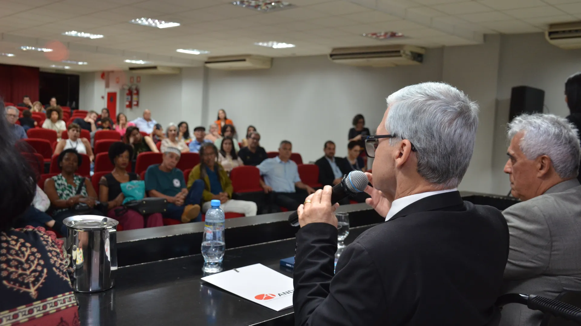 Como debatedores da mesa, a secretária nacional dos Direitos da Pessoa com Deficiência, do Ministério dos Direitos Humanos e da Cidadania, Anna Paula Feminella, e o coordenador paralímpico do Praia Clube e professor aposentado da UFU, Alberto Martins da Costa. A mediação foi de Carlos Henrique de Carvalho, reitor da UFU. Em sua fala, Carvalho relembrou os anos de graduação em História, em que para ter acesso às aulas necessitou da ajuda dos colegas, já que o prédio não tinha acessibilidade. O mediador da noite, que é primeiro reitor cadeirante da UFU, também reforçou a importância da discussão sobre o tema. “Primeiramente é conscientizar a sociedade de que a deficiência não é uma limitadora. Quem coloca as limitações não é a pessoa com deficiência, é o preconceito estrutural. É claro que existem questões infraestruturais, por exemplo, eu sou cadeirante, eu preciso de uma rampa, e para isso eu preciso das políticas públicas e, ao mesmo tempo, é preciso garantir oportunidades”, afirma.