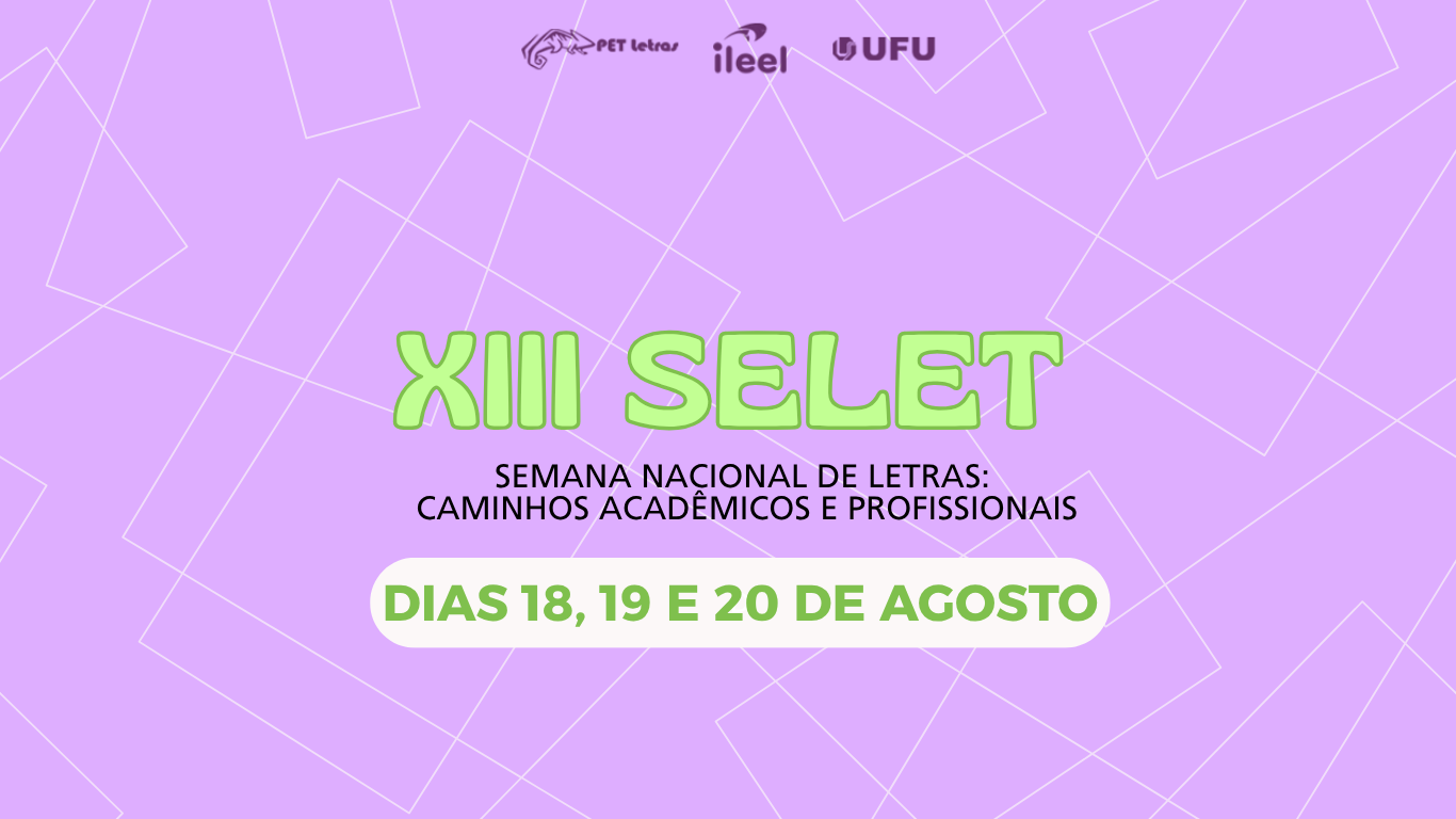 A Universidade Federal de Uberlândia (UFU) se prepara para sediar, entre os dias 18 e 20 de agosto, a XIII Semana Nacional de Letras (SELET). Com o tema “Caminhos Acadêmicos e Profissionais”, o evento, promovido pelo PET Letras, tem como objetivo fomentar o debate sobre a formação acadêmica e as diversas possibilidades de atuação no campo das Letras.