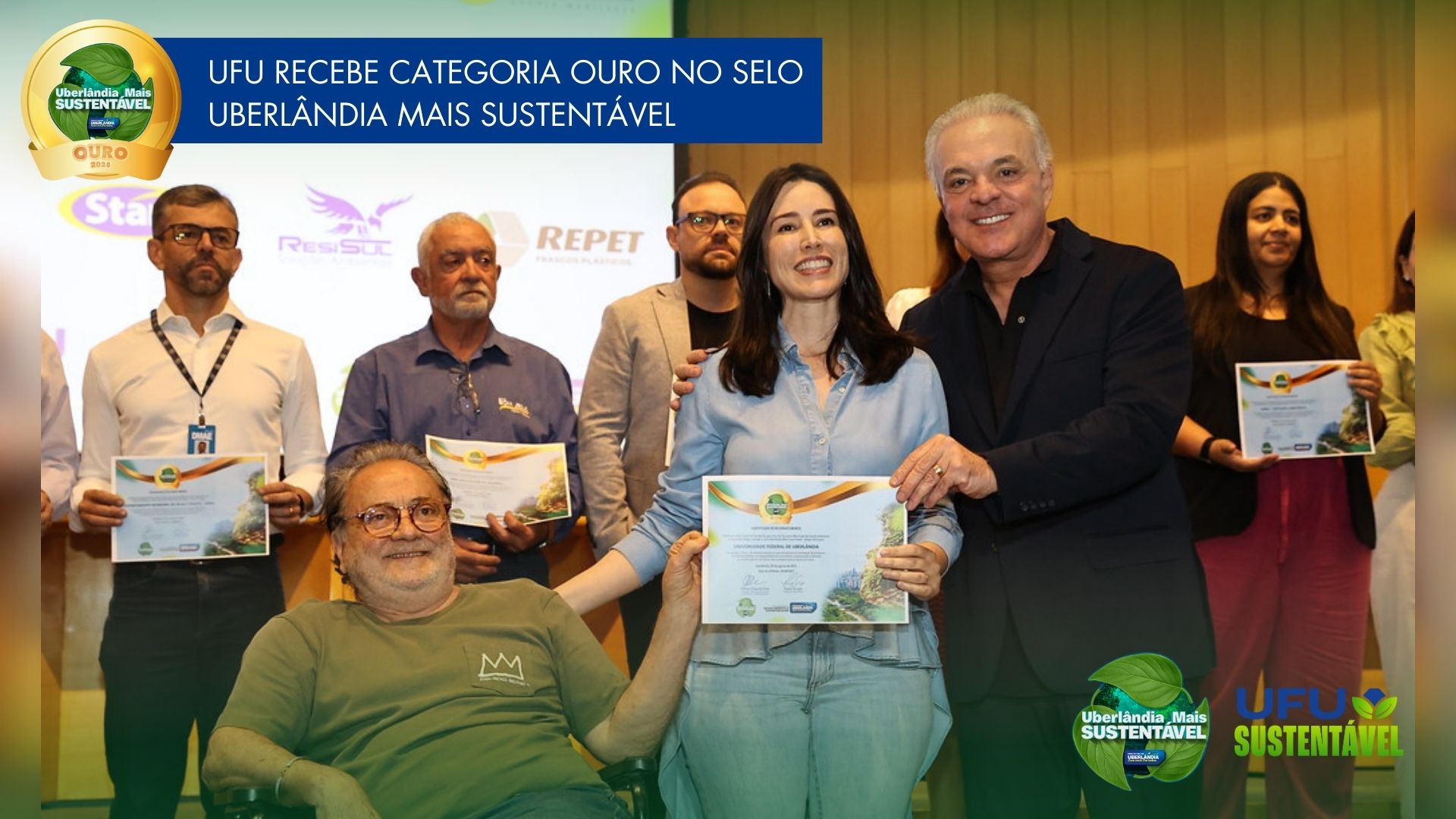 A Universidade Federal de Uberlândia (UFU) foi reconhecida com a categoria Ouro no Selo Uberlândia Mais Sustentável, iniciativa da Prefeitura Municipal que certifica organizações comprometidas com a preservação ambiental e o uso responsável dos recursos naturais. A entrega ocorreu na sexta-feira de 29 de agosto deste ano, durante cerimônia realizada no Centro Administrativo Municipal, em celebração ao Dia Municipal da Sustentabilidade.
