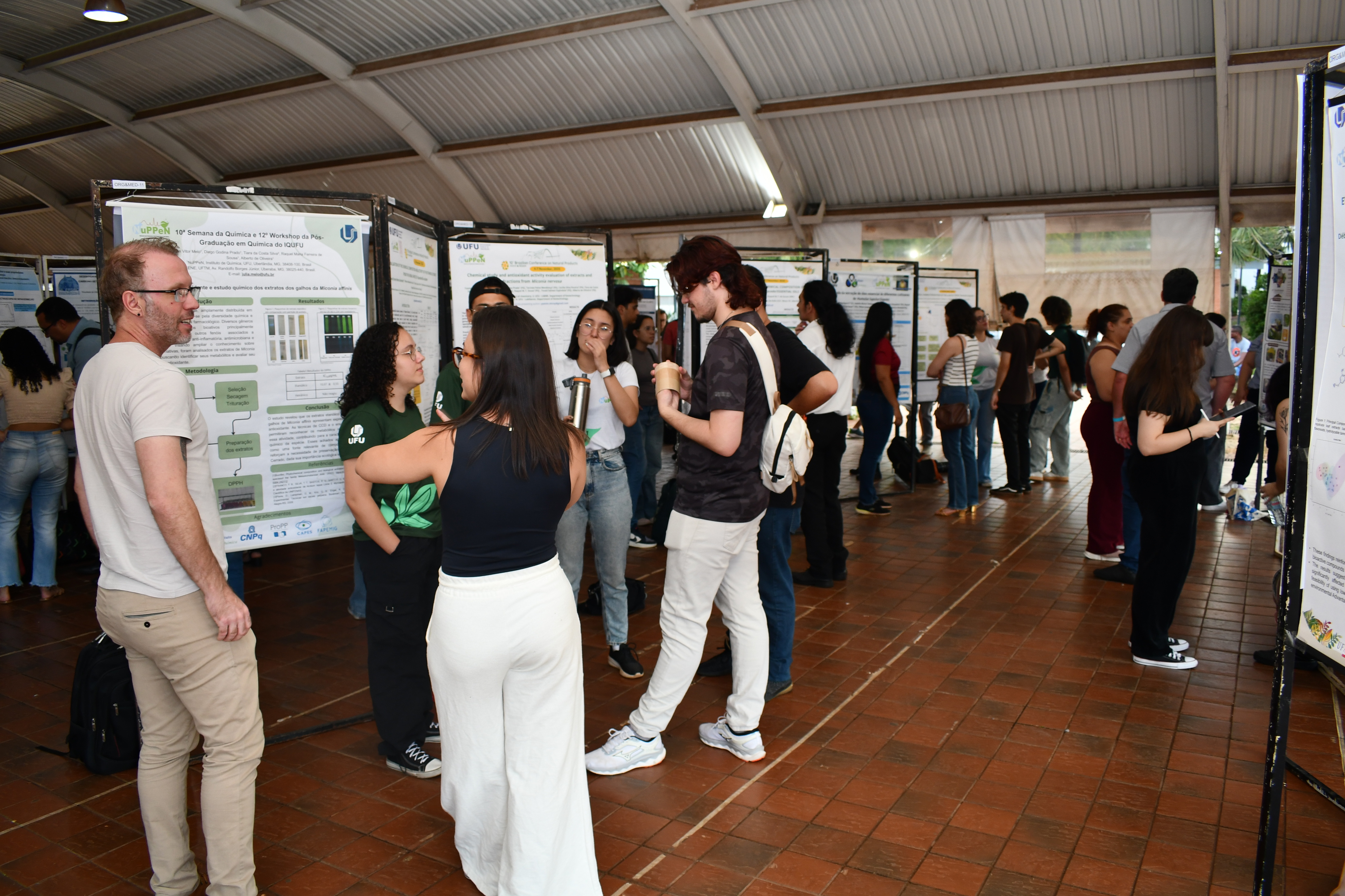 A 10ª Semana da Química e o 12º Workshop da Pós-Graduação em Química da Universidade Federal de Uberlândia (UFU) chegaram ao fim na última sexta-feira (28), encerrando cinco dias de palestras, apresentações de trabalhos, mesas-redondas, gincana acadêmica e atividades de divulgação científica no Campus Santa Mônica. A edição deste ano foi marcada pela presença de escolas e da integração entre estudantes da graduação e pós-graduação, além de um amplo debate sobre o uso da inteligência artificial e seus impactos no ensino, na pesquisa e na vida cotidiana.