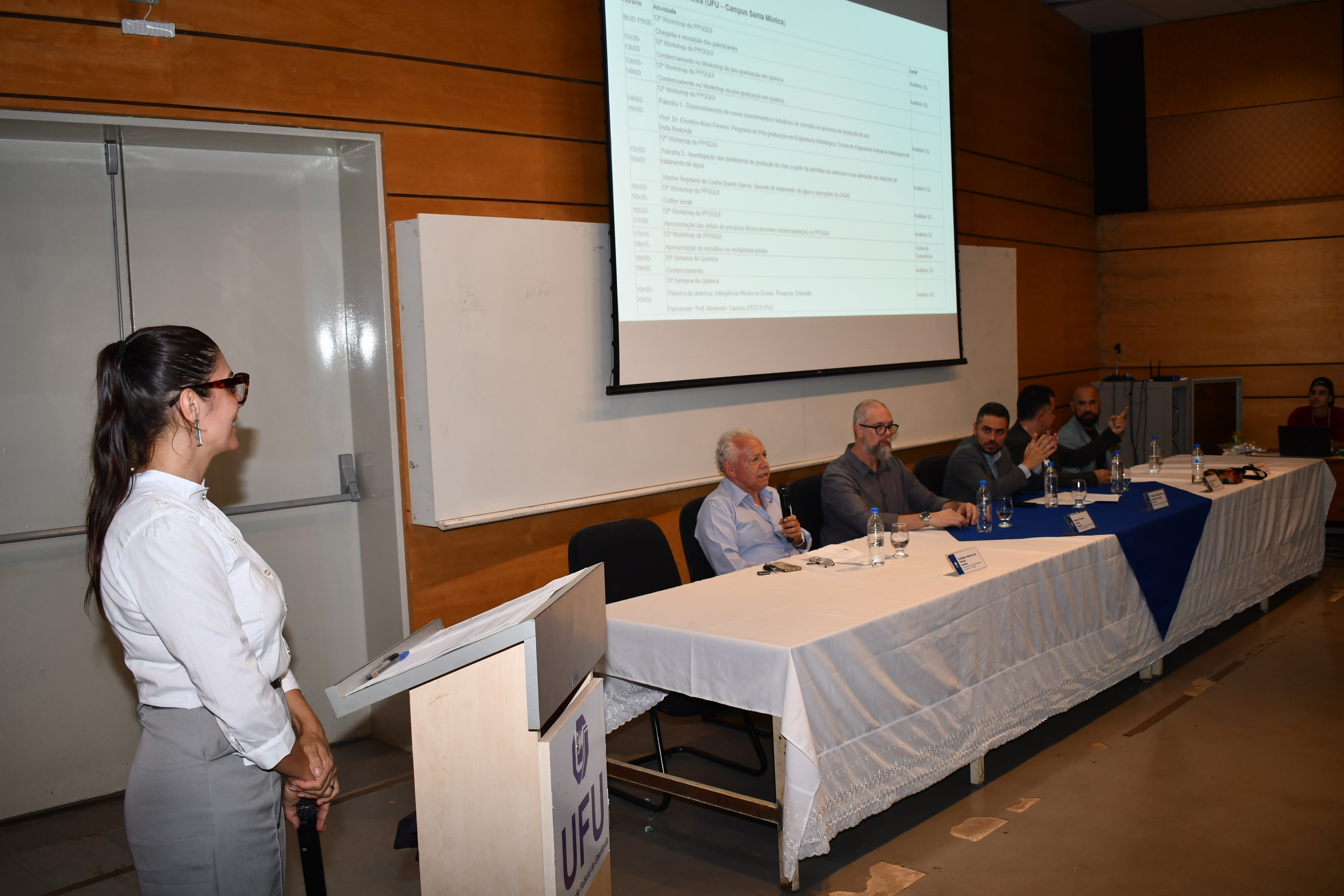 A professora Sheila Cristina Canobre, responsável pelo workshop deste ano, destacou que o evento foi conduzido pelo Núcleo de Físico-química. Segundo a docente, o foco temático foi a eletroquímica, abordada em diferentes aplicações. “Foram convidados pesquisadores da UFF [Universidade Federal Fluminense], de Joinville e outros especialistas que trabalham com corrosão, tratamento de superfícies e processos de eletrólise”, explicou.