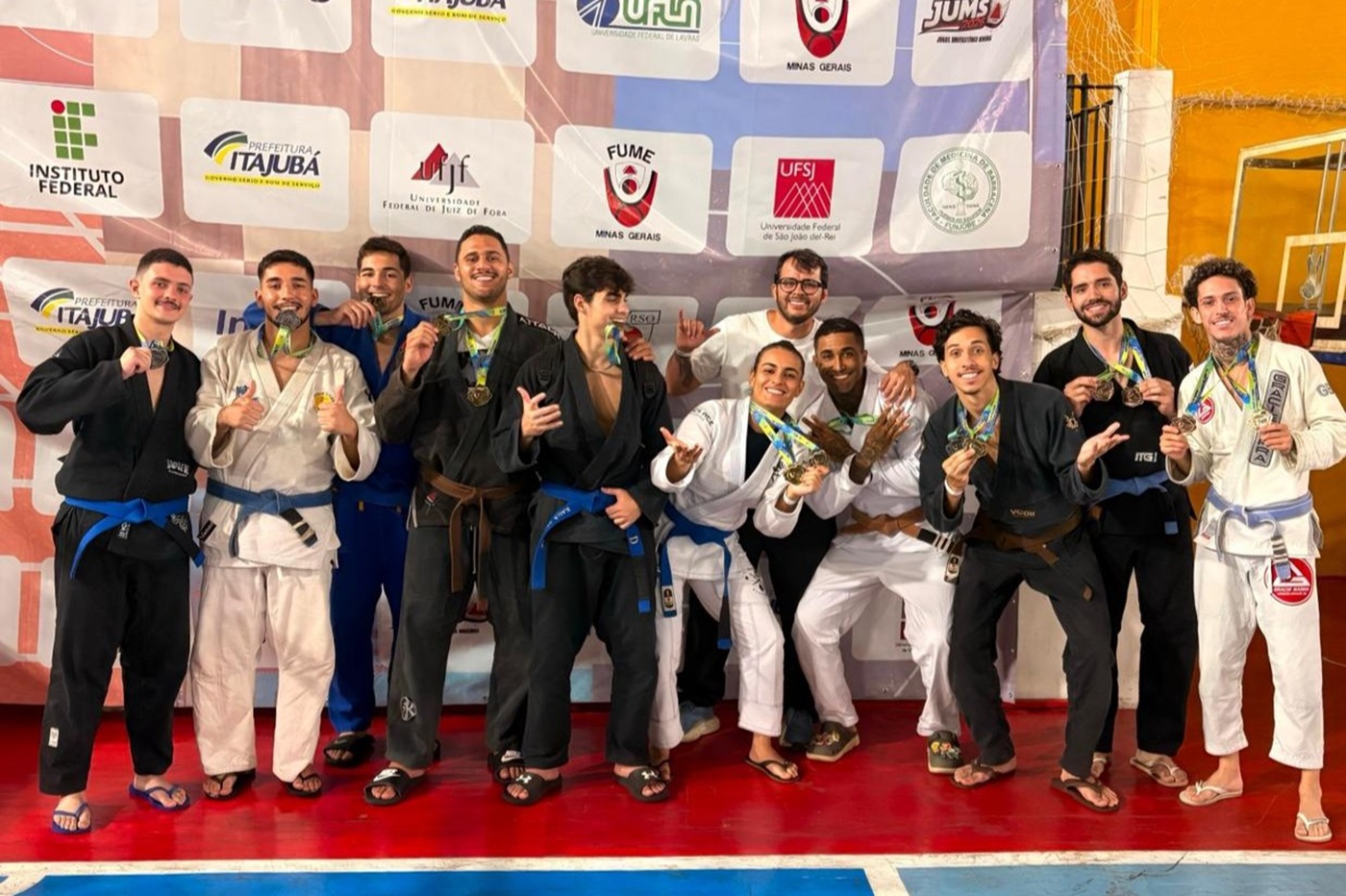 Os destaques da participação da UFU nesta edição dos JUMs ficaram por conta das equipes de jiu-jitsu e do futsal masculino. Ambas conquistaram o primeiro lugar da competição. O técnico da equipe do jiu-jitsu e estudante do curso de Ciência da Computação, Diego de Miranda, comemora o desempenho da equipe e o fato de todos terem retornado da competição com pelo menos uma medalha e o troféu de campeão geral da etapa estadual – lembrando que em 2024 eles já foram campeões da fase nacional, os Jogos Universitários Brasileiros (JUBs). “A sensação é de dever cumprido, apesar de todas as dificuldades, e satisfação em saber que os atletas confiam no nosso trabalho diário e que tudo tem dado resultado. Cada atleta tem se dedicado a evoluir e sempre buscar a vitória de forma confiante. Ficamos felizes em ver as evoluções pessoais”, afirma o Miranda.