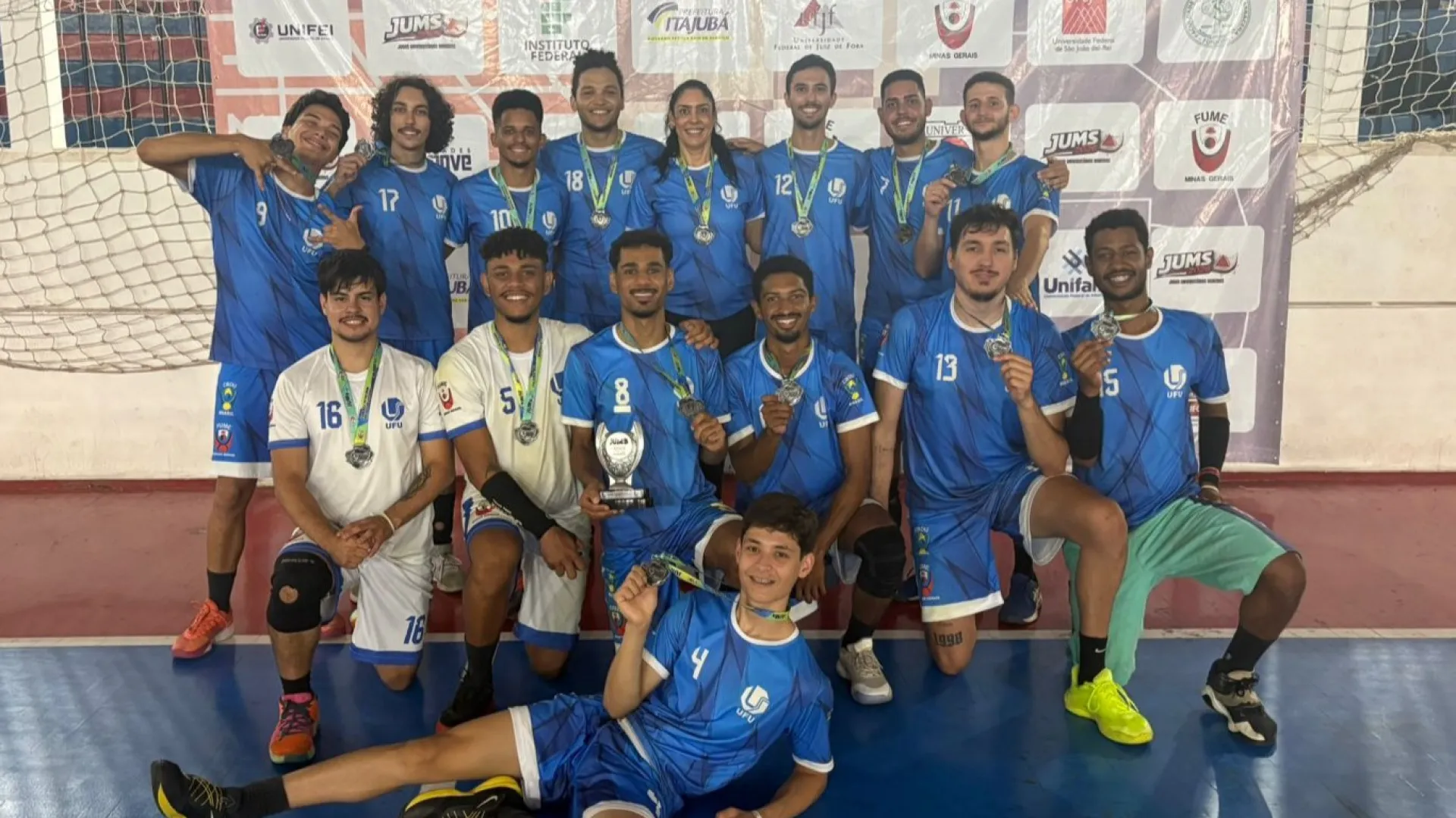 Quando o assunto é ser soberano no solo, seja finalizando um oponente ou tendo domínio e executando passes rápidos de uma bola com um pouco mais de 60cm de circunferência, a equipe da Universidade Federal de Uberlândia (UFU) é destaque! No início deste mês, entre os dias 31 de março e 5 de abril, aconteceram os Jogos Universitários Mineiros (JUMs), em Itajubá - MG. A UFU participou da competição, que reuniu mais de 1.300 estudantes-atletas de 21 instituições de ensino superior do estado, em sete modalidades diferentes em ambos os naipes – feminino e masculino. O resultado foi a conquista de seis medalhas nos esportes coletivos e 72 nos individuais.