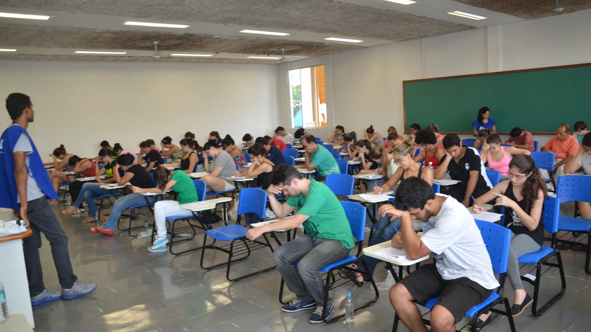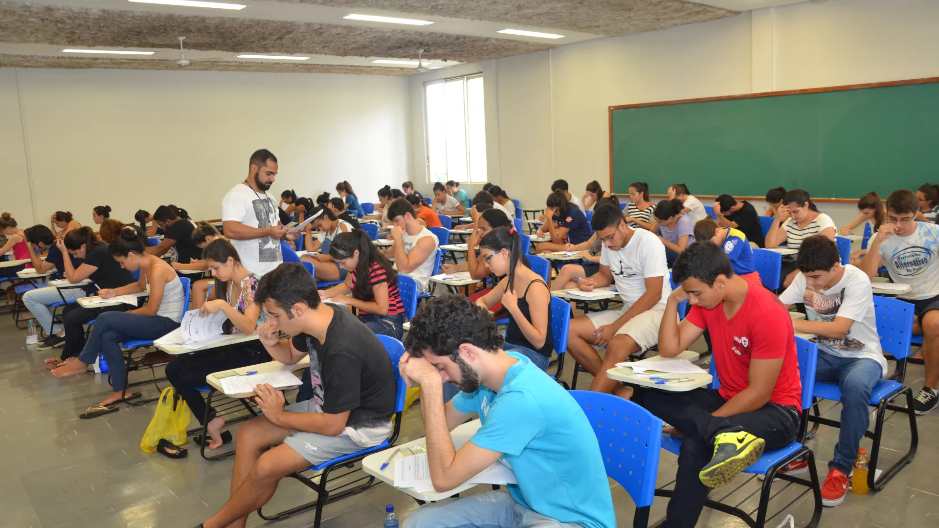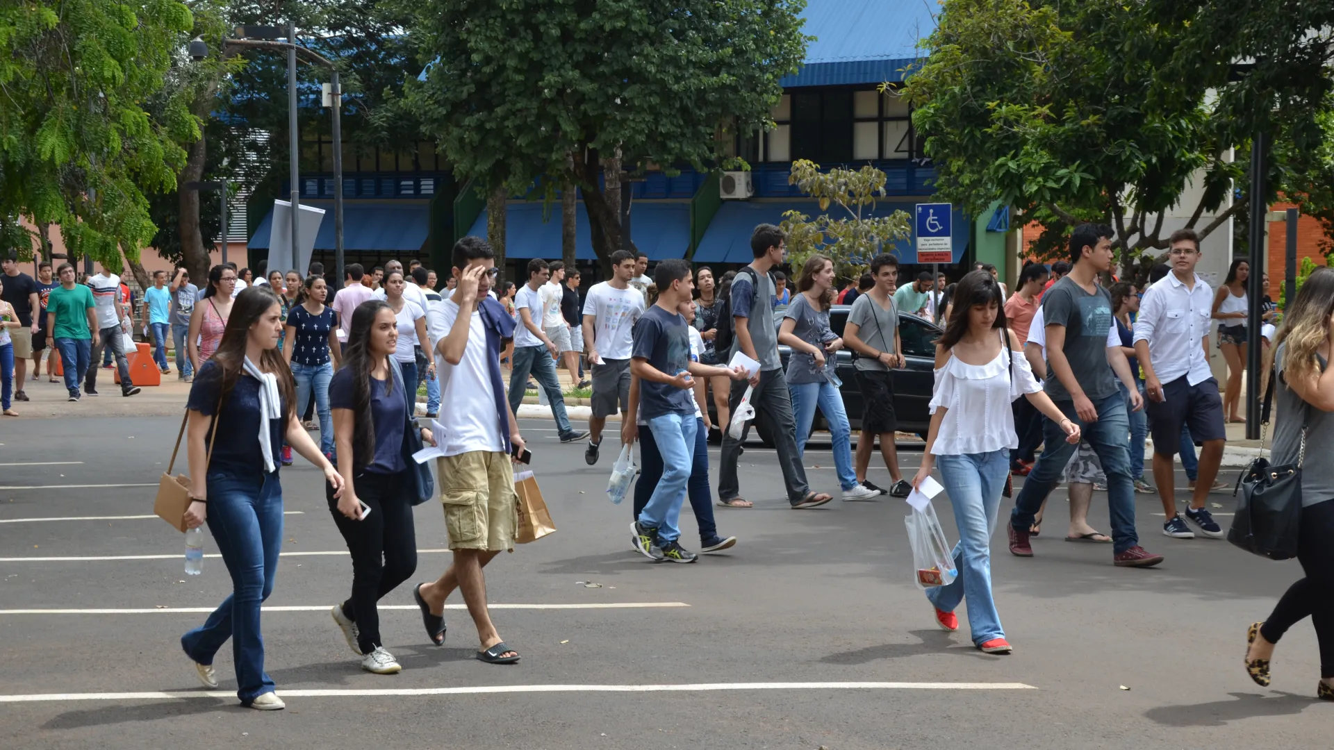 Mais de 20 mil candidatos estão inscritos para concorrer às 1.646 vagas oferecidas pela Universidade Federal de Uberlândia (UFU) no Vestibular 2016/2. Neste sábado, 02/04, os vestibulandos estão realizando as provas de Biologia, Física, Geografia, Língua Portuguesa, Literatura e Sociologia. As avaliações tiveram início às 13h30 e o prazo máximo para a entrega do cartão de respostas é de quatro horas, ou seja, às 17h30. Além de Uberlândia, as provas estão sendo aplicadas em outras cinco cidades: Goiânia (GO), Ituiutaba (MG), Monte Carmelo (MG), Patos de Minas (MG) e Ribeirão Preto (SP). Confira nestas imagens a movimentação no Campus Santa Mônica, o maior da Instituição. (Fotos: Milton Santos)
