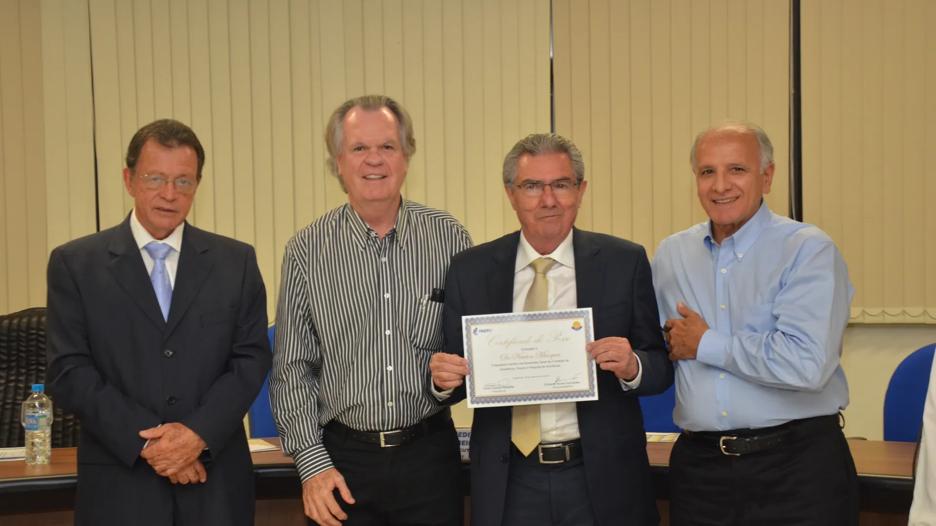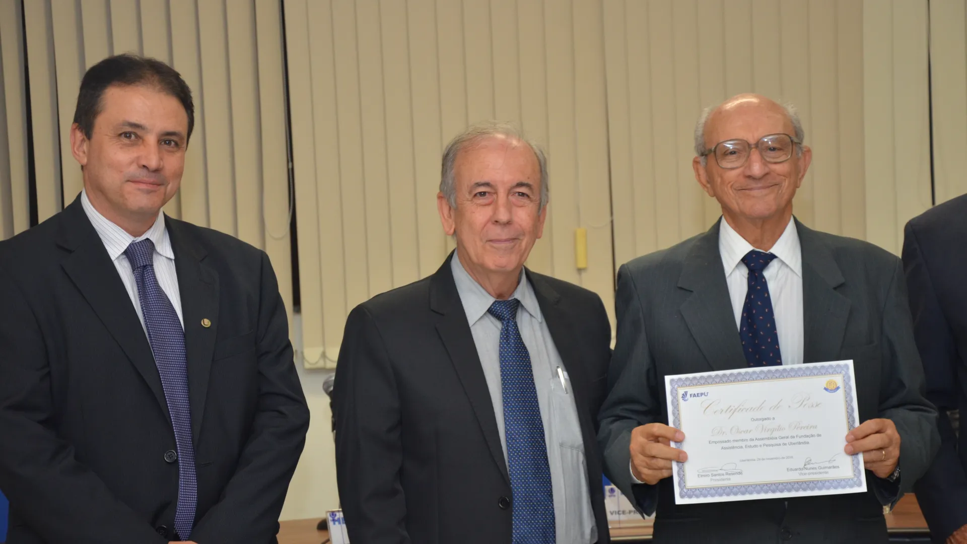 Na noite desta terça-feira, dia 29/11, a sala de reuniões da Reitoria, da Universidade Federal de Uberlândia (UFU), sediou o evento de comemoração dos 50 anos de criação da Fundação de Assistência, Estudo e Pesquisa de Uberlândia (Faepu). A celebração, que contou com a presença do reitor Elmiro Santos Resende, homenageou professores e técnicos que tiveram um papel importante na história da fundação. (Fotos: Milton Santos)