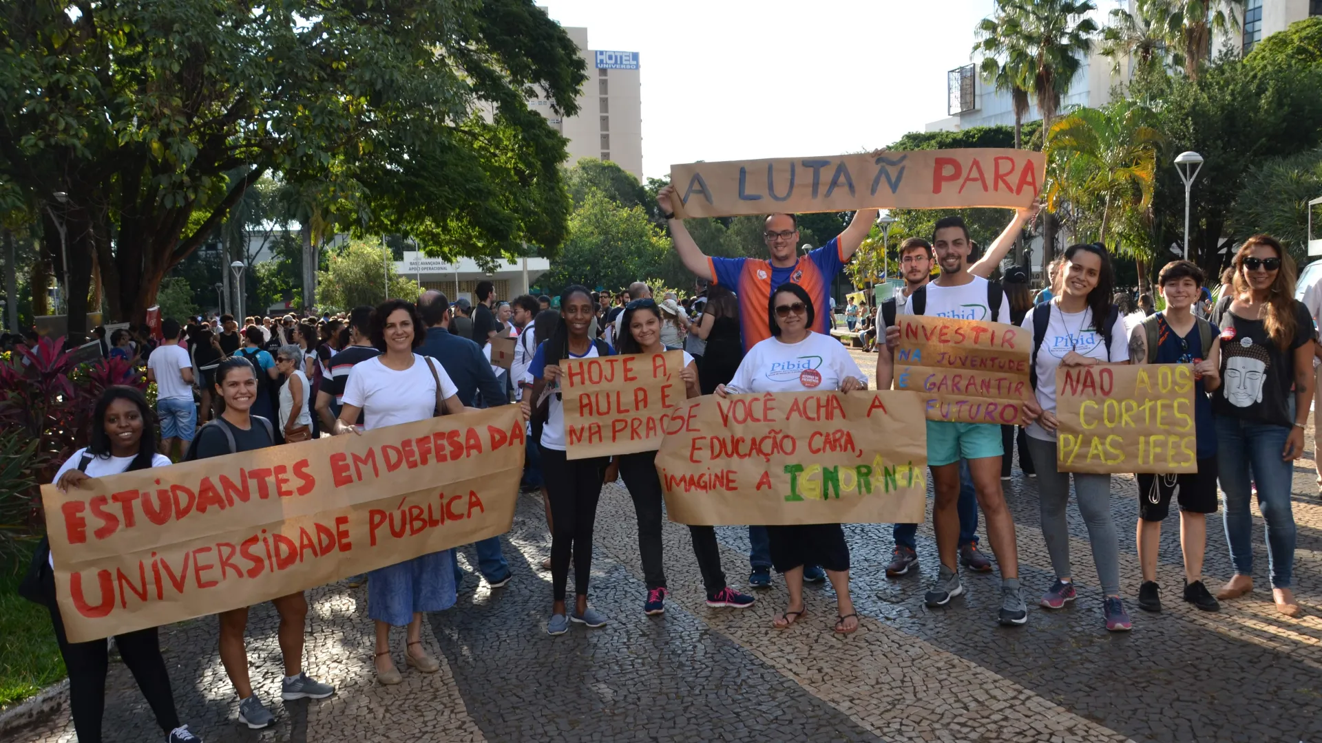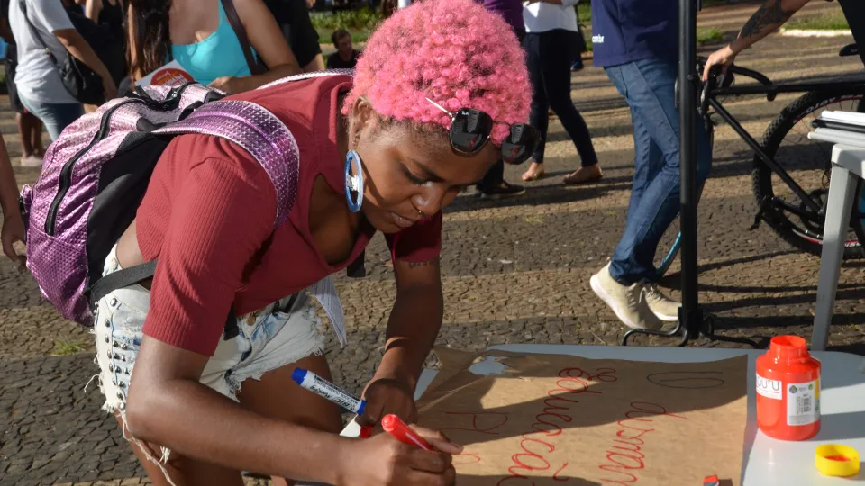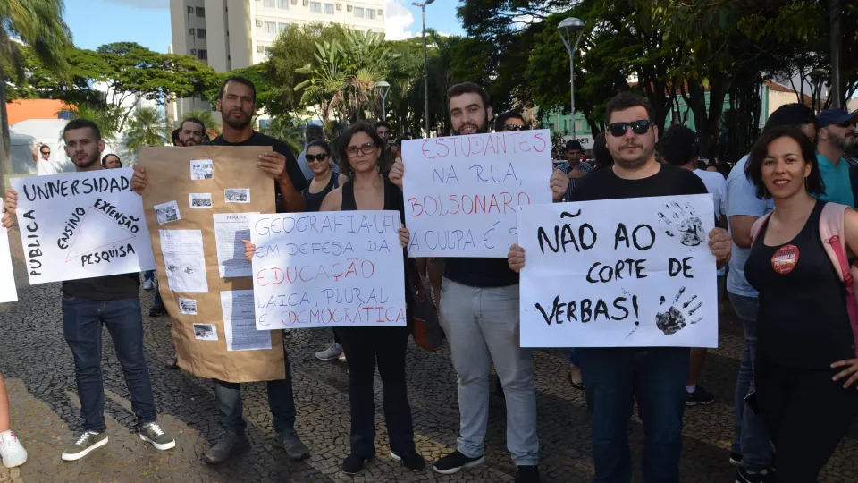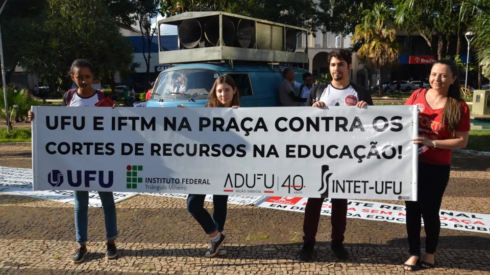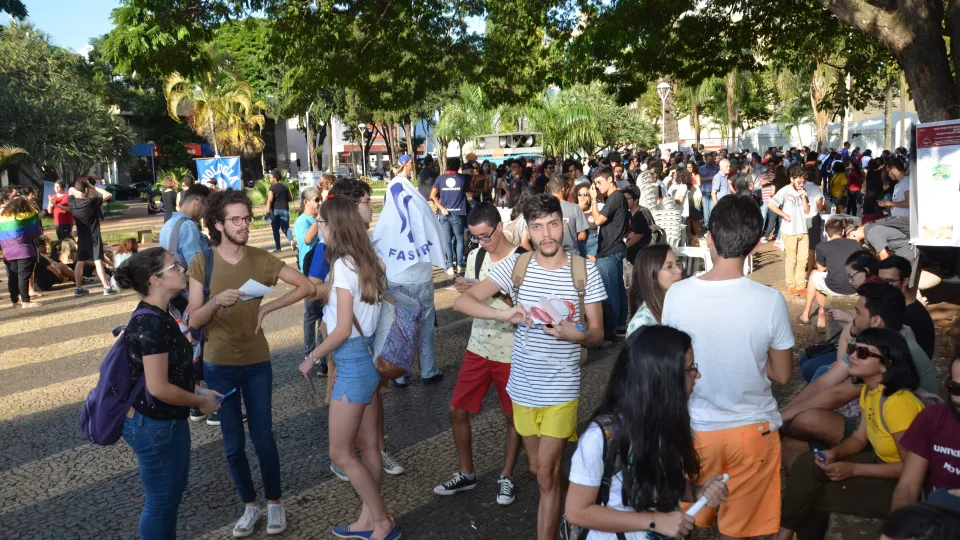 Na tarde de quarta-feira pesquisadores da UFU se manifestaram contra os cortes no orçamento das universidades. Eles realizaram uma mostra de pesquisas na Praça Tubal Vilela, no Centro de Uberlândia. (fotos: Milton Santos)