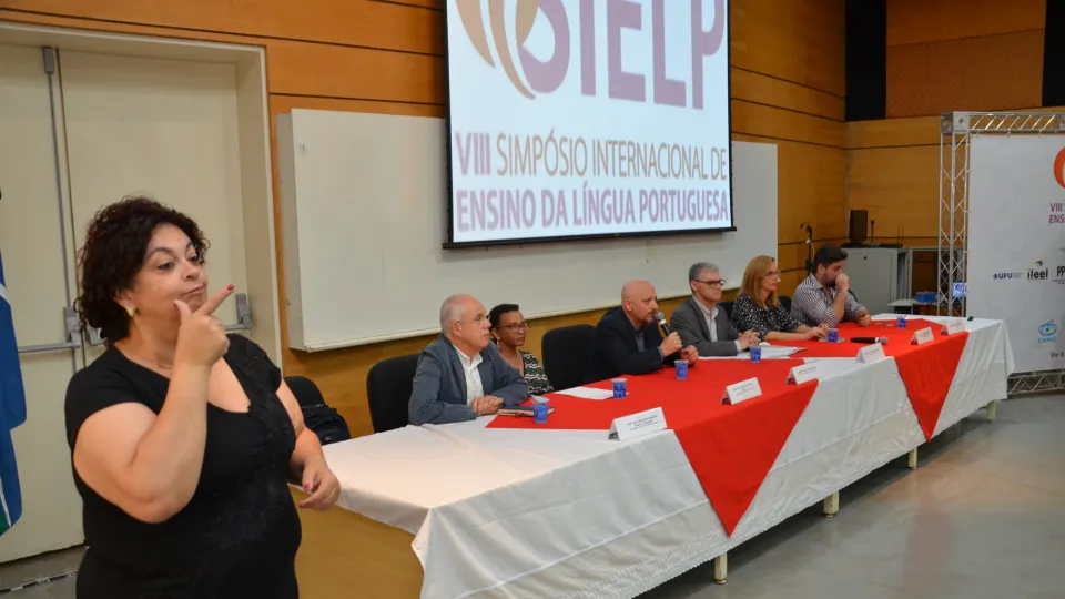 Com o tema "Política de Ensino de Língua Portuguesa", o VIII Simpósio Internacional de Ensino de Língua Portuguesa (Sielp) acontece no Campus Santa Mônica da Universidade Federal de Uberlândia (UFU), entre 6 e 8 de novembro. O evento é composto por conferências, mesas-redondas e simpósios temáticos. A cerimônia de abertura aconteceu no Auditório do Bloco 3Q. (Fotos: Milton Santos)
