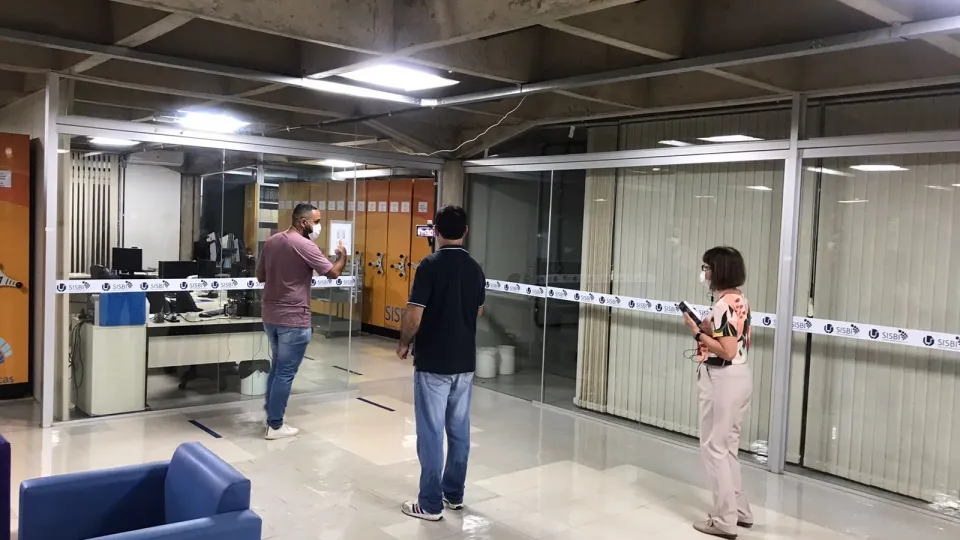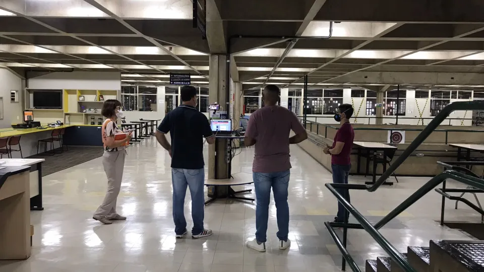 A Biblioteca Central do Campus Santa Mônica da Universidade Federal de Uberlândia (UFU) recebeu, na tarde desta segunda-feira (28/03), a visita virtual in loco de uma comissão de avaliação do Ministério da Educação (MEC). O ato é um dos procedimentos obrigatórios para o reconhecimento do curso de Matemática EaD e visa a classificar a biblioteca universitária. (Fotos: Divulgação/Sistema de Bibliotecas)