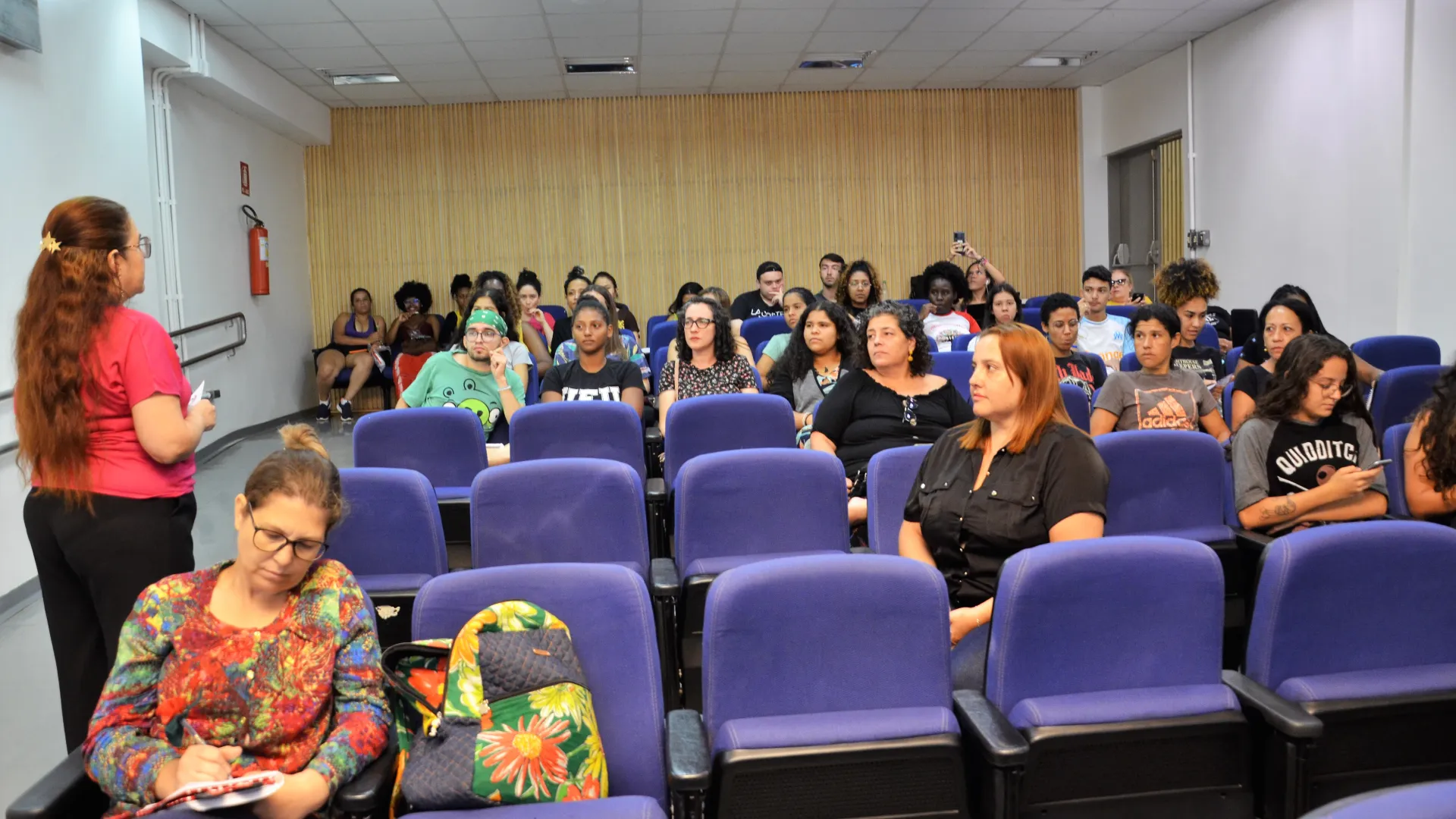 Na tarde da última quinta-feira, 20, o projeto de extensão "Eu combato a violência, e você?", vinculado ao curso de Serviço Social da Universidade Federal de Uberlândia (UFU), Campus Pontal, e coordenado pela professora Soraia Veloso, teve seu primeiro encontro presencial após o início da pandemia da Covid-19. O projeto tem como principal intuito, por meio de um cine-debate, discutir a violência contra a mulher. Os encontros acontecem todos os meses em um dos auditórios do campus. Ele é aberto ao público e de acesso gratuito. O filme apresentado aos participantes foi "Que bom te ver viva", da diretora Lúcia Murat, que foi torturada no período da ditadura militar e narra a vida de algumas mulheres brasileiras que pegaram em armas contra o regime militar. (Fotos: Milton Santos)