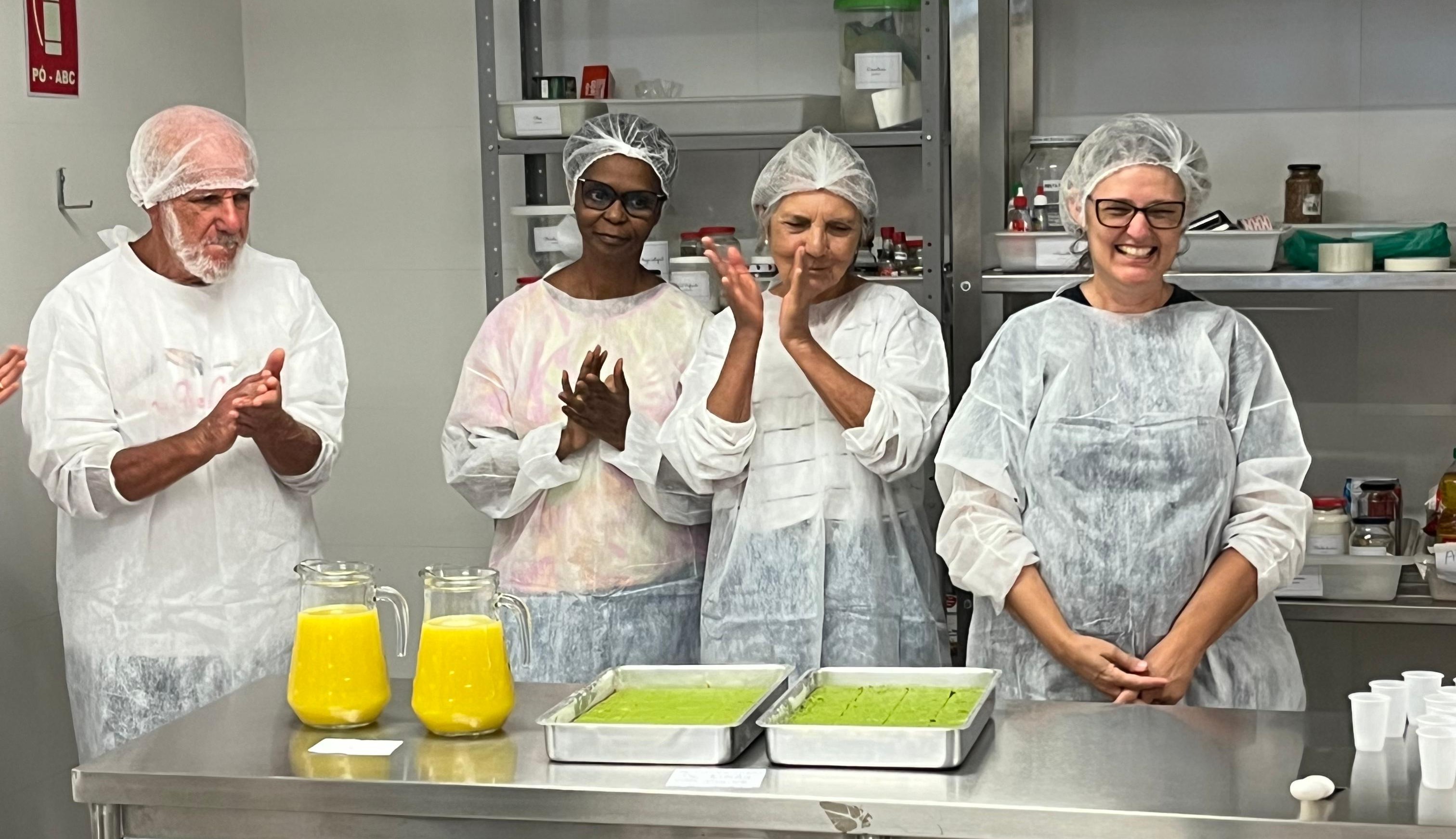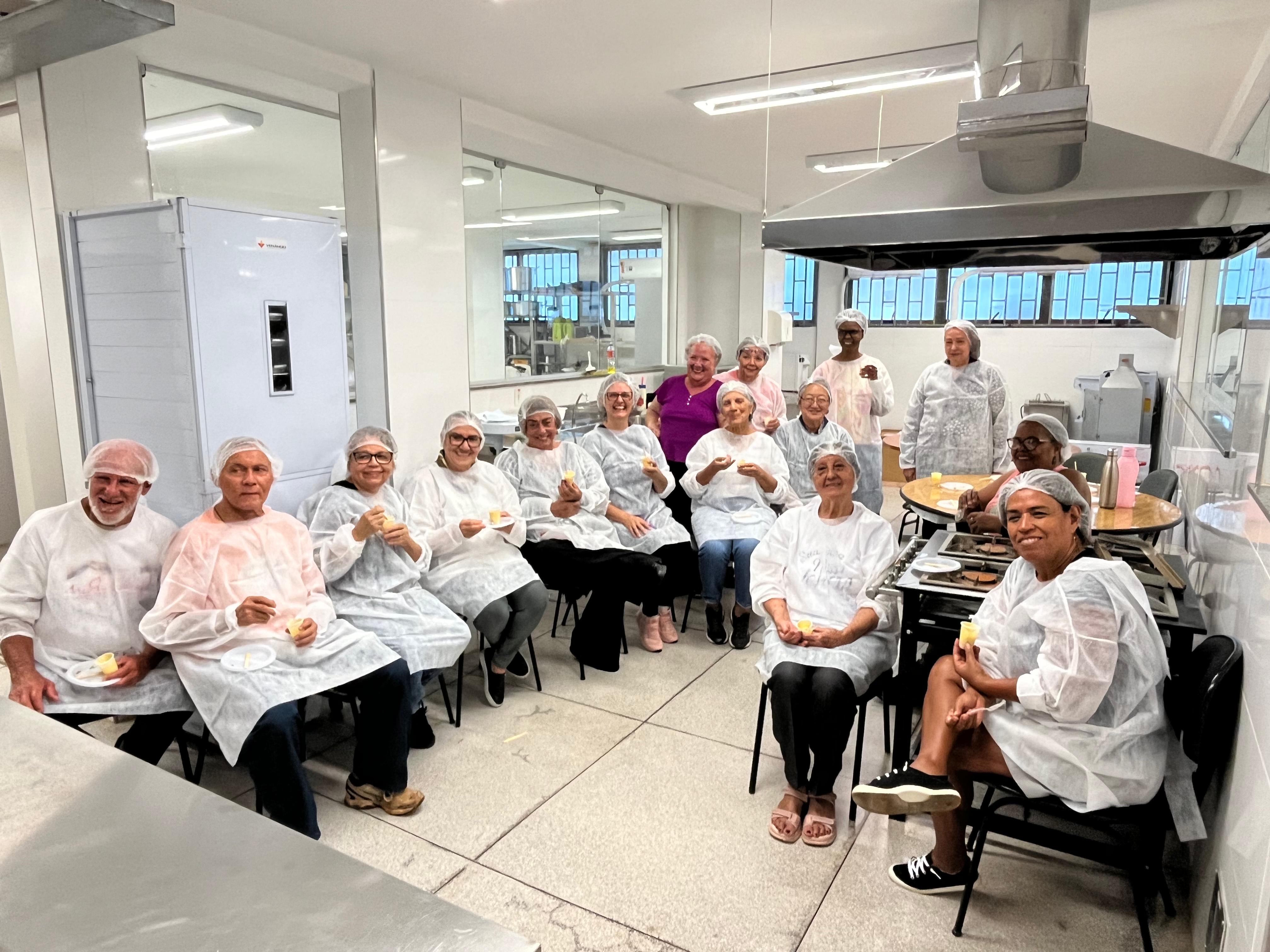 Todo semestre, a atividade contempla aproximadamente 15 idosos, sendo realizadas diversas preparações, como reaproveitamento integral dos alimentos e temáticas (Natal, Festa Junina etc). (Fotos: Arquivo pessoal)