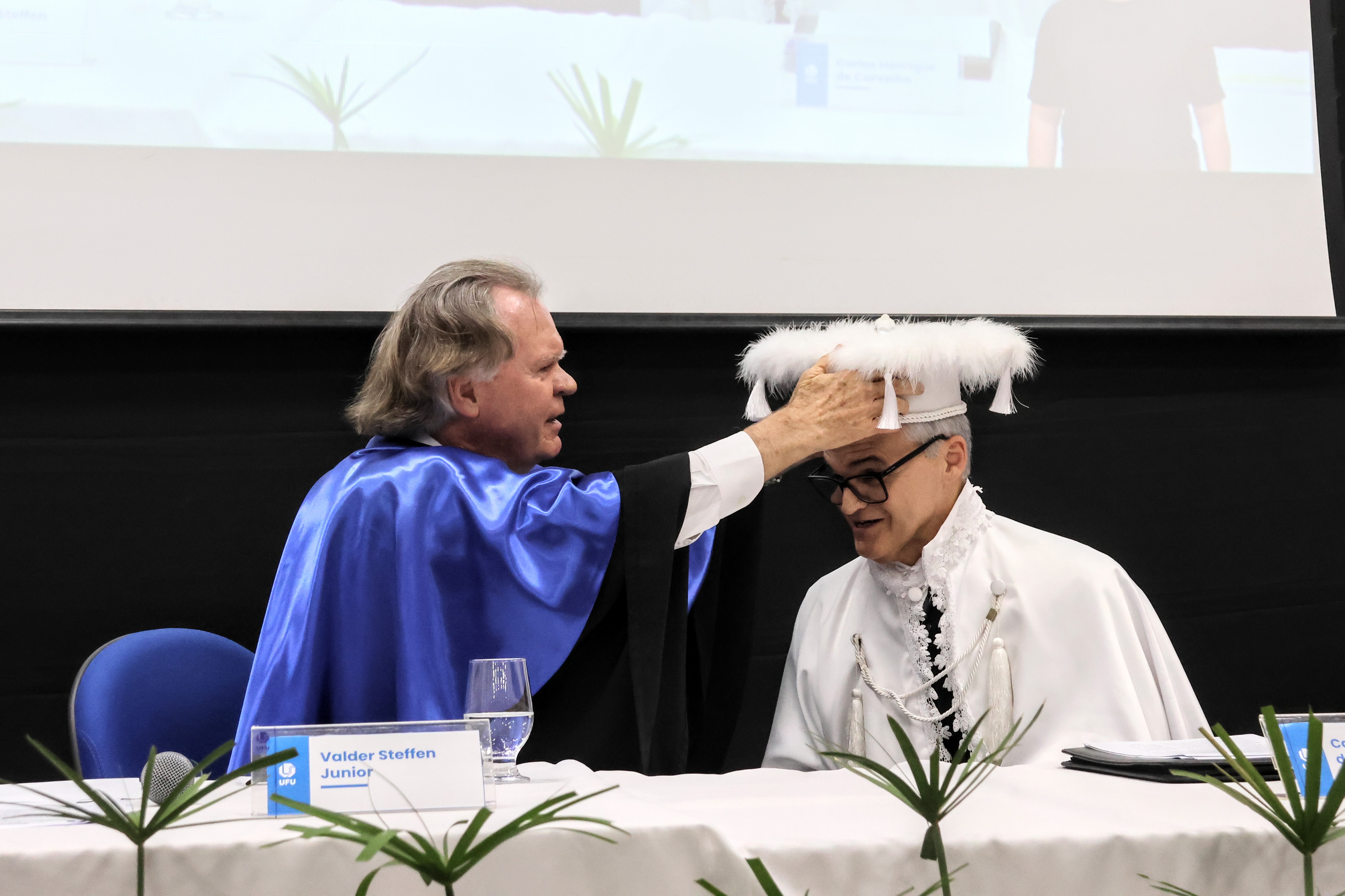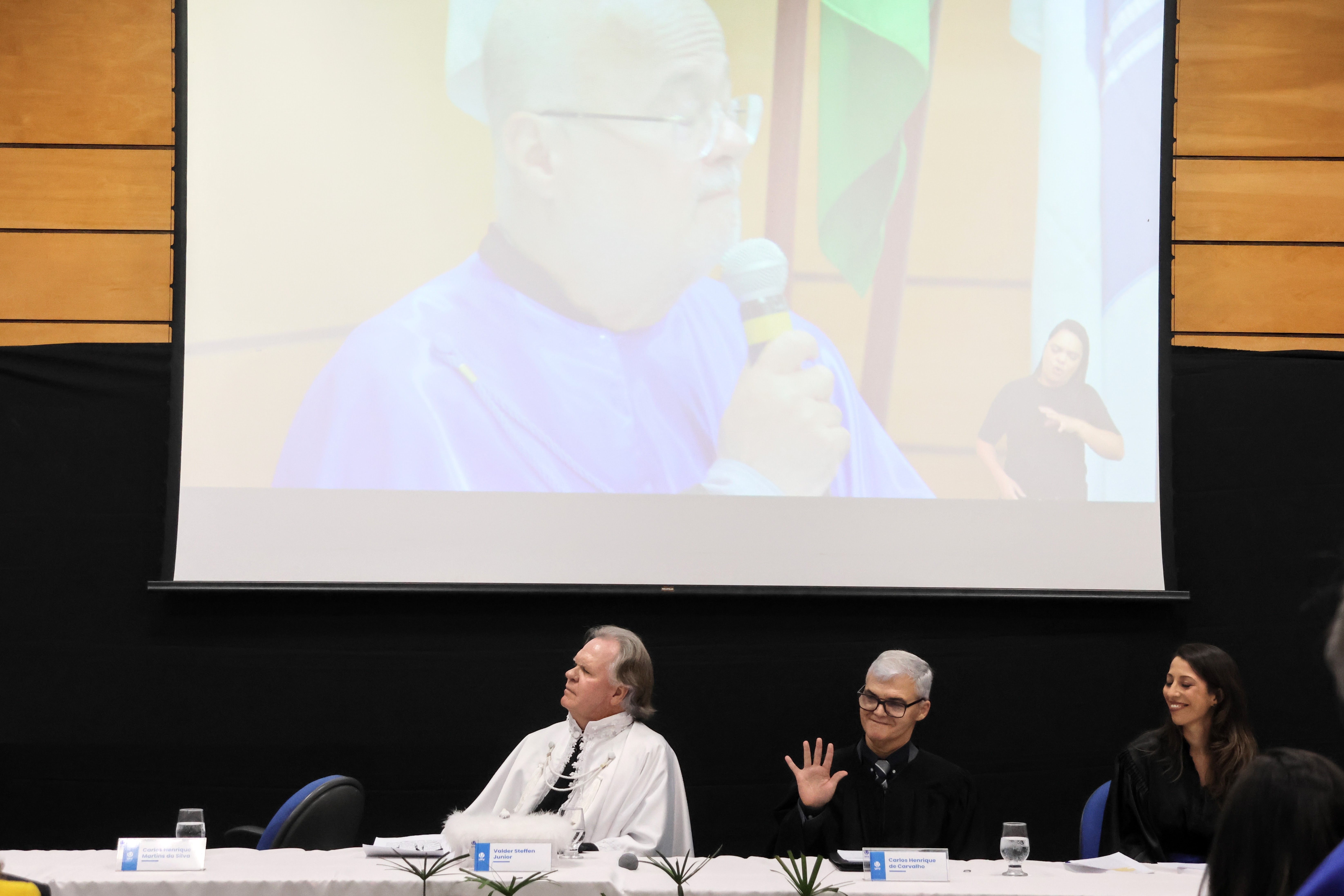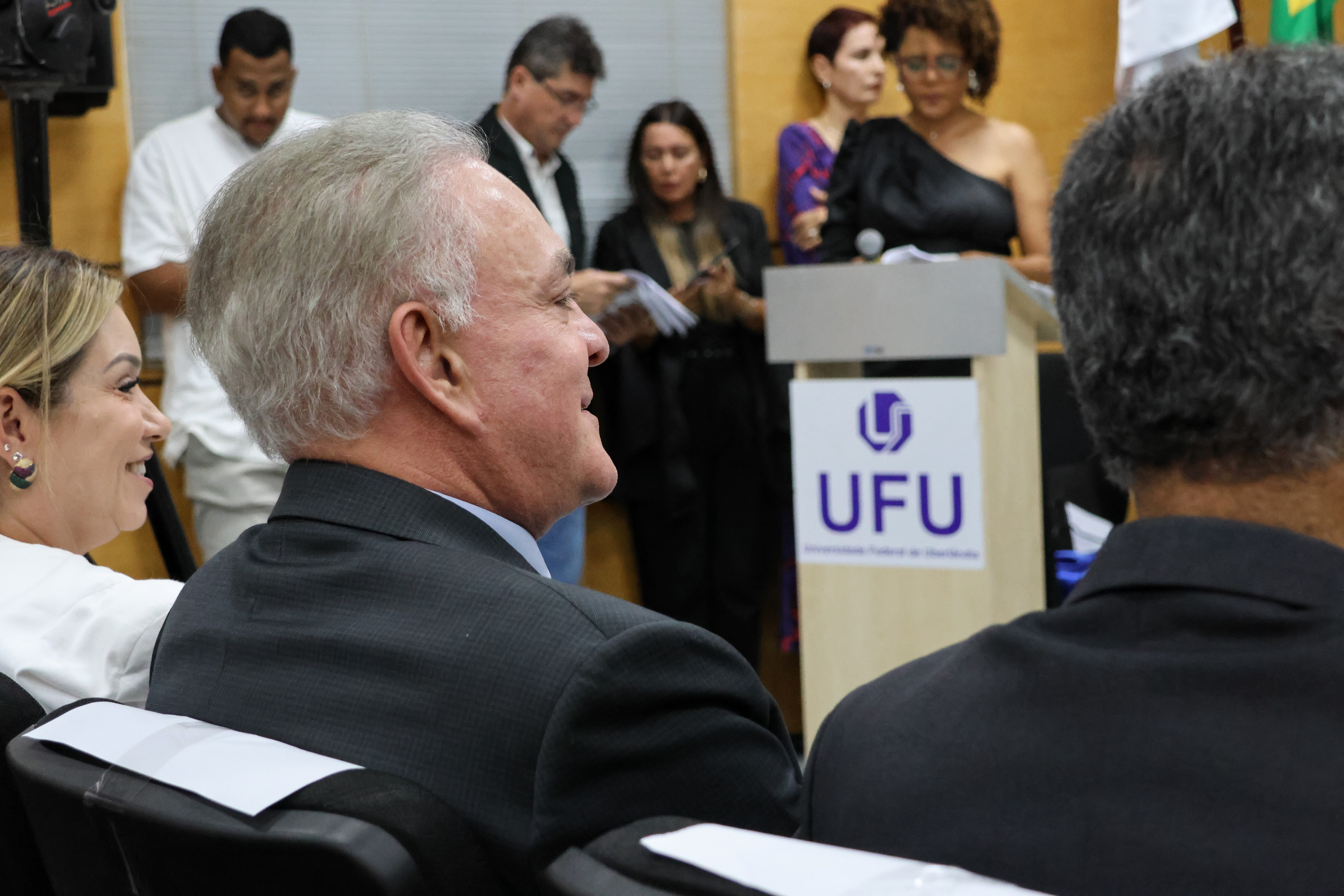 Confira as imagens da cerimônia de posse de Carlos Henrique de Carvalho no cargo de reitor da UFU realizada na noite de 6/2, no anfiteatro do bloco 3Q, no Campus Santa Mônica.