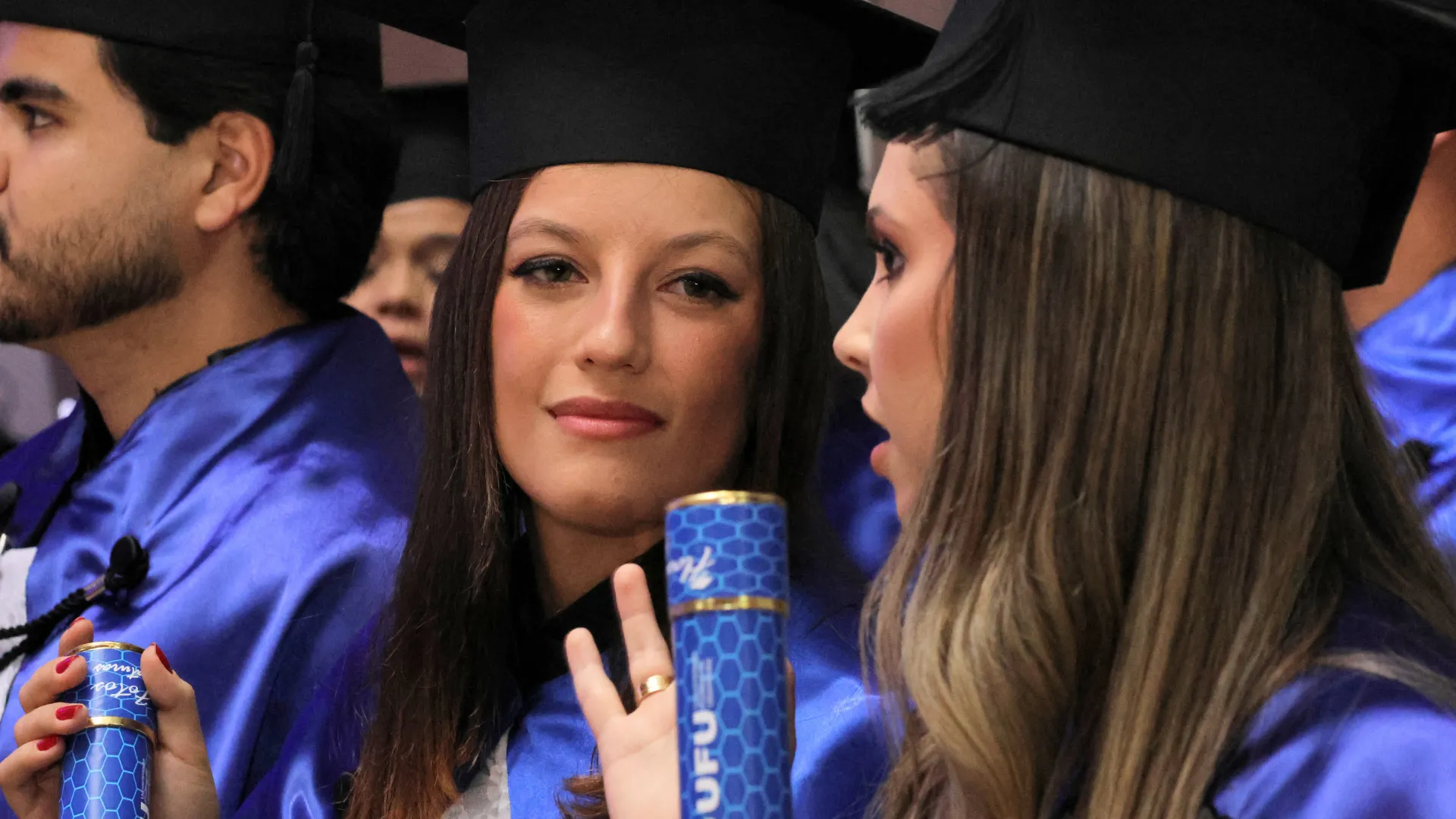 Confira as imagens da cerimônia de colação de grau dos formandos 2024-1 do Campus Monte Carmelo da UFU, realizada na noite de quarta-feira, 19/02/2025. Saiba mais em: https://comunica.ufu.br/node/30986.