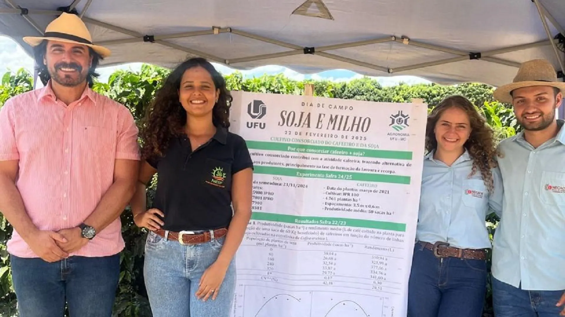 O dia de campo contou com o apoio das empresas Retiro da Roça, LG Sementes e Bioturfa, reunindo produtores rurais, discentes e profissionais do setor agrícola para uma imersão nas inovações e práticas de manejo com capacidade de moldagem do futuro da produção dessas culturas.