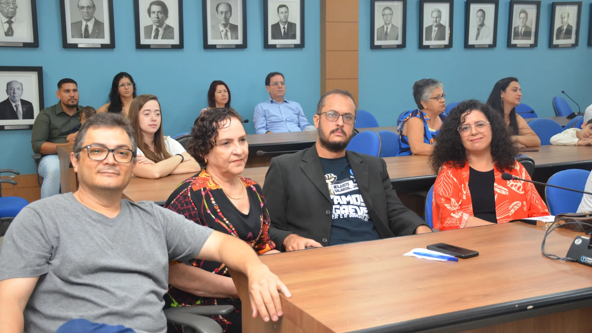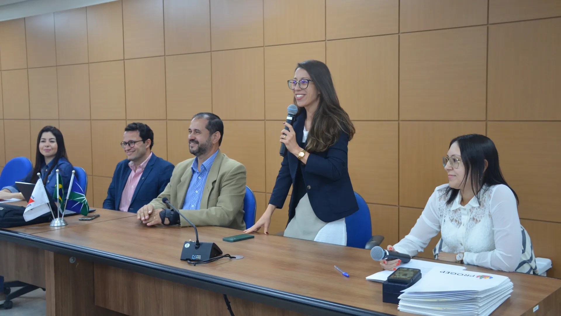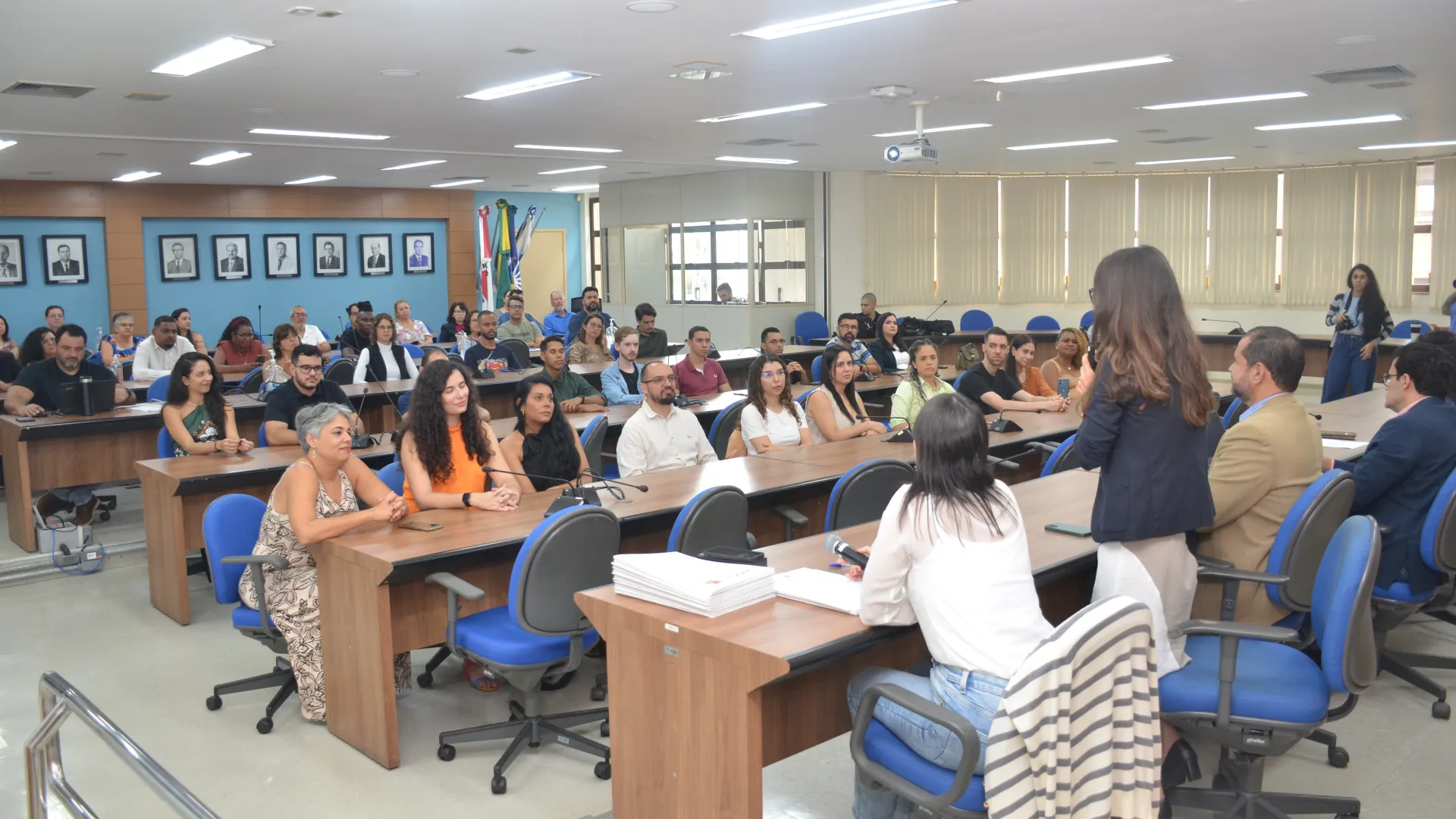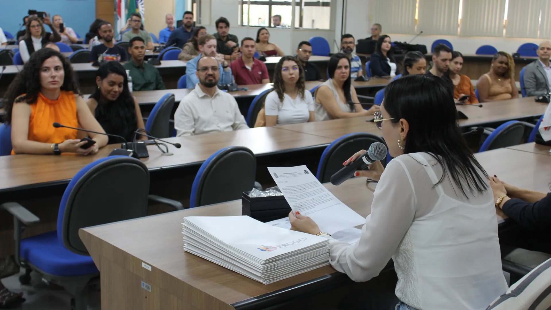 A posse dos novos servidores da Universidade Federal de Uberlândia (UFU) contou com a presença da vice-reitora, Catarina Machado Azeredo; do pró-reitor de Gestão de Pessoas, Sebastião Elias da Silveira; e do diretor de Provimento, Acompanhamento e Administração de Carreiras da Pró-Reitoria de Gestão de Pessoas (Progep), Juliano Carlos Cecílio Batista Oliveira. (Fotos: Milton Santos e Maria Eduarda Freitas)