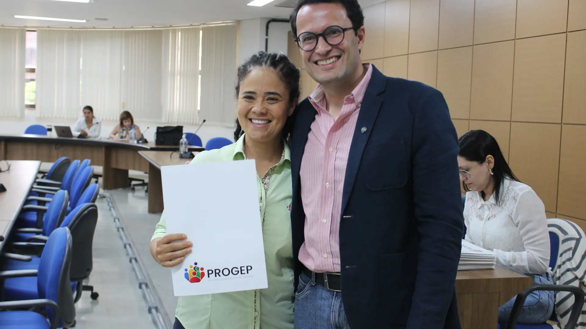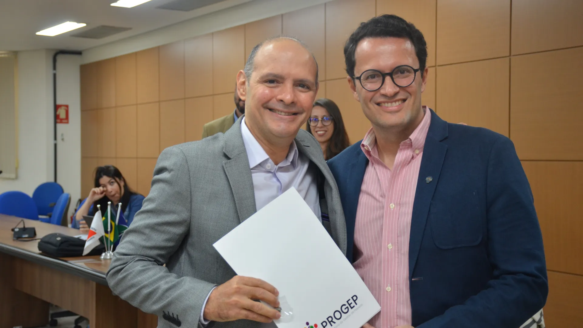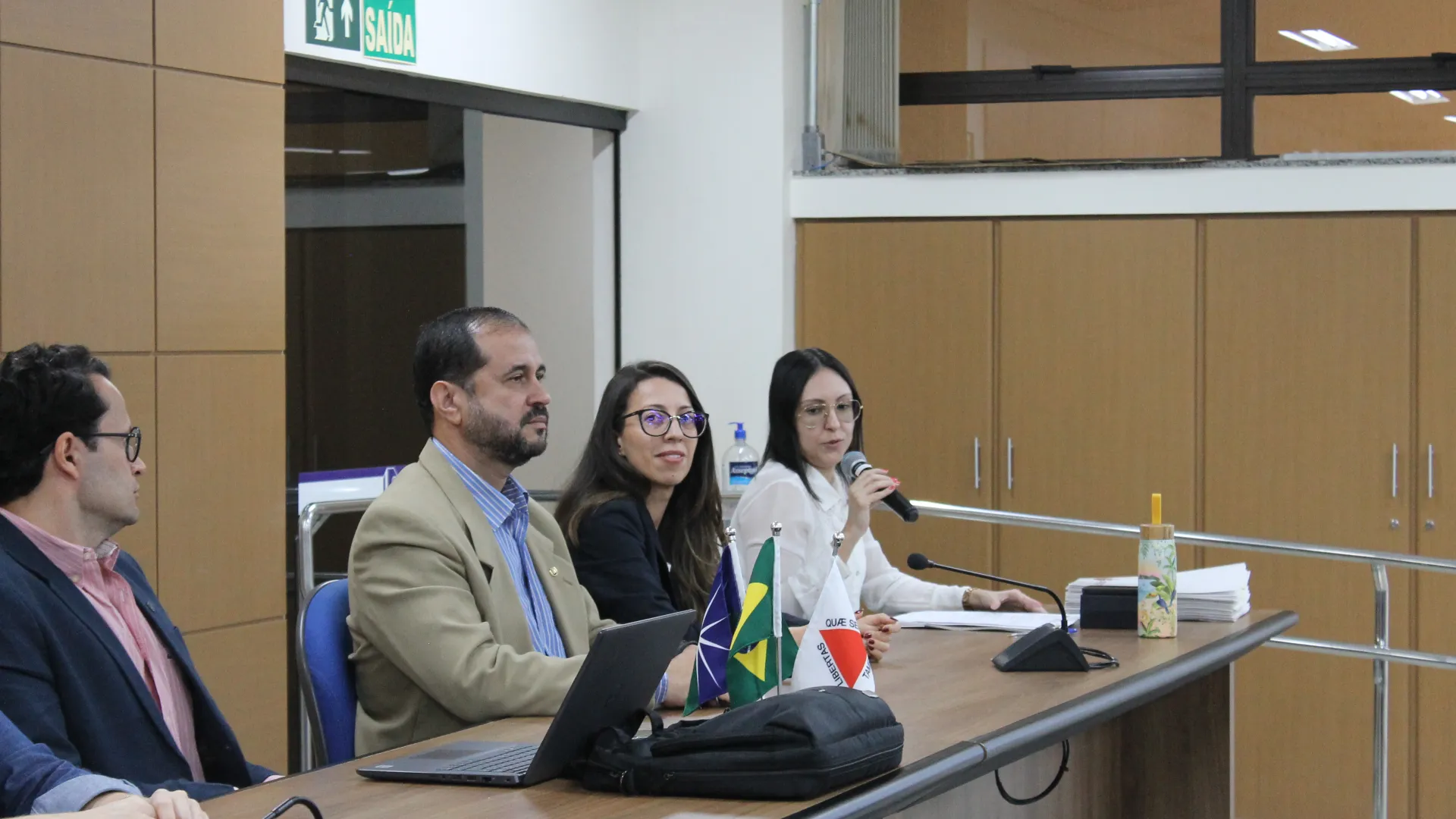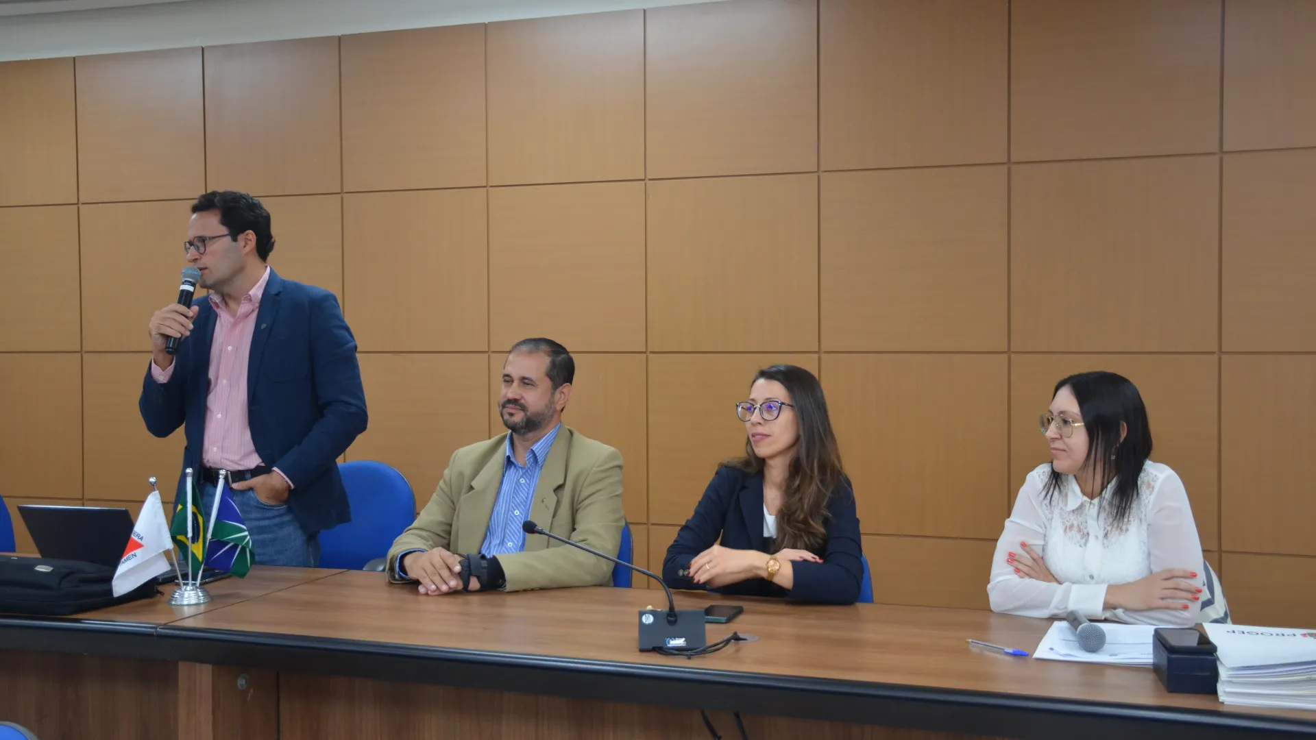 A posse dos novos servidores da Universidade Federal de Uberlândia (UFU) contou com a presença da vice-reitora, Catarina Machado Azeredo; do pró-reitor de Gestão de Pessoas, Sebastião Elias da Silveira; e do diretor de Provimento, Acompanhamento e Administração de Carreiras da Pró-Reitoria de Gestão de Pessoas (Progep), Juliano Carlos Cecílio Batista Oliveira. (Fotos: Milton Santos e Maria Eduarda Freitas)