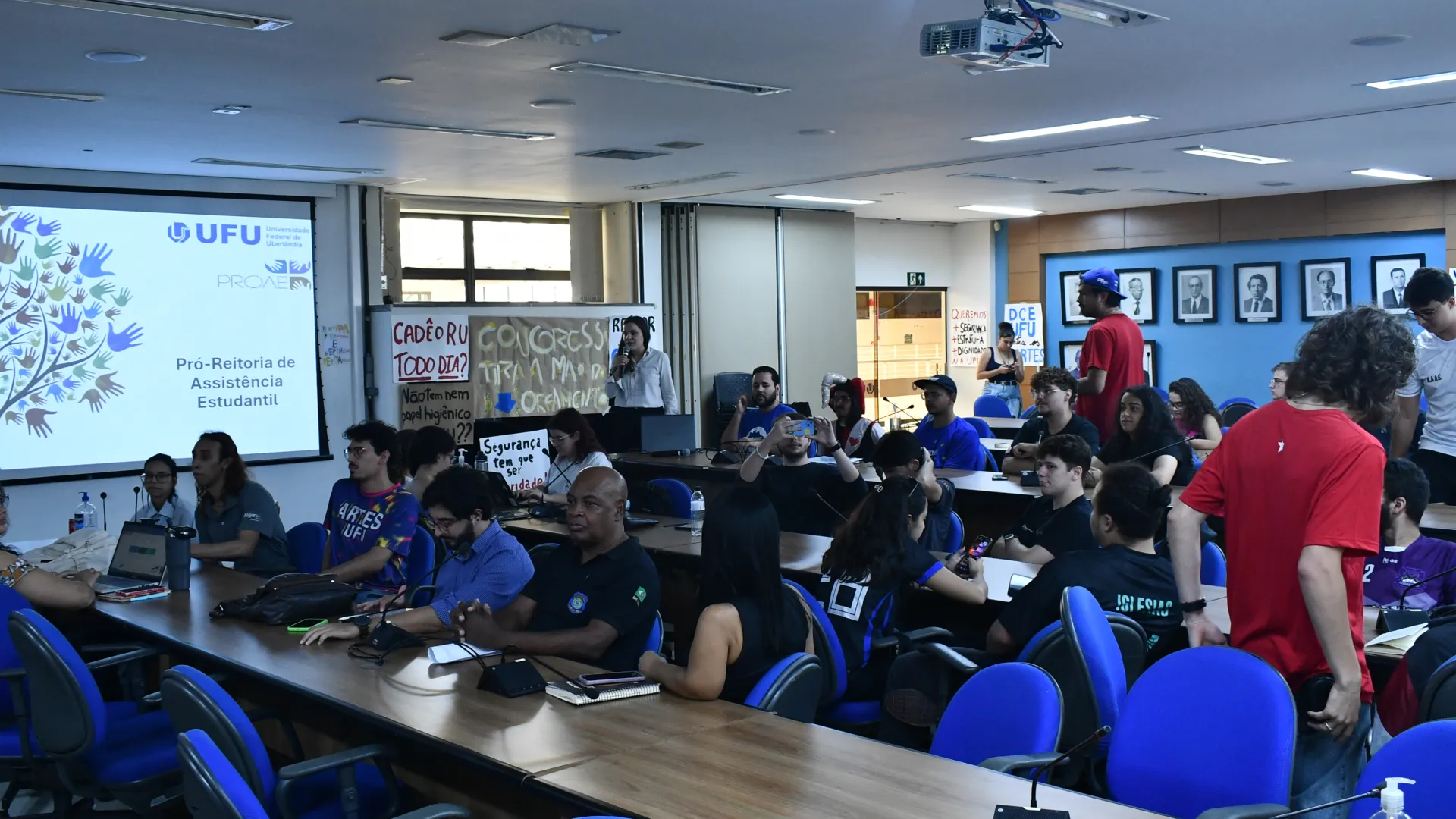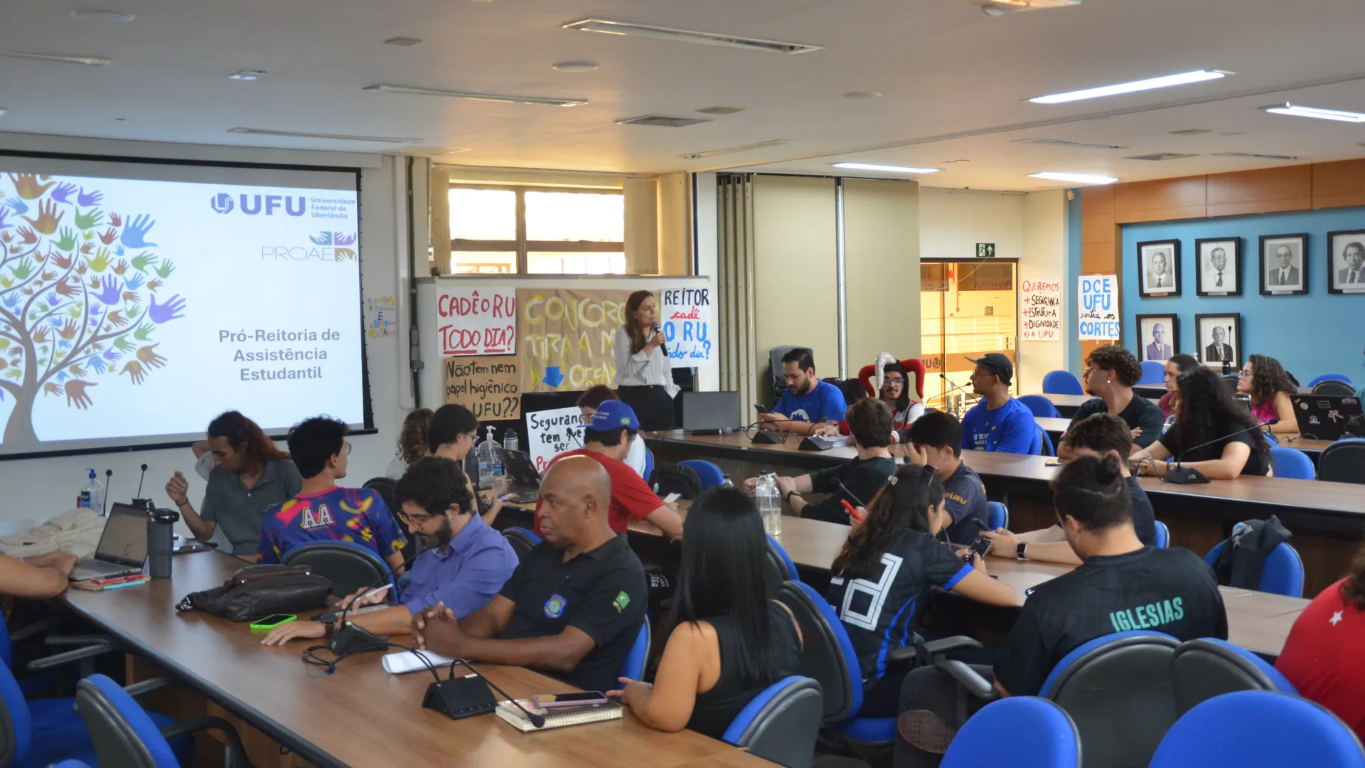 A Pró-Reitoria de Assistência Estudantil da Universidade Federal de Uberlândia (Proae/UFU) organizou um momento de conversa com integrantes de DCE, DAs, CAs, Atléticas, Coletivos e demais grupamentos estudantis dos campi da instituição em Uberlândia. O objetivo principal do "Proae com Você" foi esclarecer dúvidas sobre auxílios, Restaurantes Universitários e segurança nos campi, entre outros temas importantes, Futuramente, a Proae realizará reuniões em Ituiutaba, Monte Carmelo e Patos de Minas. (Fotos: Milton Santos)