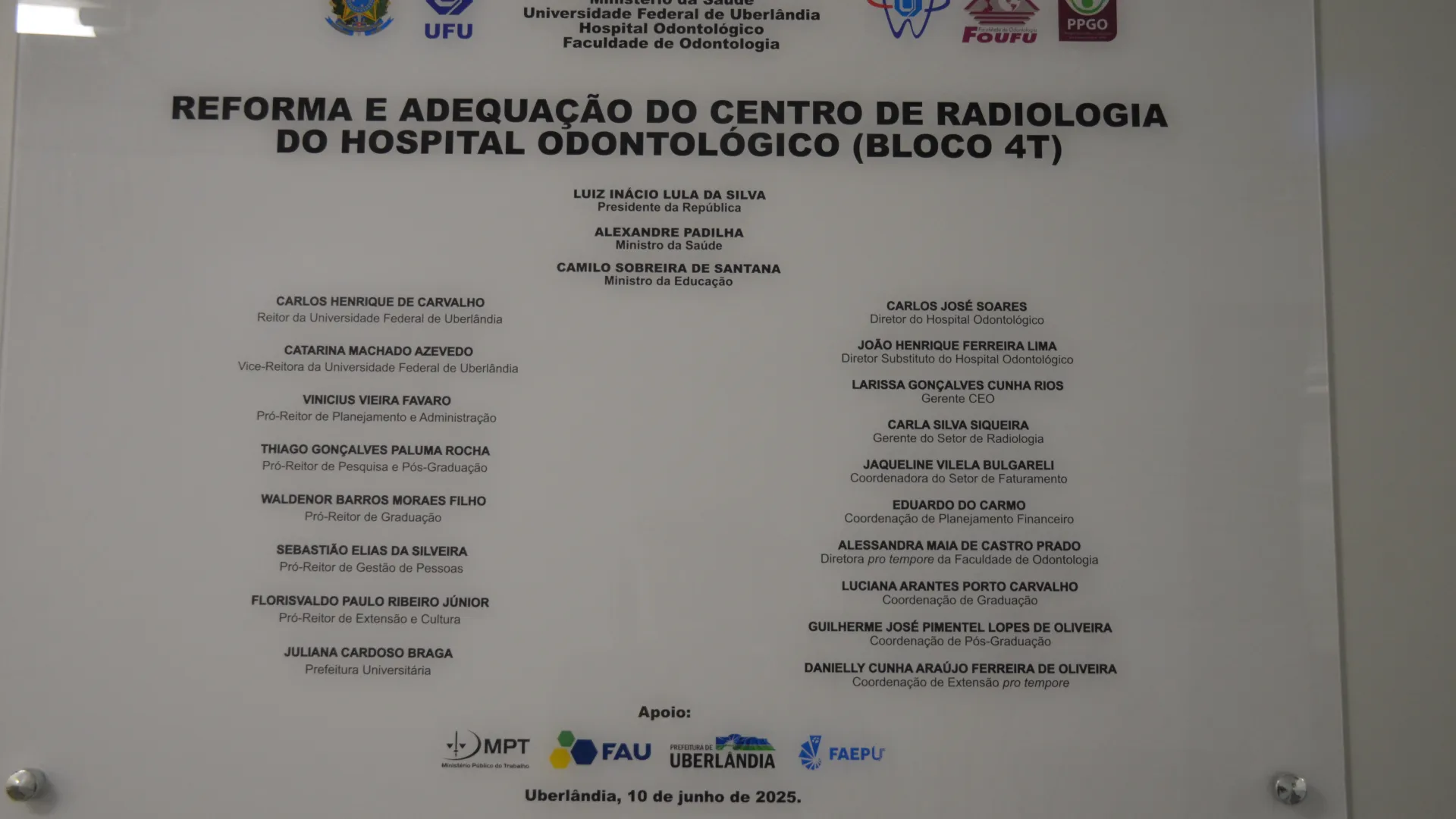 Aconteceu na manhã desta terça-feira, 10/06, a reinauguração do Centro de Radiologia do Hospital Odontológico, no bloco 4T, no campus Umuarama. O evento contou com a presença do reitor da UFU Carlos Henrique de Carvalho.