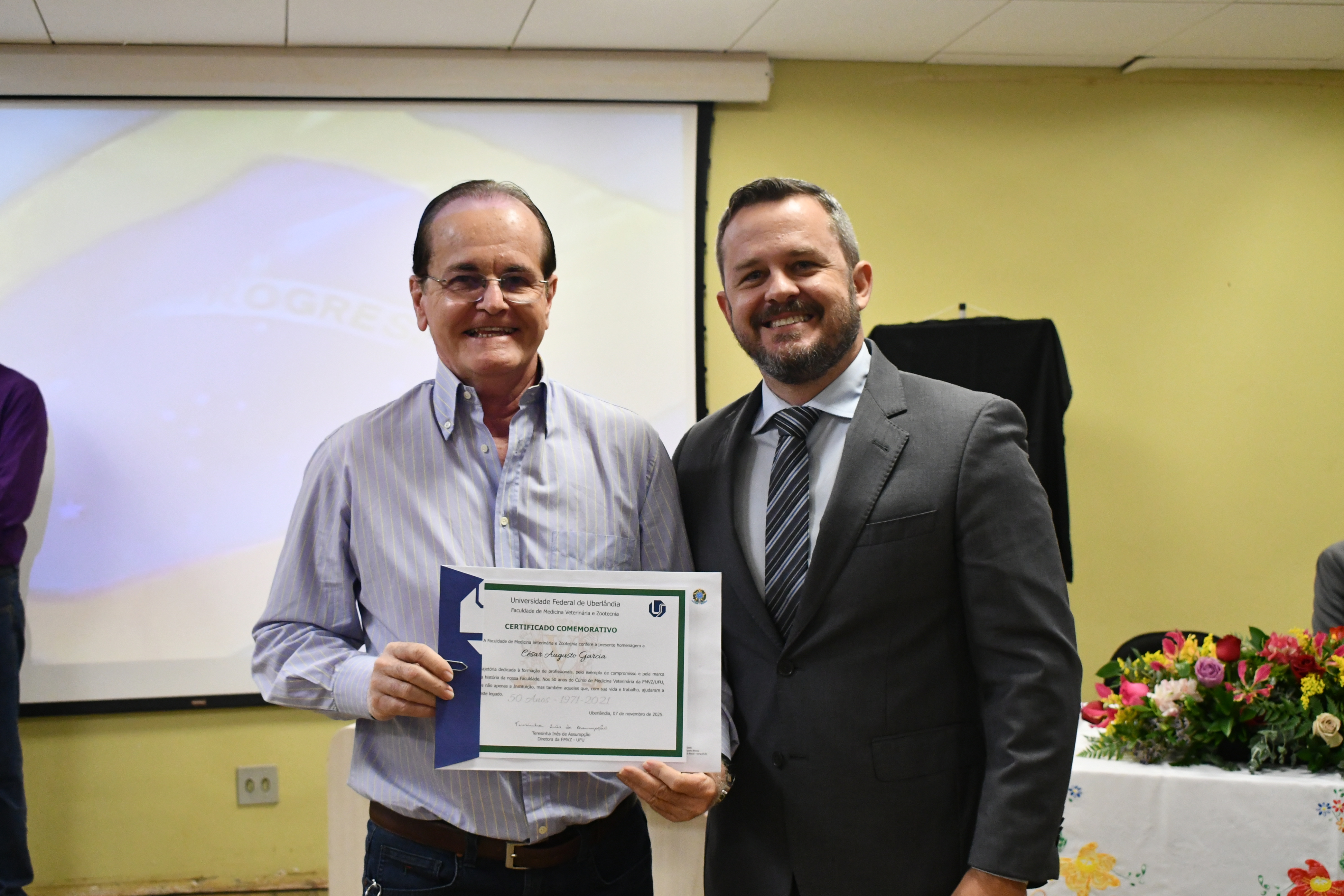 O curso de Medicina Veterinária da UFU celebra seus 50 anos, marcados pelo ingresso da 100ª turma. Para comemorar foi preparada uma programação visando comemorar esse marco histórico tão significativo, homenageando docentes e técnicos aposentados, os egressos da primeira turma, pelo seu pioneirismo e relevantes serviços prestados à comunidade.