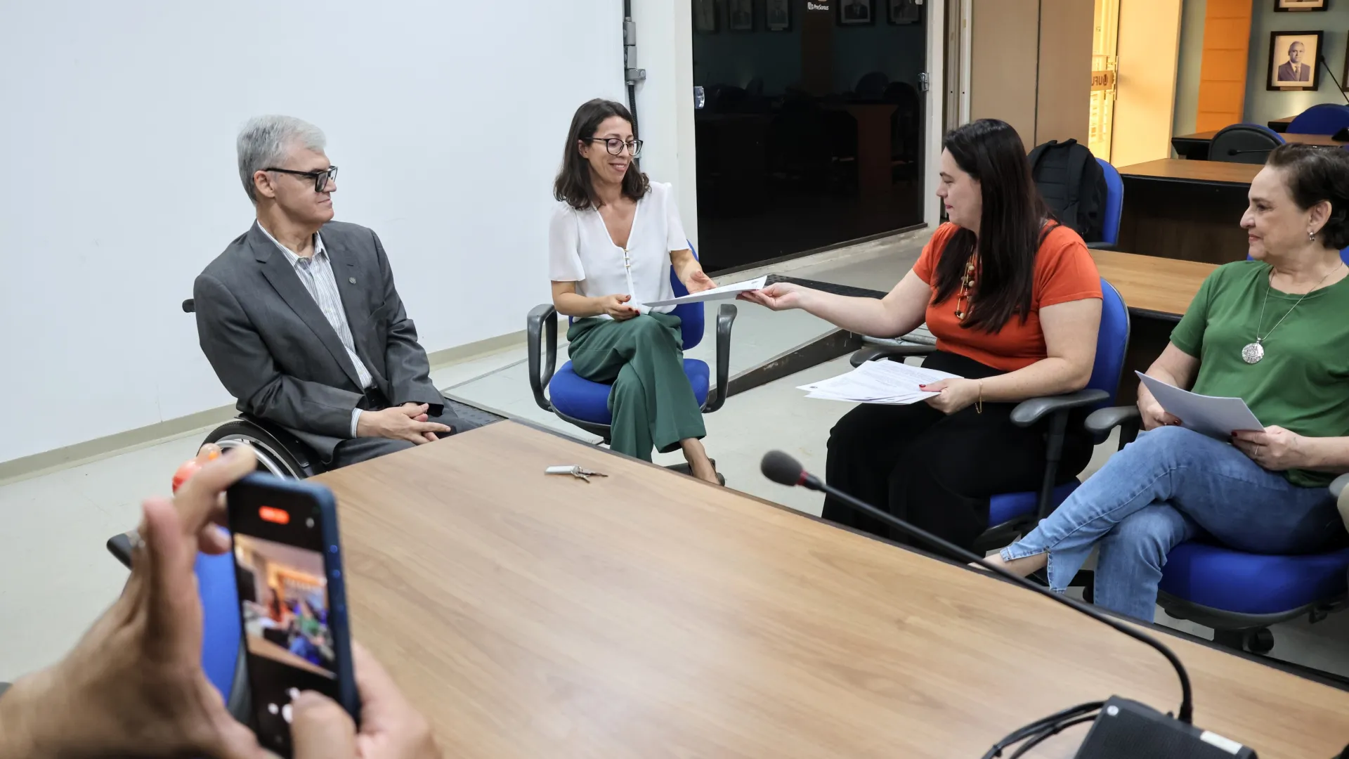 A reunião para entrega da minuta da politica de inclusão, educação e acessibilidade da UFU aconteceu nesta sexta feira (21/11), às 10h, na sala dos conselhos no bloco 3P. A partir de agora, o documento será enviado para votação, no Conselho Universitário (Consun). Janine Cecília faz parte da Comissão de Inclusão e explicou que “a proposta busca incluir os alunos da Universidade que fazem parte de grupos em vulnerabilidade. A minuta apresentou diversas propostas, com objetivo de melhorar a experiência destes alunos, dentro de seu ambiente de aprendizado”.