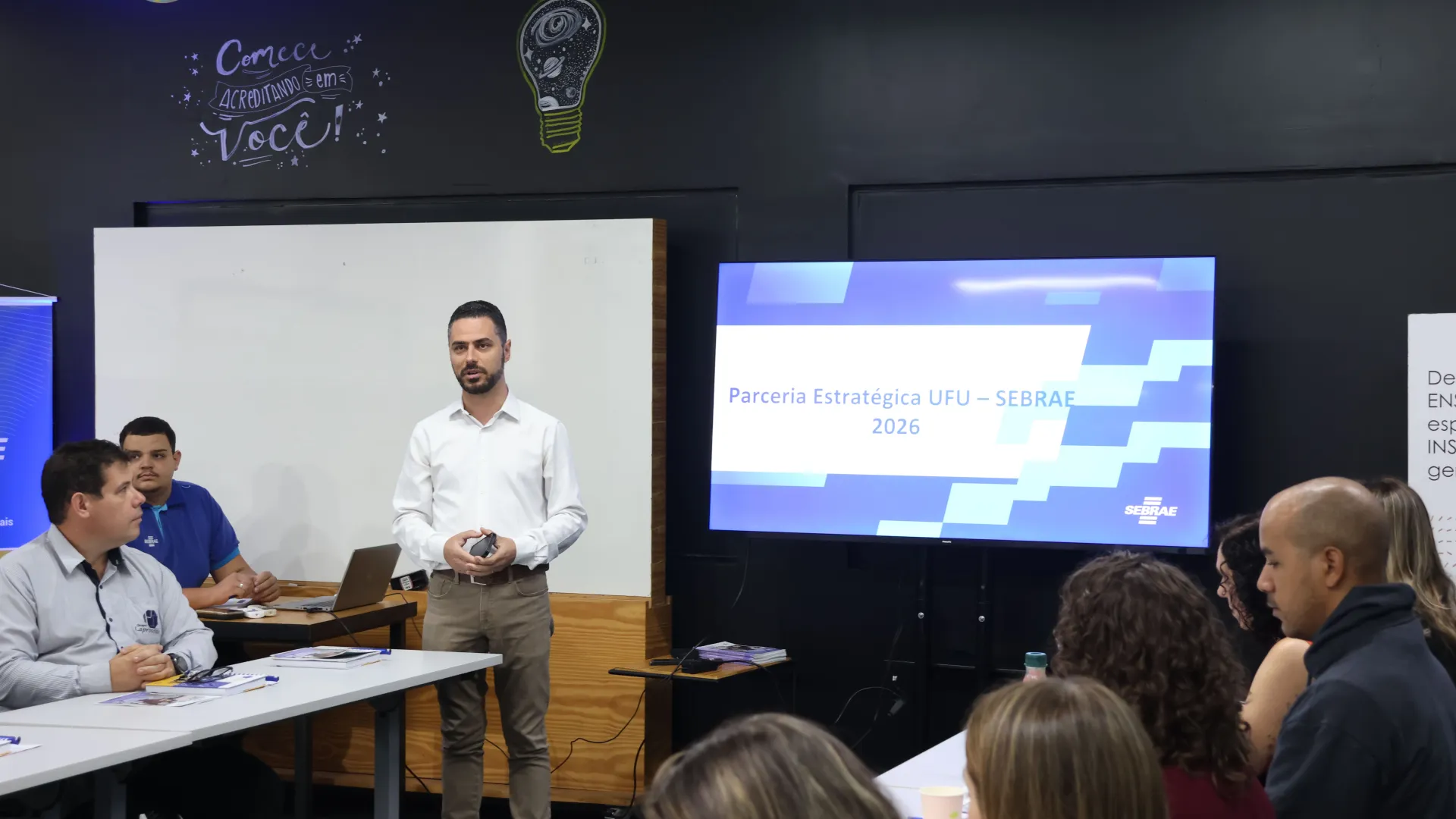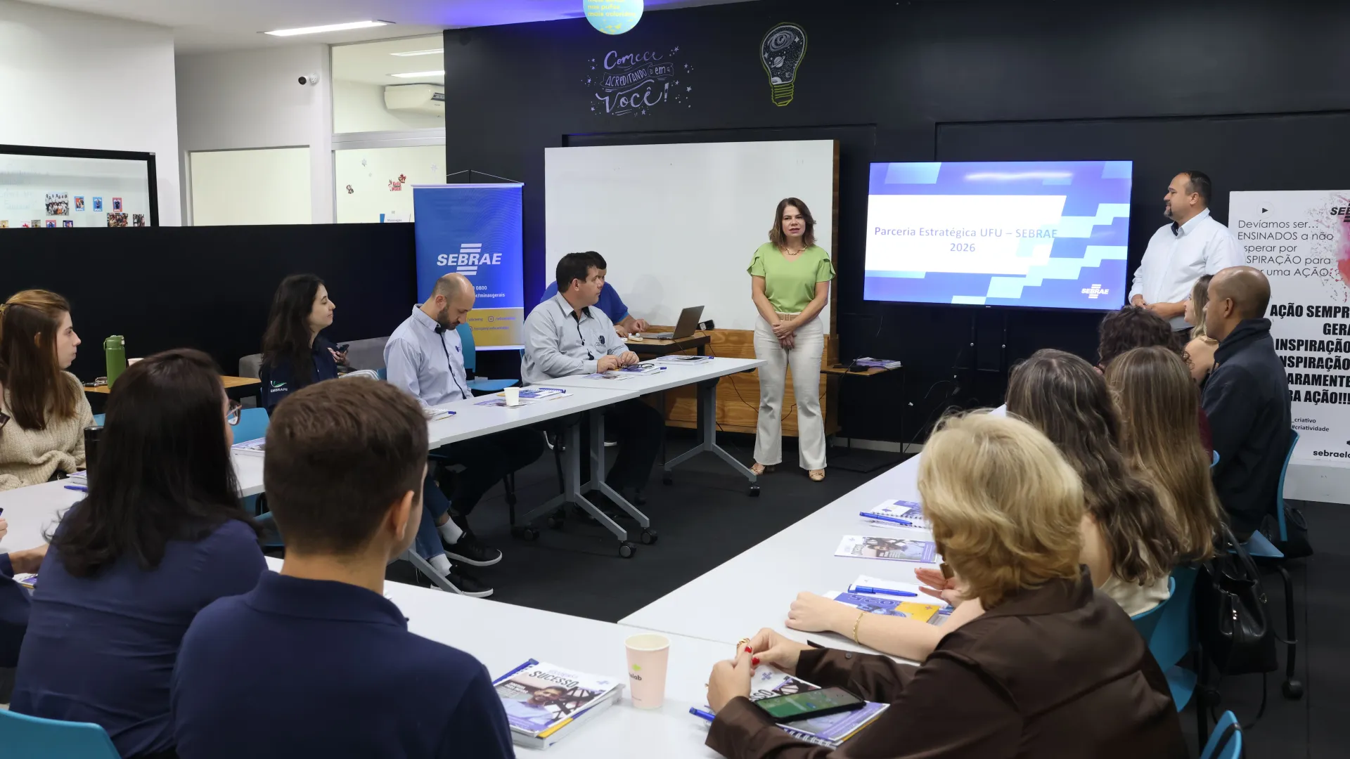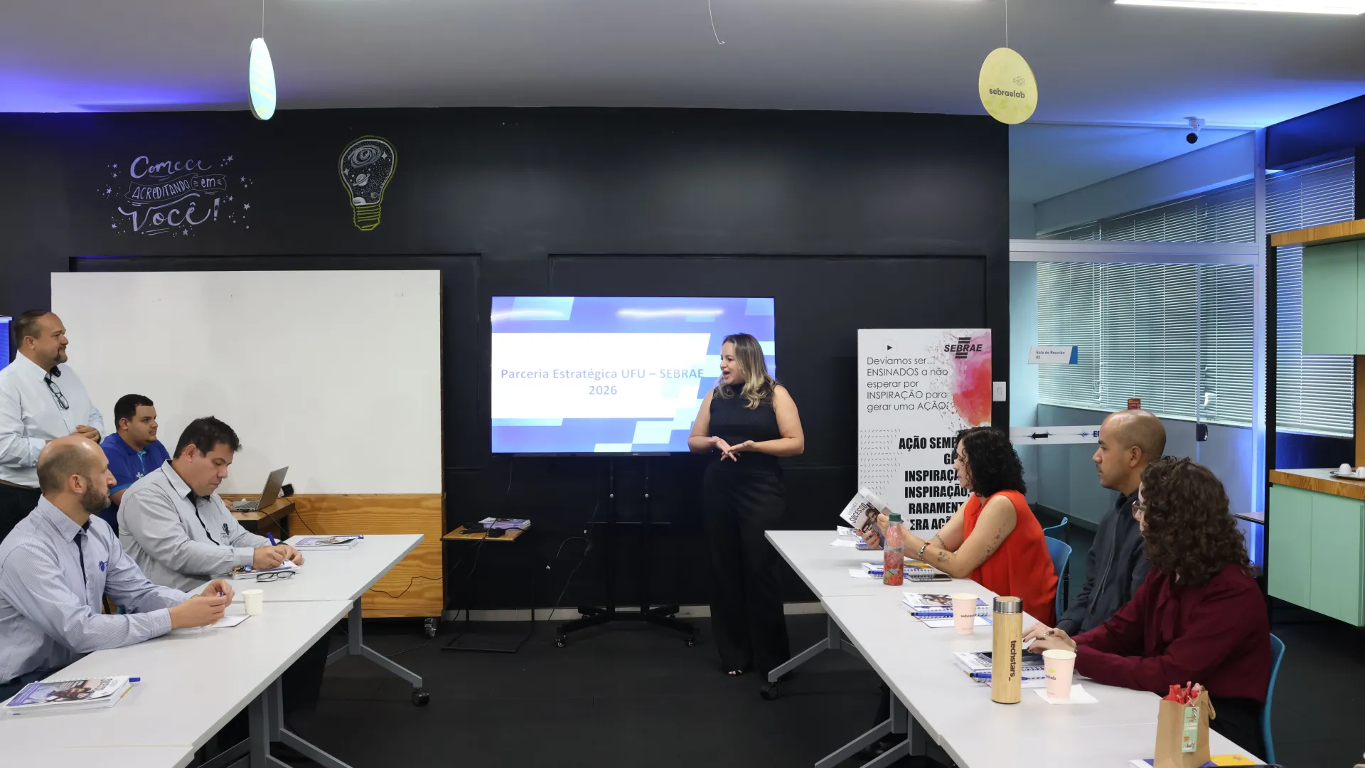 Na manhã desta quinta-feira (18), representantes da Diretoria de Inovação e Transferência de Tecnologia da Universidade Federal de Uberlândia (Dirtc/Agência Intelecto/UFU) participaram de uma reunião no Serviço Brasileiro de Apoio às Micro e Pequenas Empresas de Minas Gerais (Sebrae-MG), em Uberlândia, para apresentar e alinhar propostas de parceria estratégica entre as duas instituições com foco no planejamento de ações para 2026.