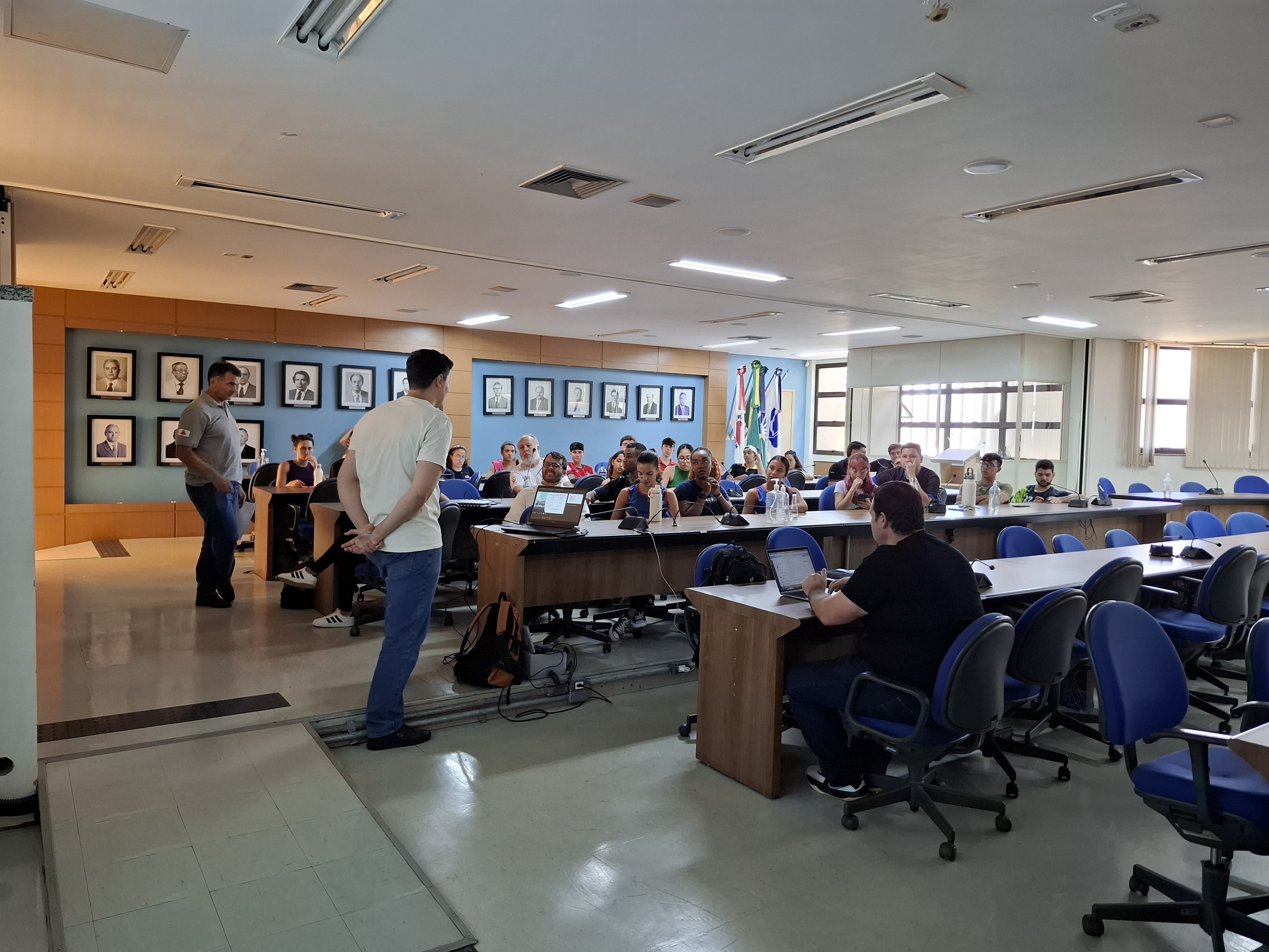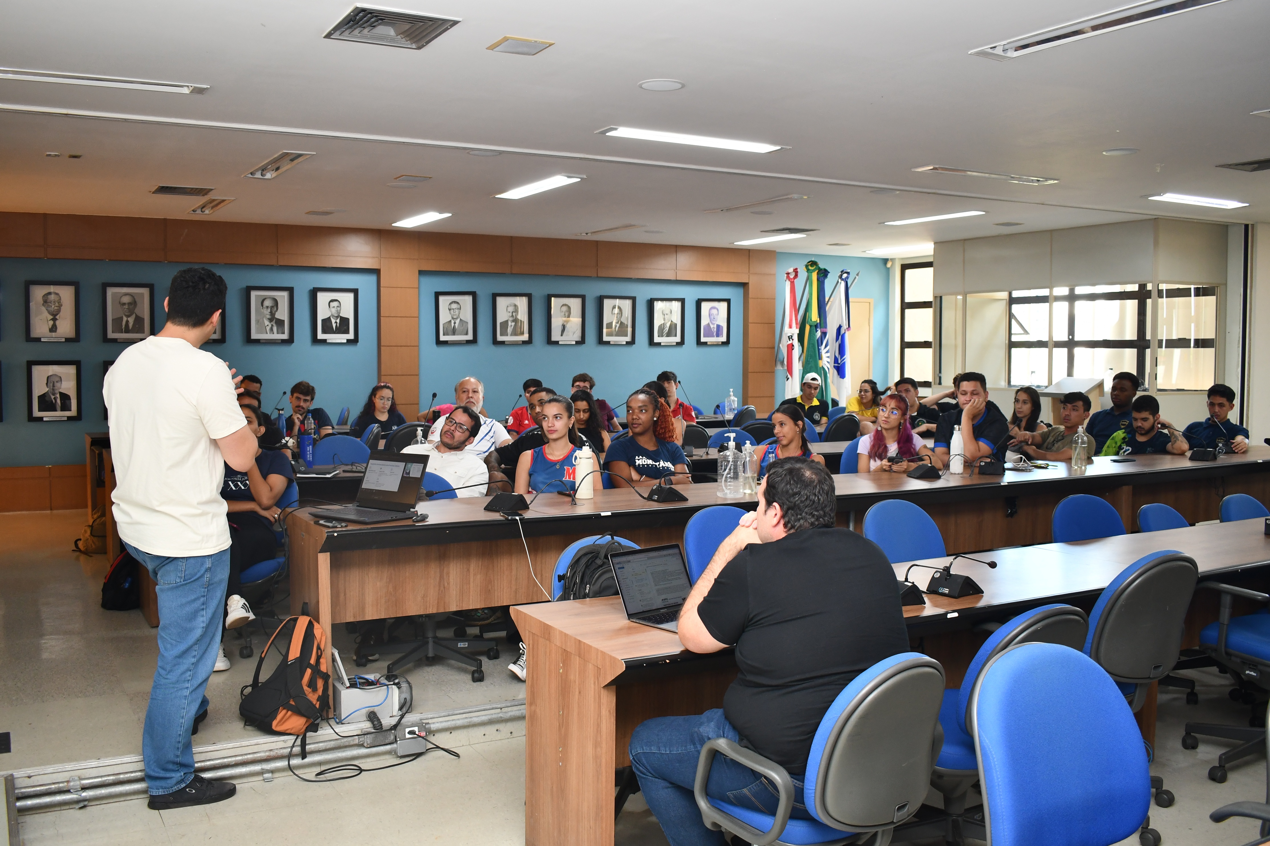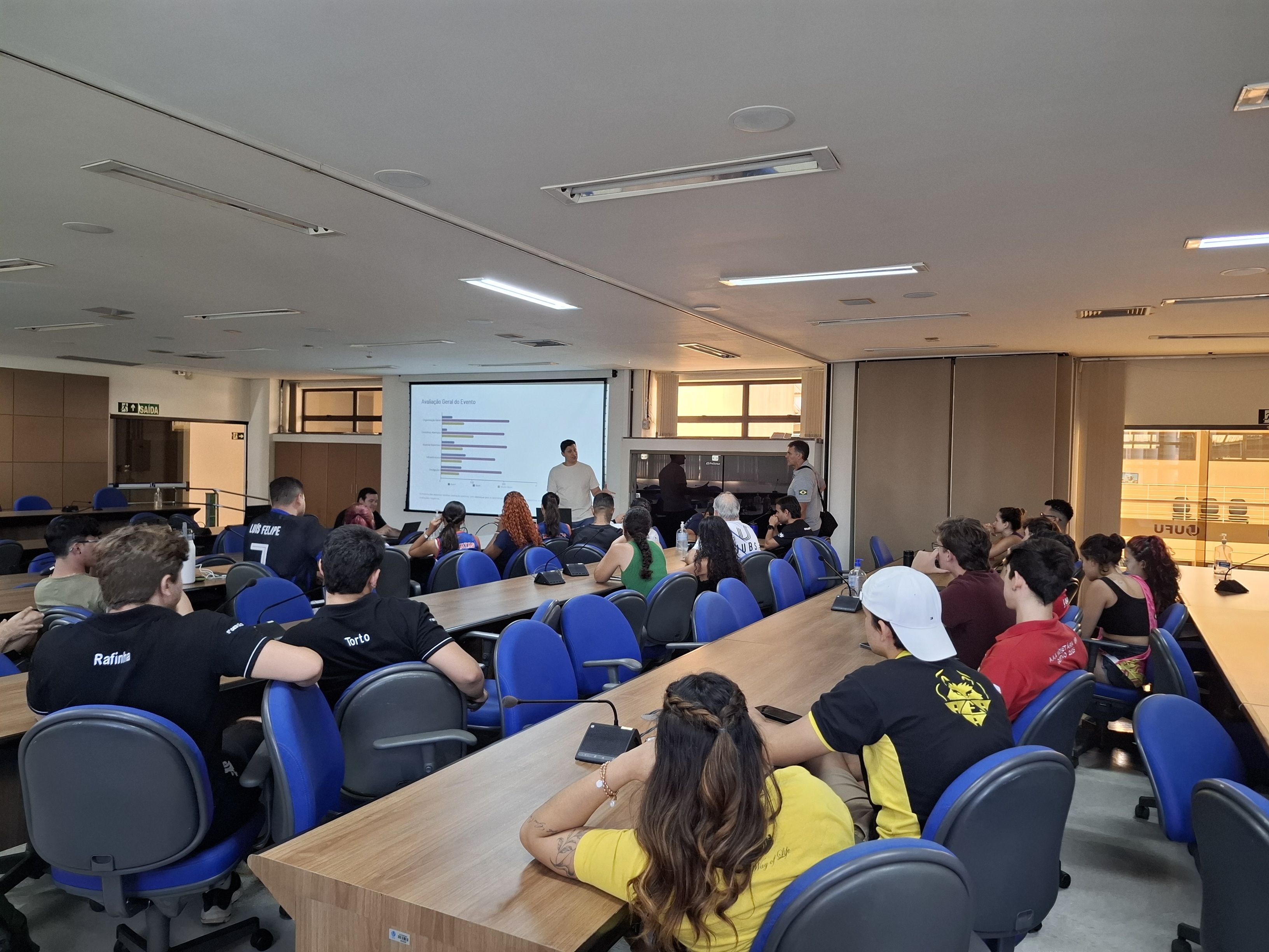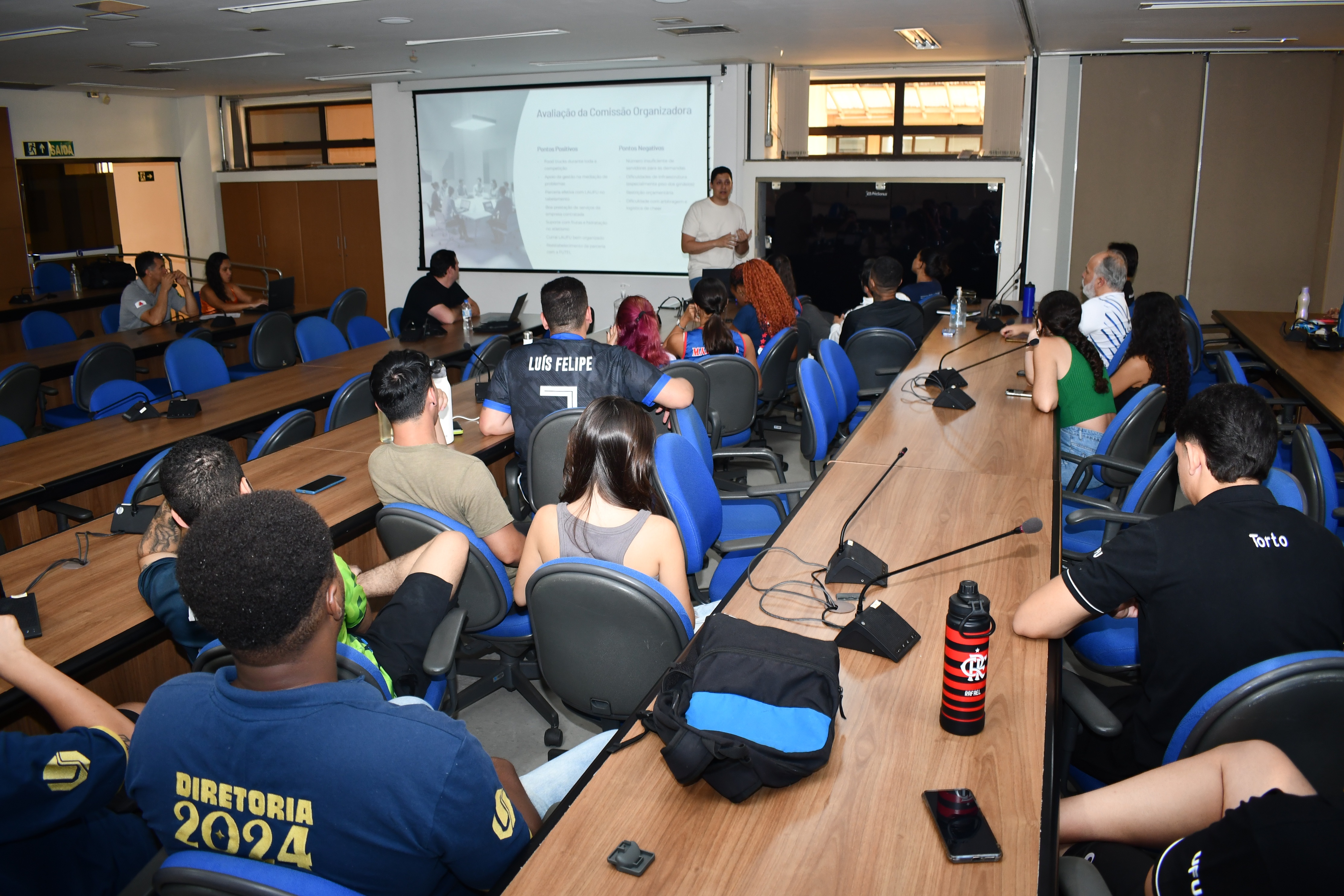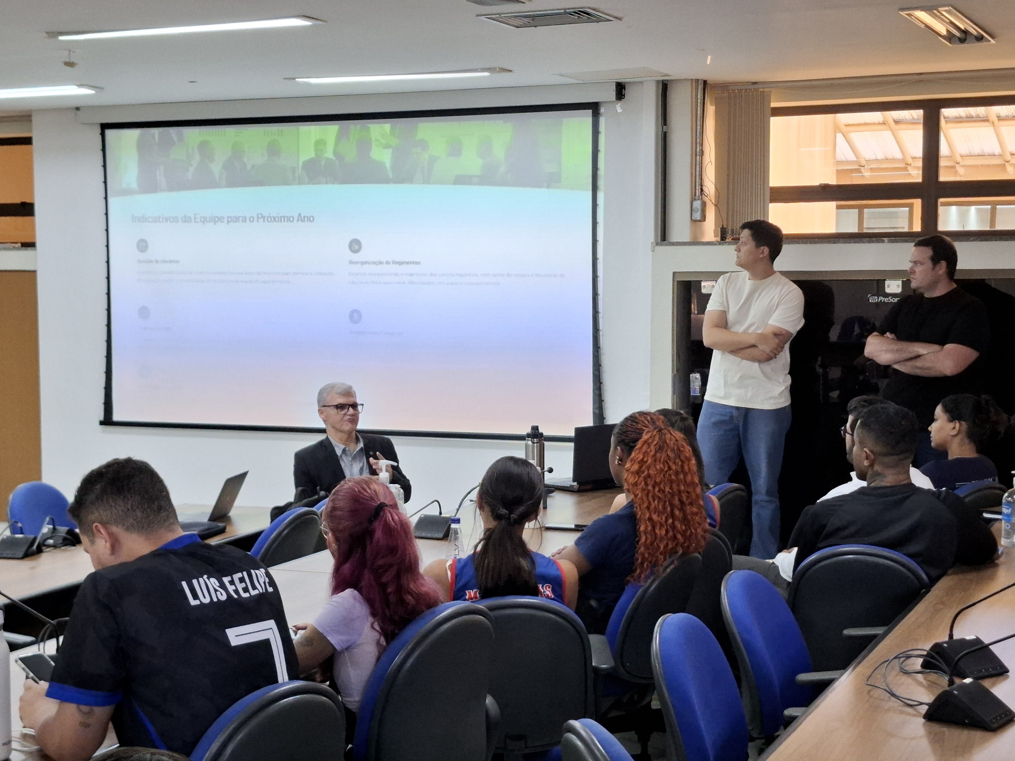 Na última quarta-feira, 26, foi realizada uma reunião da Divisão de Esporte e Lazer da Universidade Federal de Uberlândia (Diesu/UFU) com os representantes da atléticas, baterias, equipes de cheers e outros grupos esportivos da universidade. Participaram também da ocasião o reitor da UFU, Carlos Henrique de Carvalho, e o diretor da Diretoria de Qualidade de Vida do Estudante (Dirve), Guilherme Puga. O encontro, que aconteceu de forma híbrida, tinha como objetivo apresentar o fechamento de dados relacionados às atividades de esporte e lazer da UFU no ano, principalmente a Olimpíada Universitária UFU, e discutir possíveis pontos de melhorias para o próximo ano.