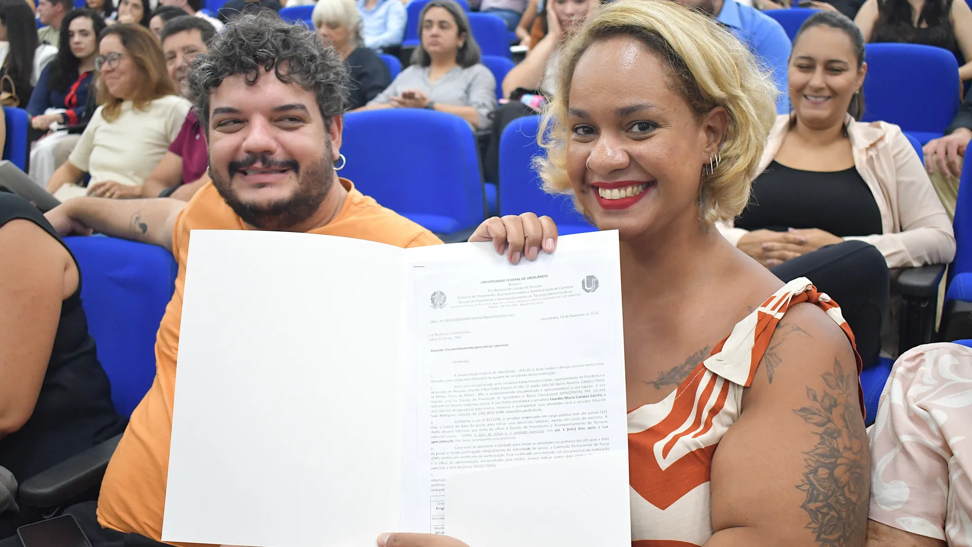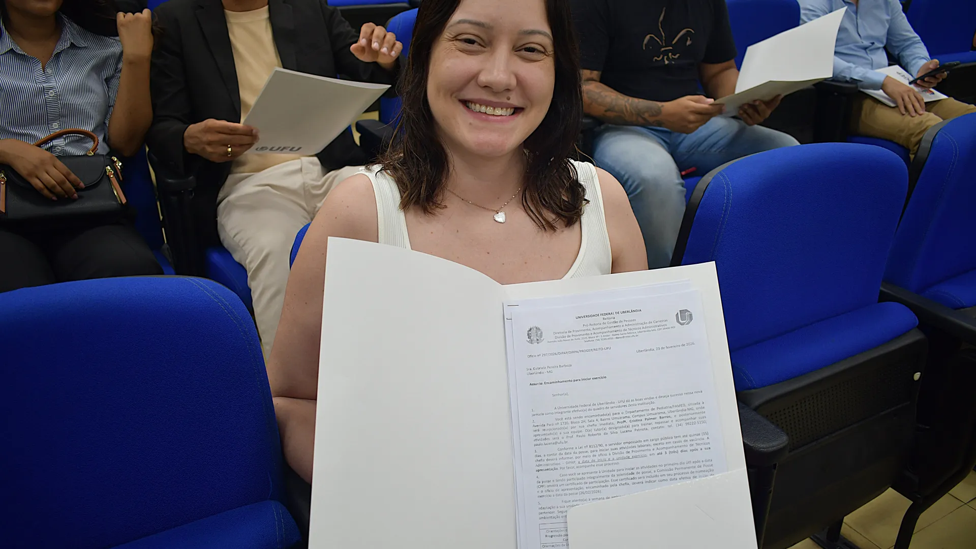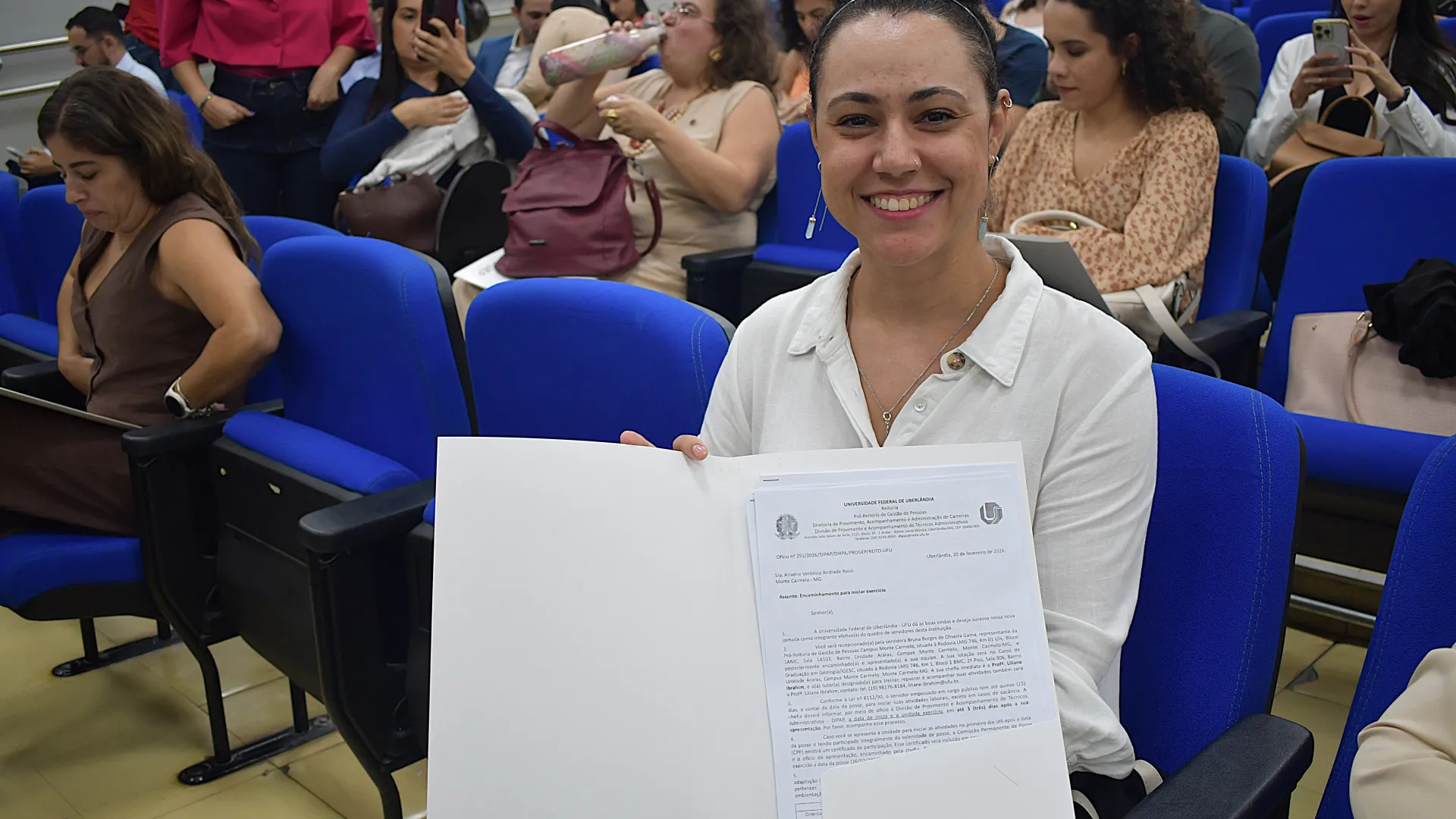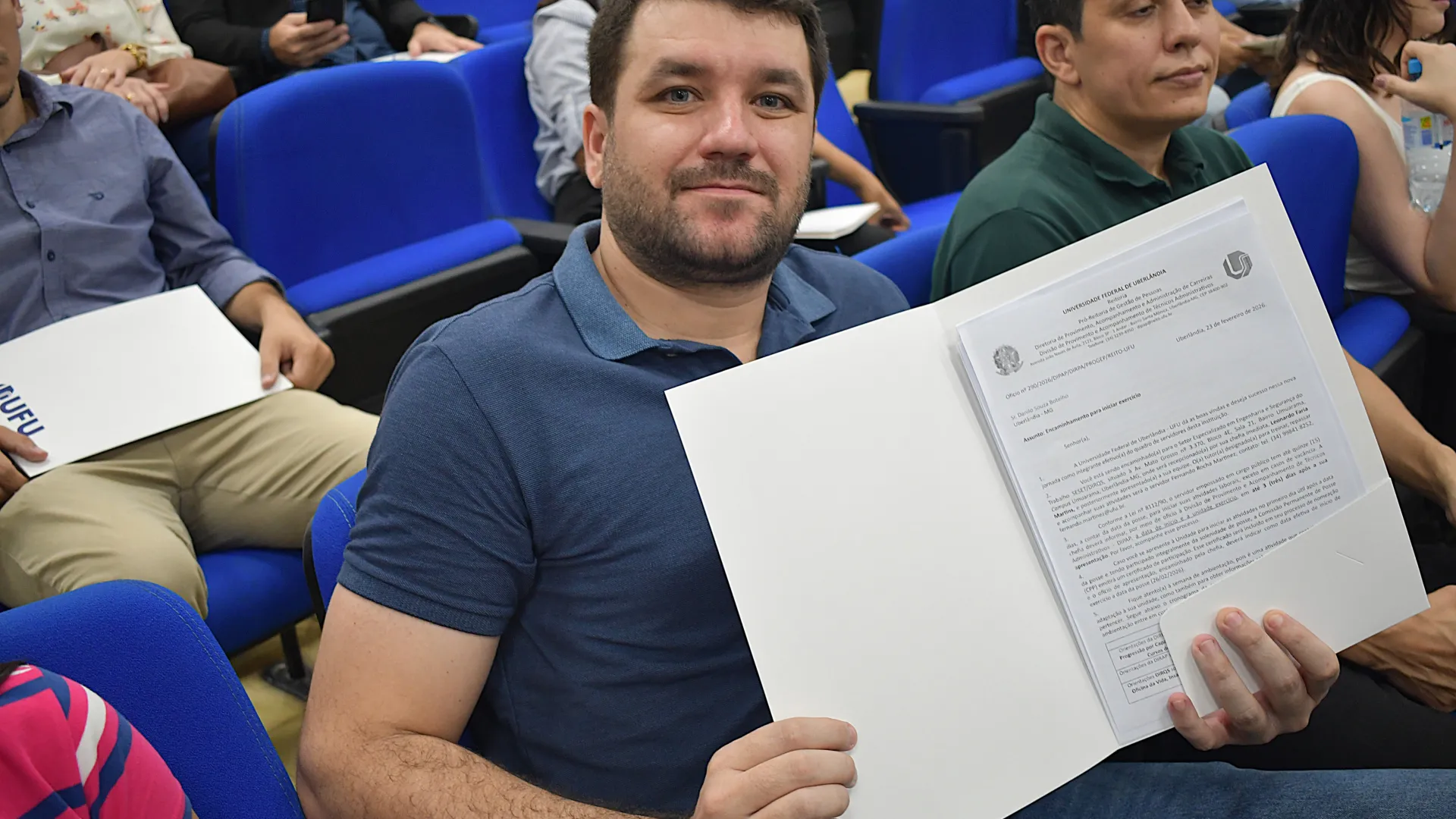 Na manhã desta quinta-feira, 26 de fevereiro, foi realizada no auditório do Bloco 5R a posse dos novos servidores da Universidade Federal de Uberlândia (UFU). A solenidade contou com a presença do pró-reitor de Gestão de Pessoas Sebastião Elias da Silveira.