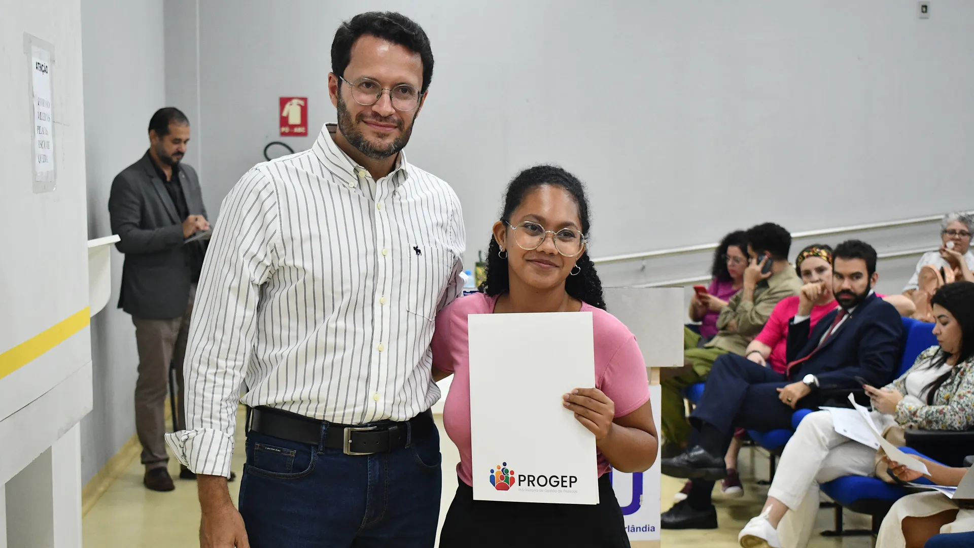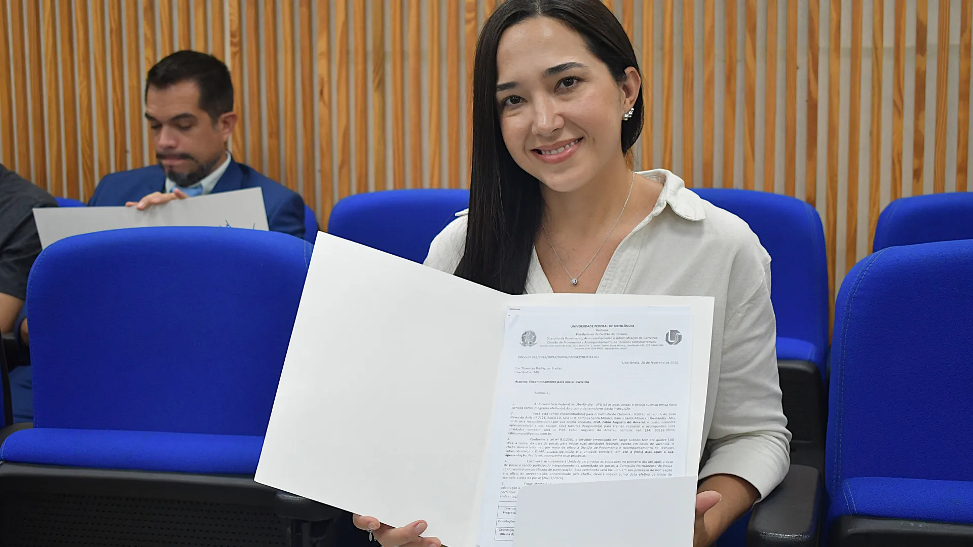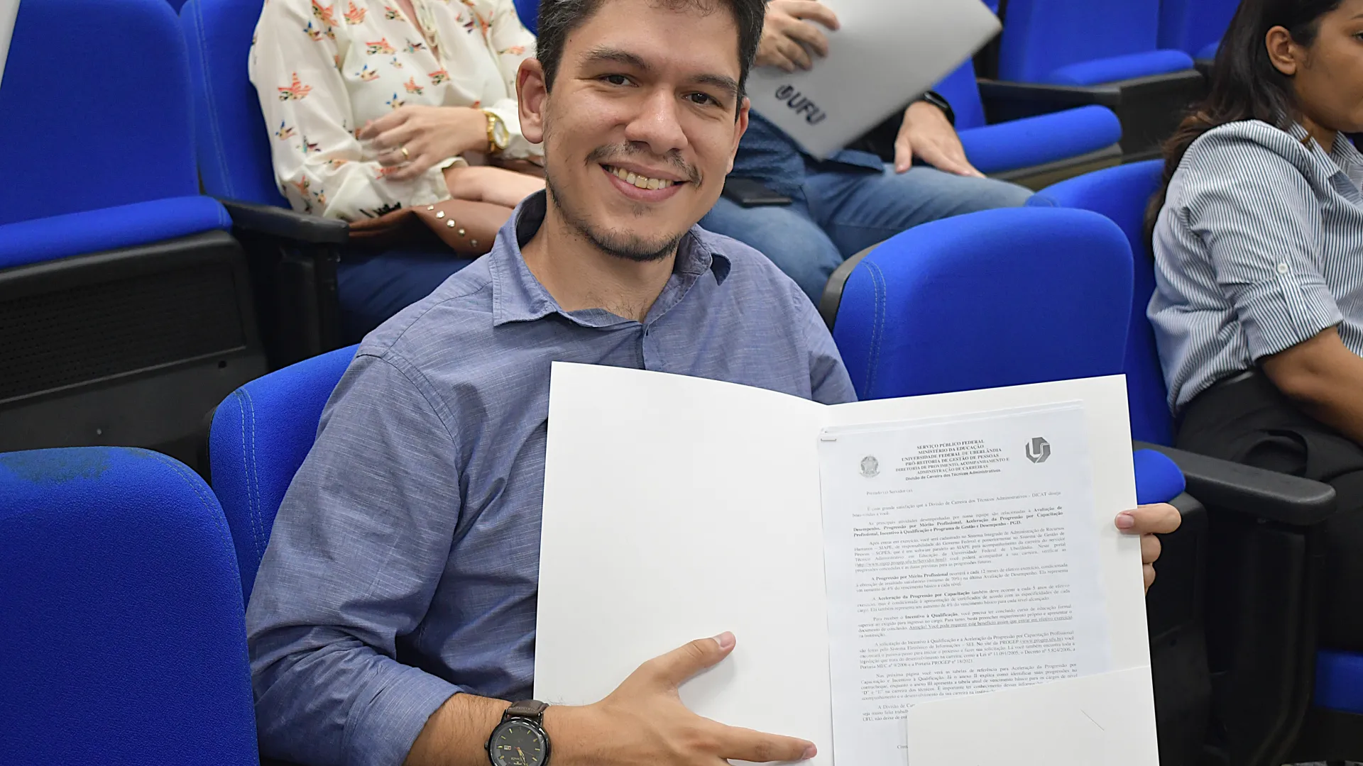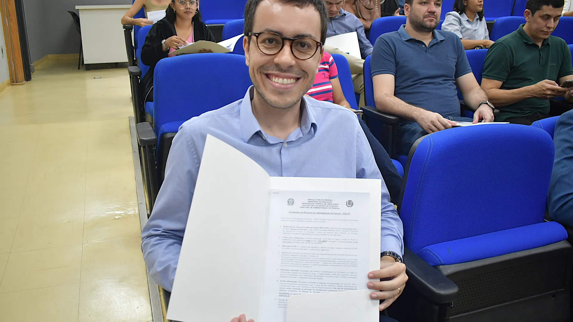 Na manhã desta quinta-feira, 26 de fevereiro, foi realizada no auditório do Bloco 5R a posse dos novos servidores da Universidade Federal de Uberlândia (UFU). A solenidade contou com a presença do pró-reitor de Gestão de Pessoas Sebastião Elias da Silveira.