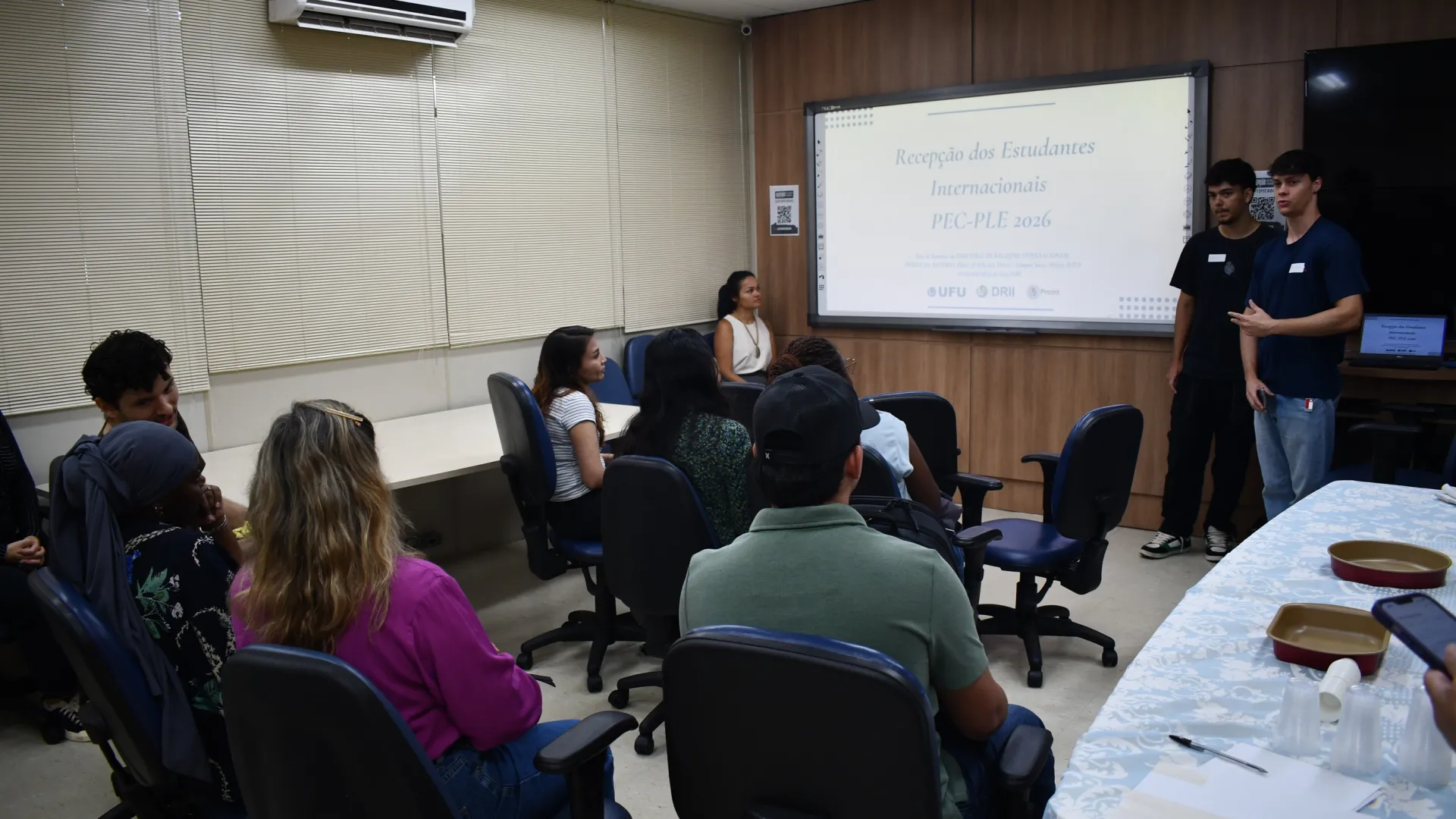 O evento de recepção aos alunos internacionais aconteceu na manhã desta sexta-feira (6), na sala de reunião da Diretoria de Relações Internacionais. O objetivo da recepção foi proporcionar acolhimento e integração entre os estudantes de mobilidade internacional dentro da UFU e toda comunidade externa, discutindo a relação dos estudantes internacionais e a nova instituição promovendo reflexão sobre interculturalidade.