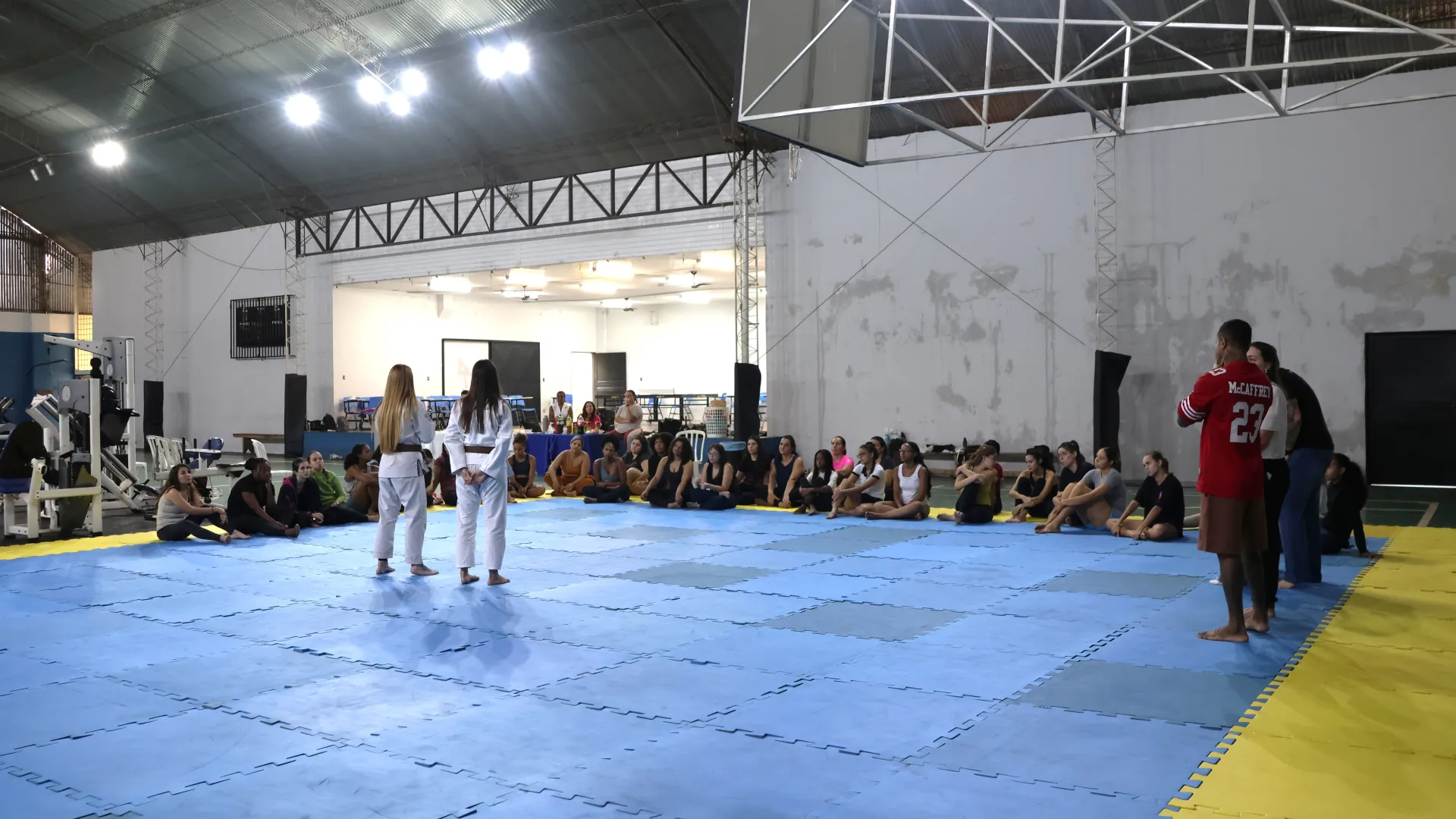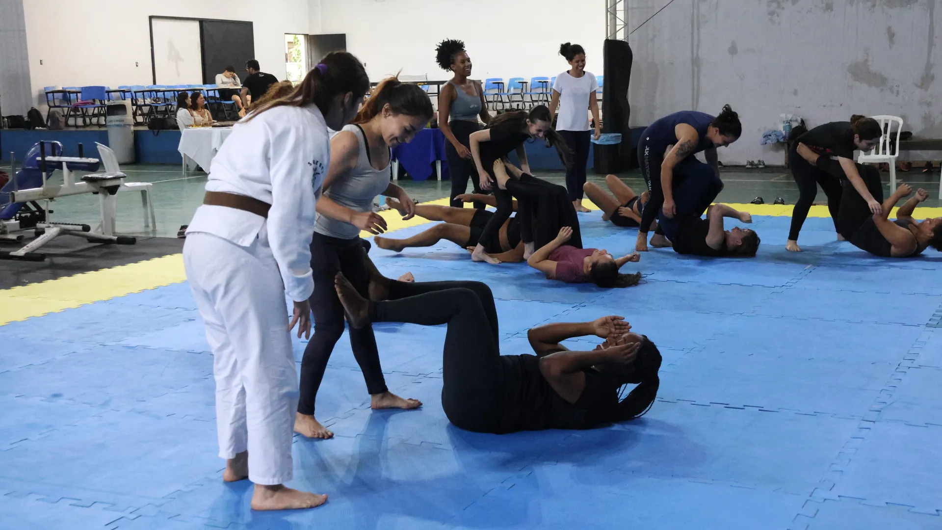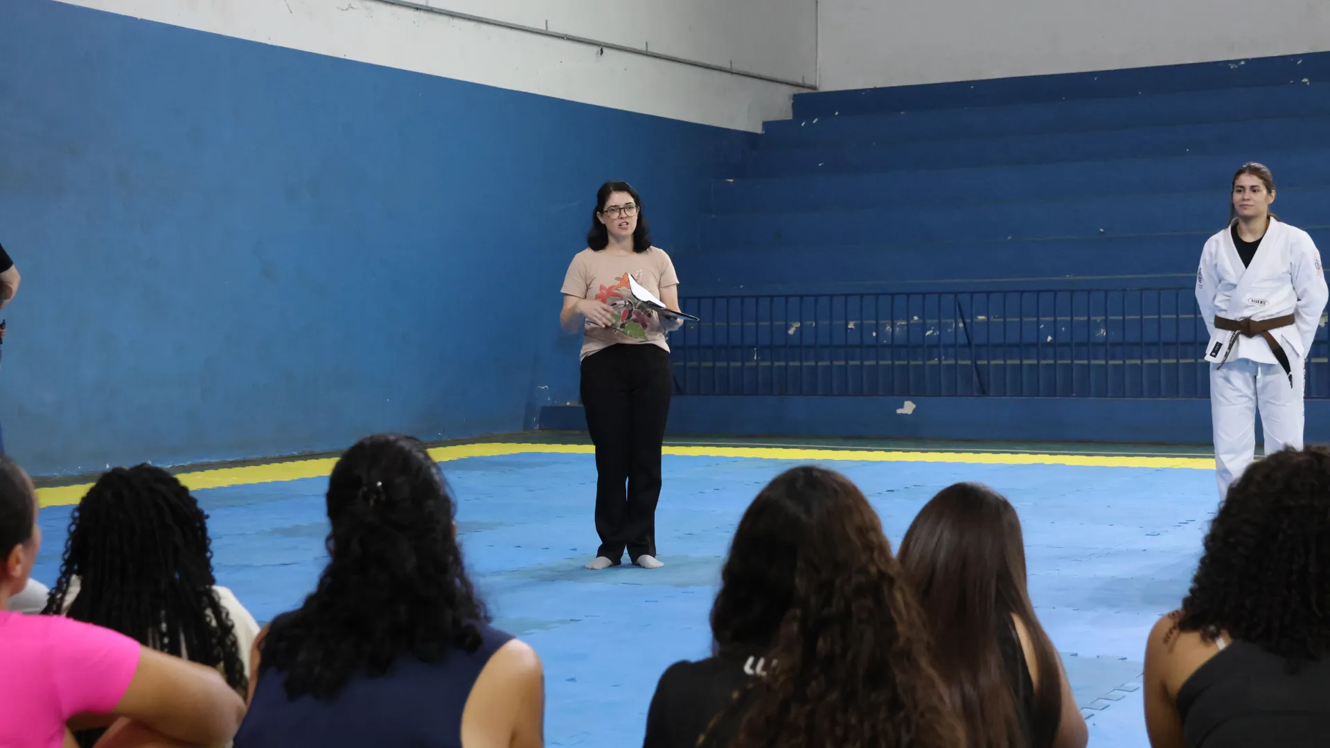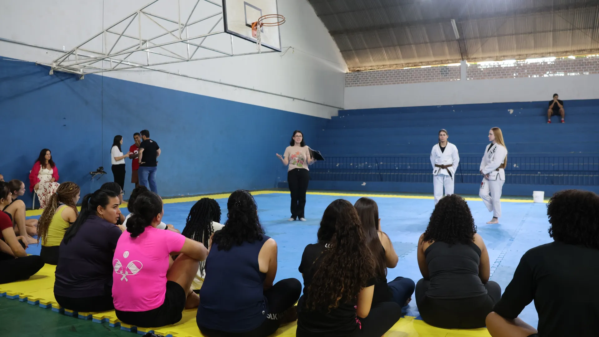 Entre os dias 10 e 14 de março, a Pró-Reitoria de Assistência Estudantil (Proae), por meio da Divisão de Esporte e Lazer (Diesu) e a Divisão de Saúde (Disau), realizaram nas quatro cidades sedes da Universidade Federal de Uberlândia (UFU) aulas de defesa pessoal para as estudantes. O encontro do último sábado, 14, no Campus Educação Física, encerrou as atividades da Proae para o mês da mulher com aula ministrada pelas professora de jiu-jitsu Amanda Araújo e Thaís Campos.